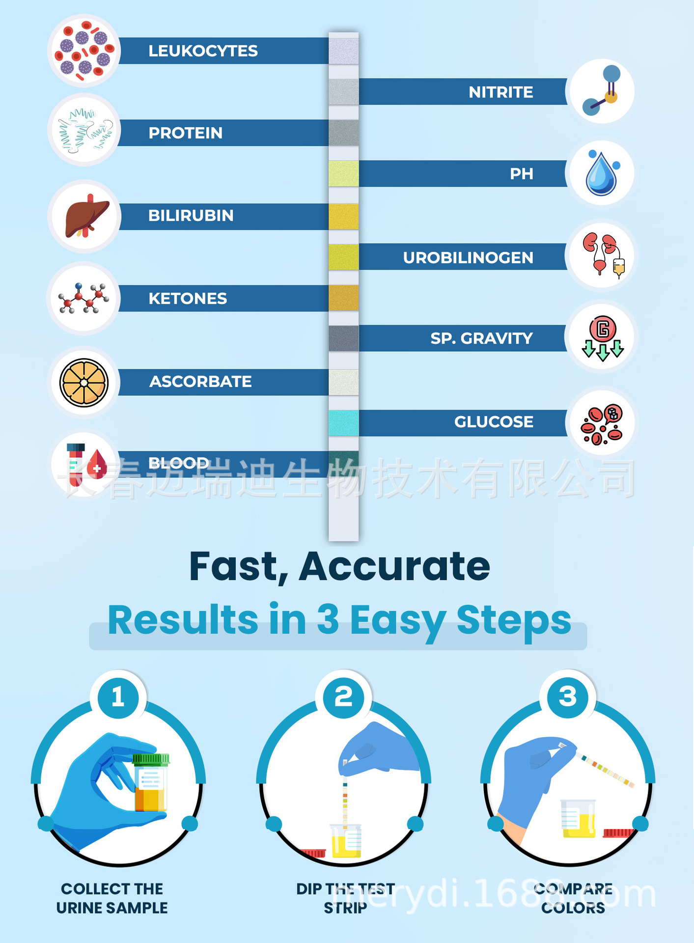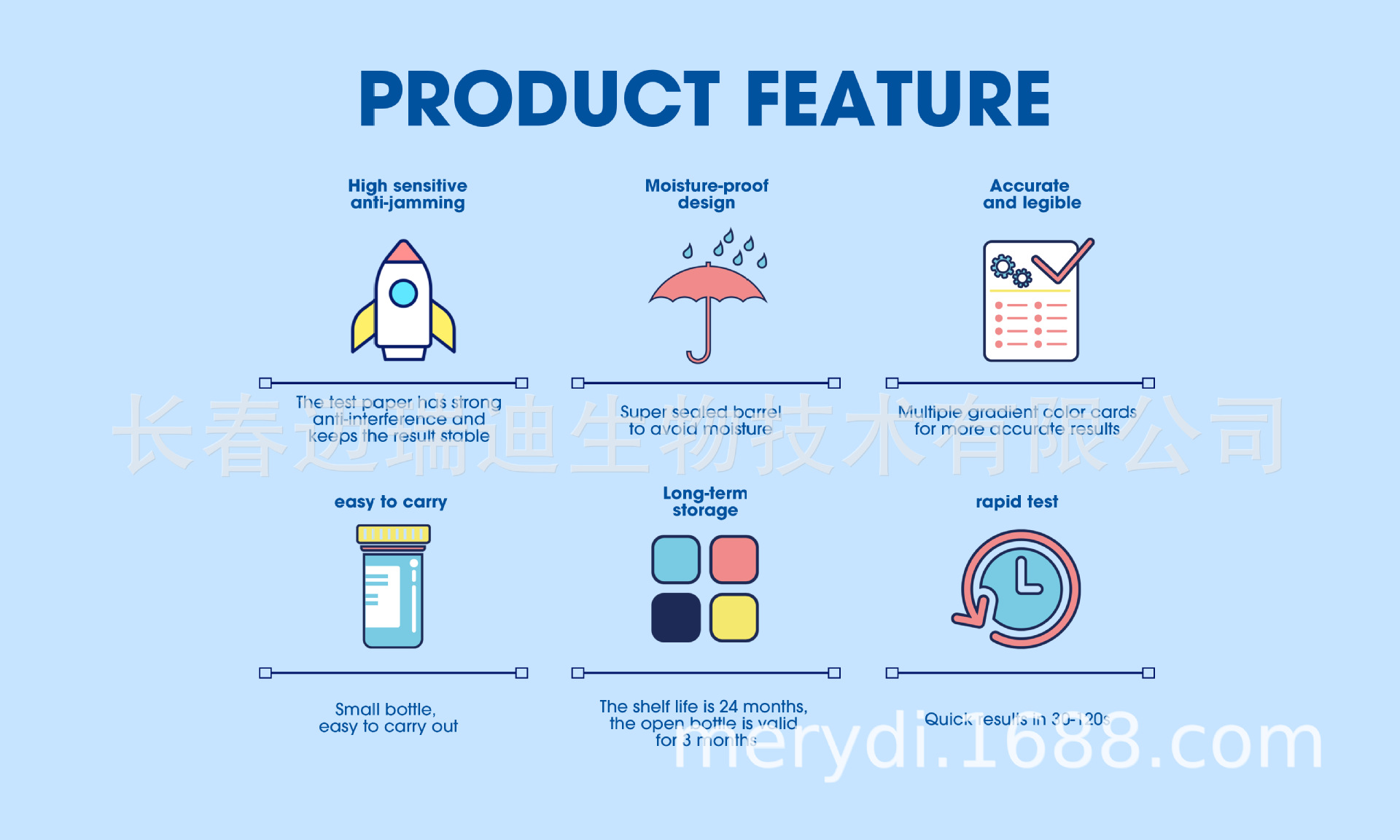 2产品密封保质期:2℃~30℃干燥处避光保存,水质产品保质期为12个月,尿液产品保质期为24个月。