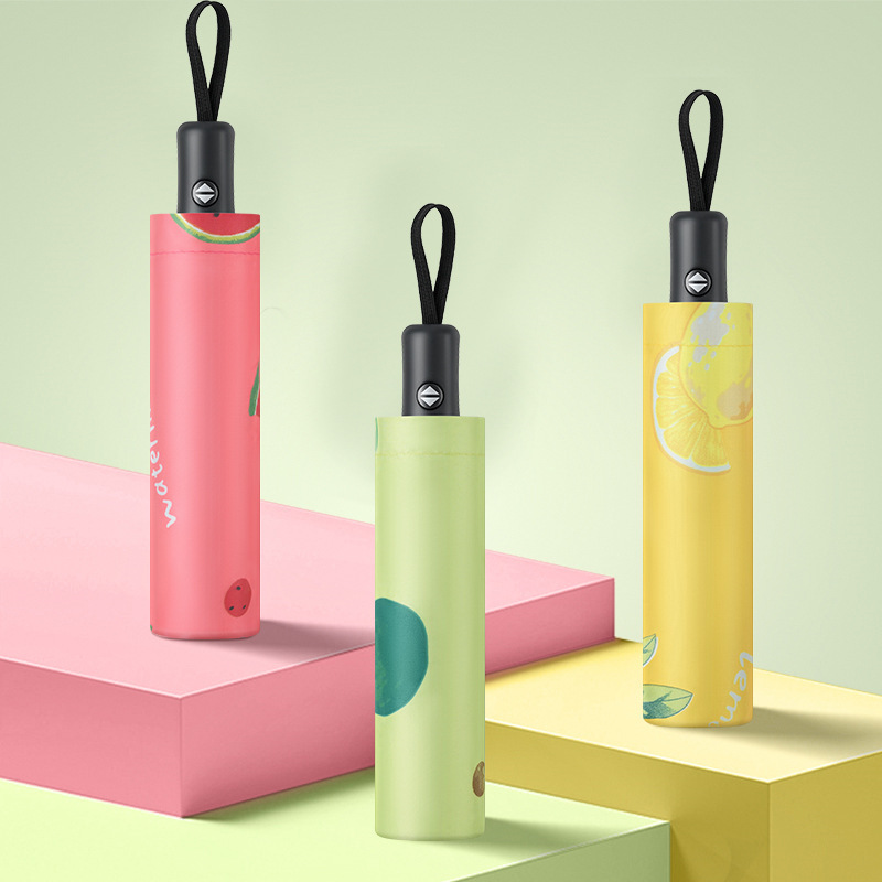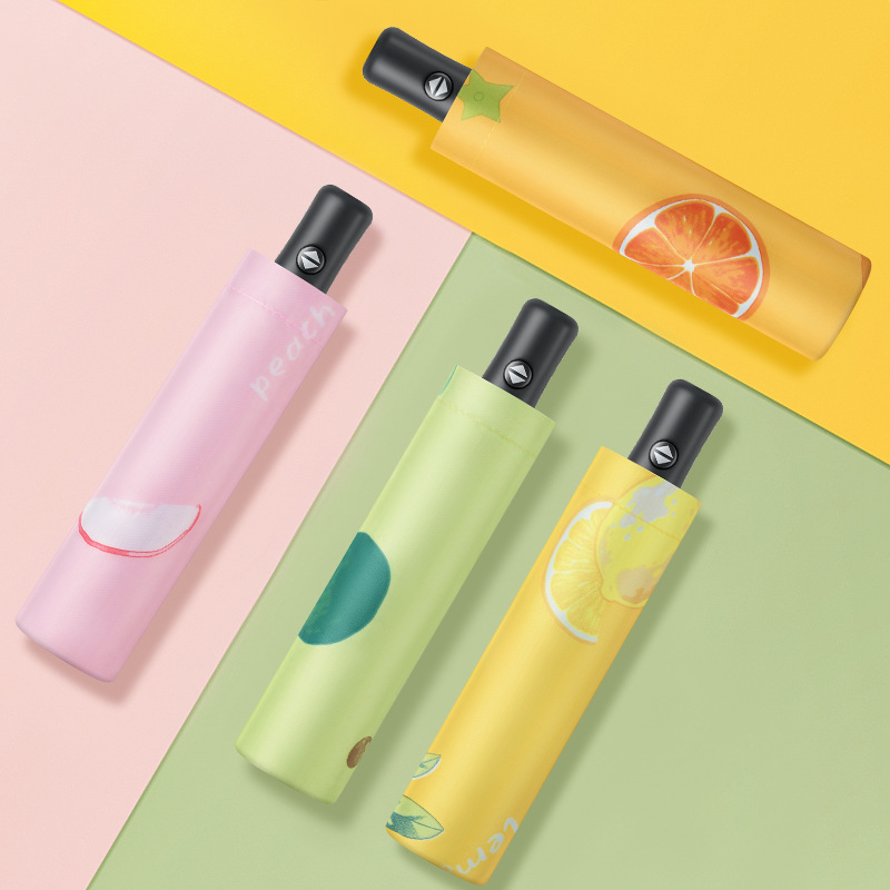 과일 자동 우산 여자의 맑고 비오는 이중 목적 접는 차양 우산 태양 우산 태양 보호 자외선 차단 인쇄 로고스토어 가기