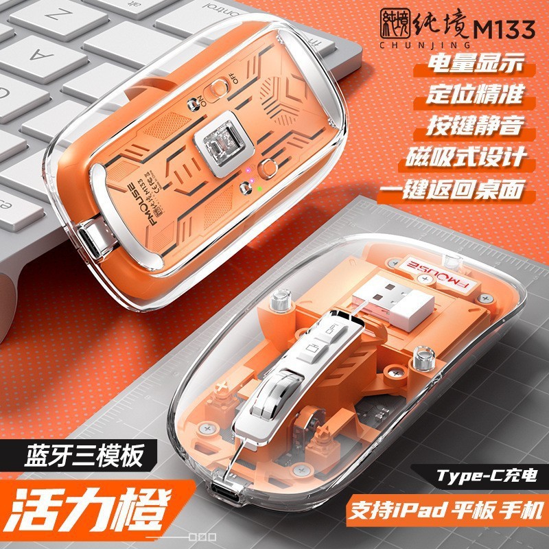 투명하고 빛나는 3가지 모드의 무선 블루투스 마우스로, 휴대폰, 아이패드, 태블릿에 적합하며, 고급스럽고 조용한 마우스입니다.스토어 가기