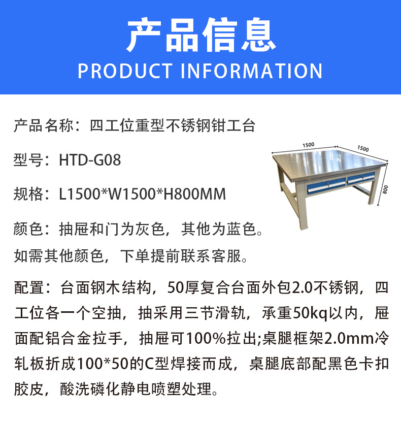 Hengtuoda 정전기 방지 무거운 스테인레스 스틸 작업대 훈련 작업장 4 역 전단지 유지 보수 콘솔 비표준스토어 가기