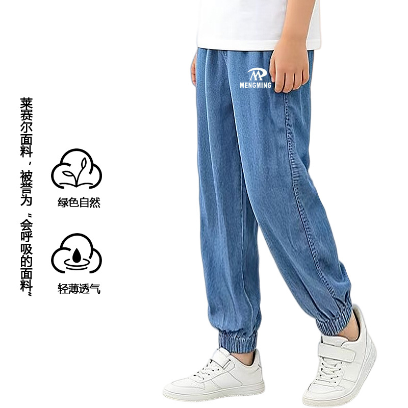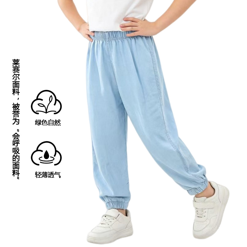 큰 어린이 Tencel 데님 홈 바지 여름 어린이 에어컨 바지 소년 소녀 얇은 모기 방지 바지 세대