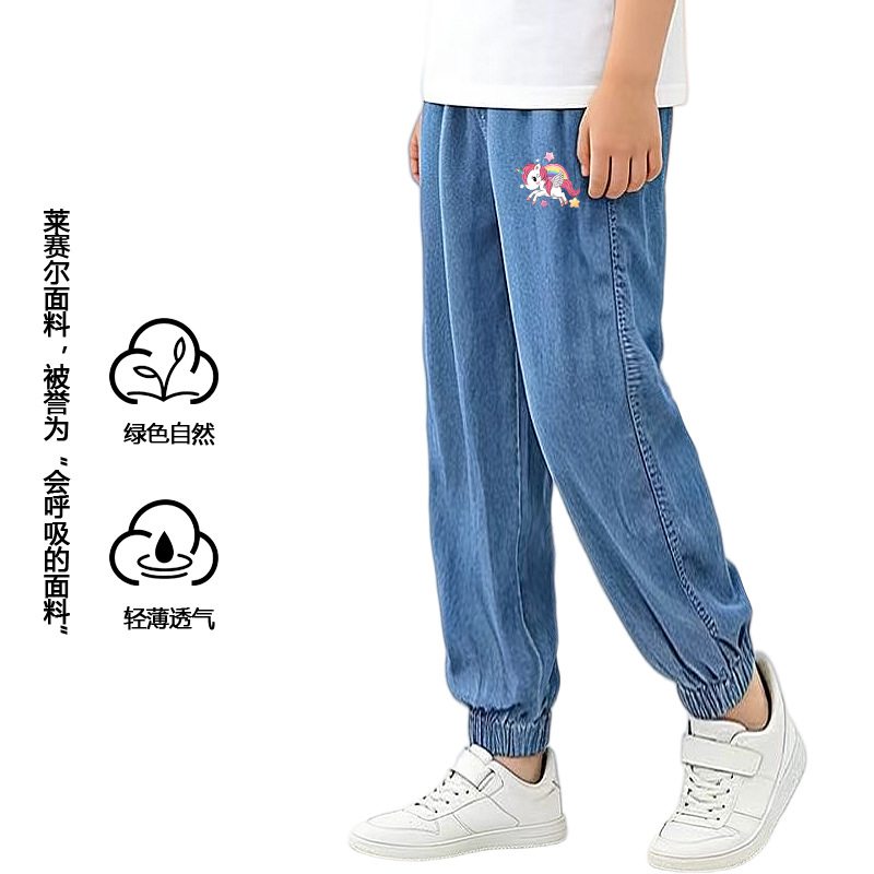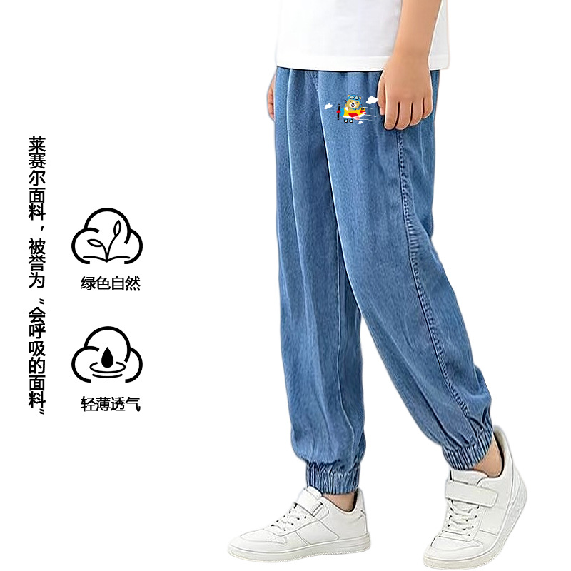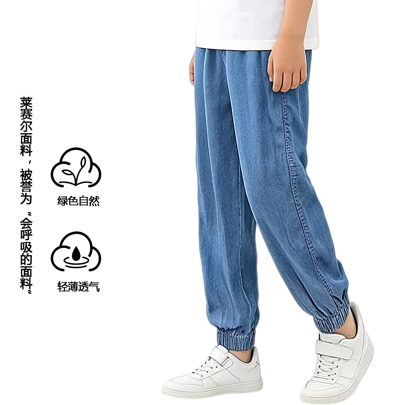 큰 어린이 Tencel 데님 홈 바지 여름 어린이 에어컨 바지 소년 소녀 얇은 모기 방지 바지 세대스토어 가기