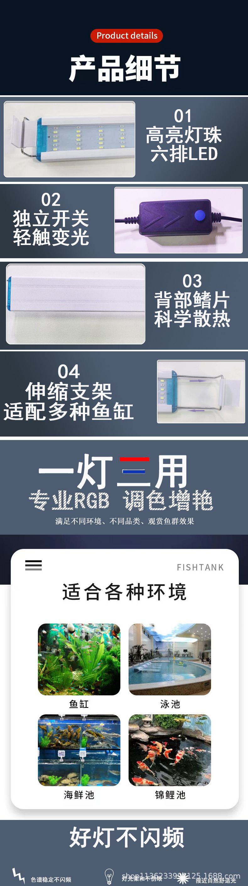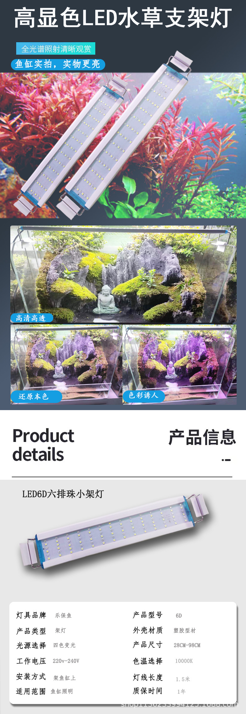 LED 어항 라이트 6D 6열 비드 수족관 조명 라이트 어항 경관 하이라이트 조명 수초 라이트스토어 가기