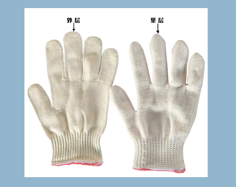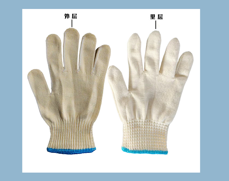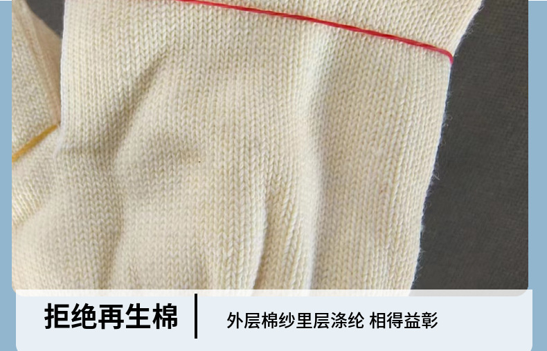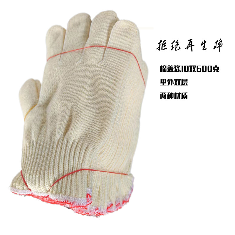 새로운 면 커버 폴리에스터 면 장갑 2 층 소재 내마모성 및 내구성 작업 현장 공장 노동 보호 손 보호 라인 장갑스토어 가기