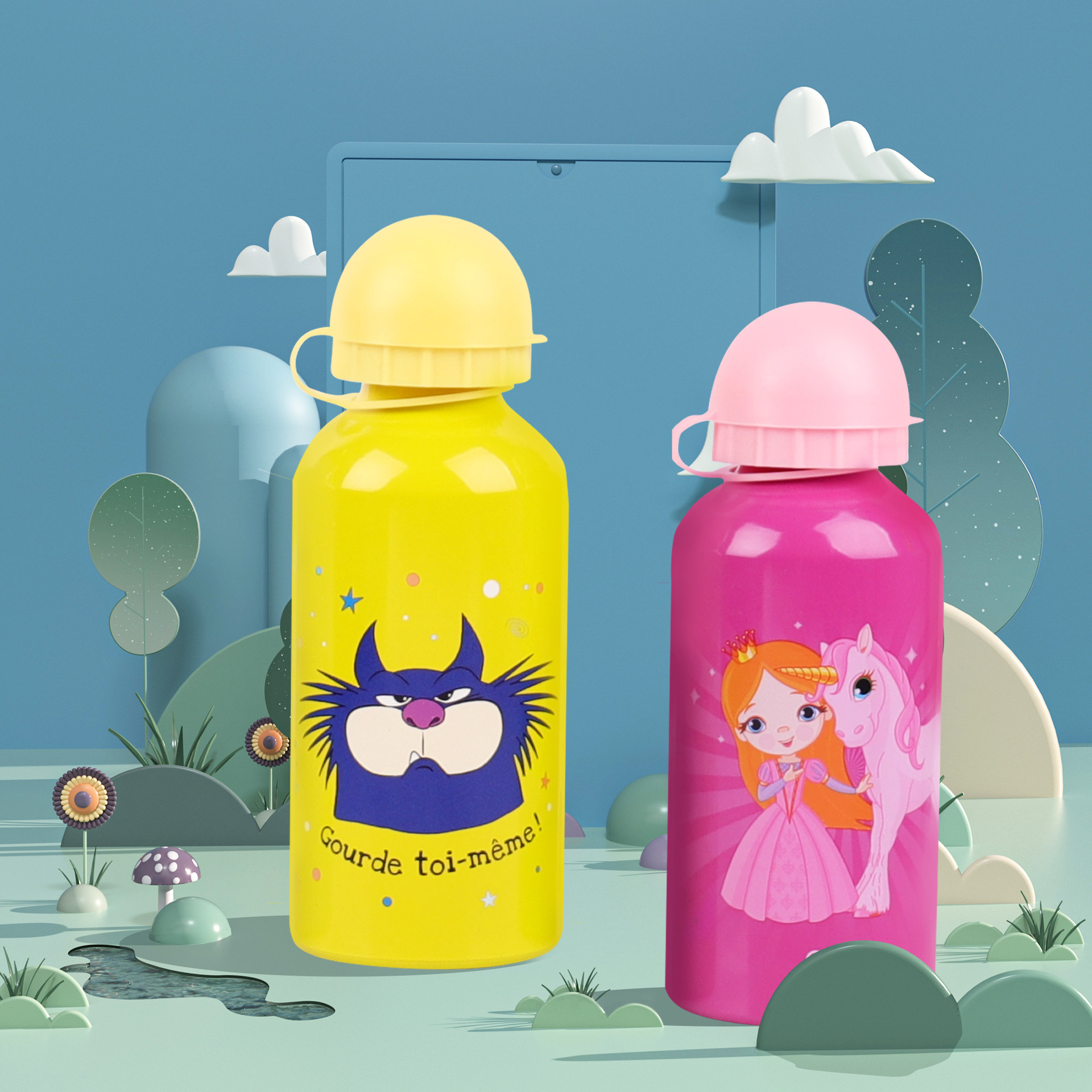 야외 사이클링 스포츠 주전자 등반 냄비 휴대용 자동차 알루미늄 진공 컵 인쇄 어린이 스포츠 컵스토어 가기