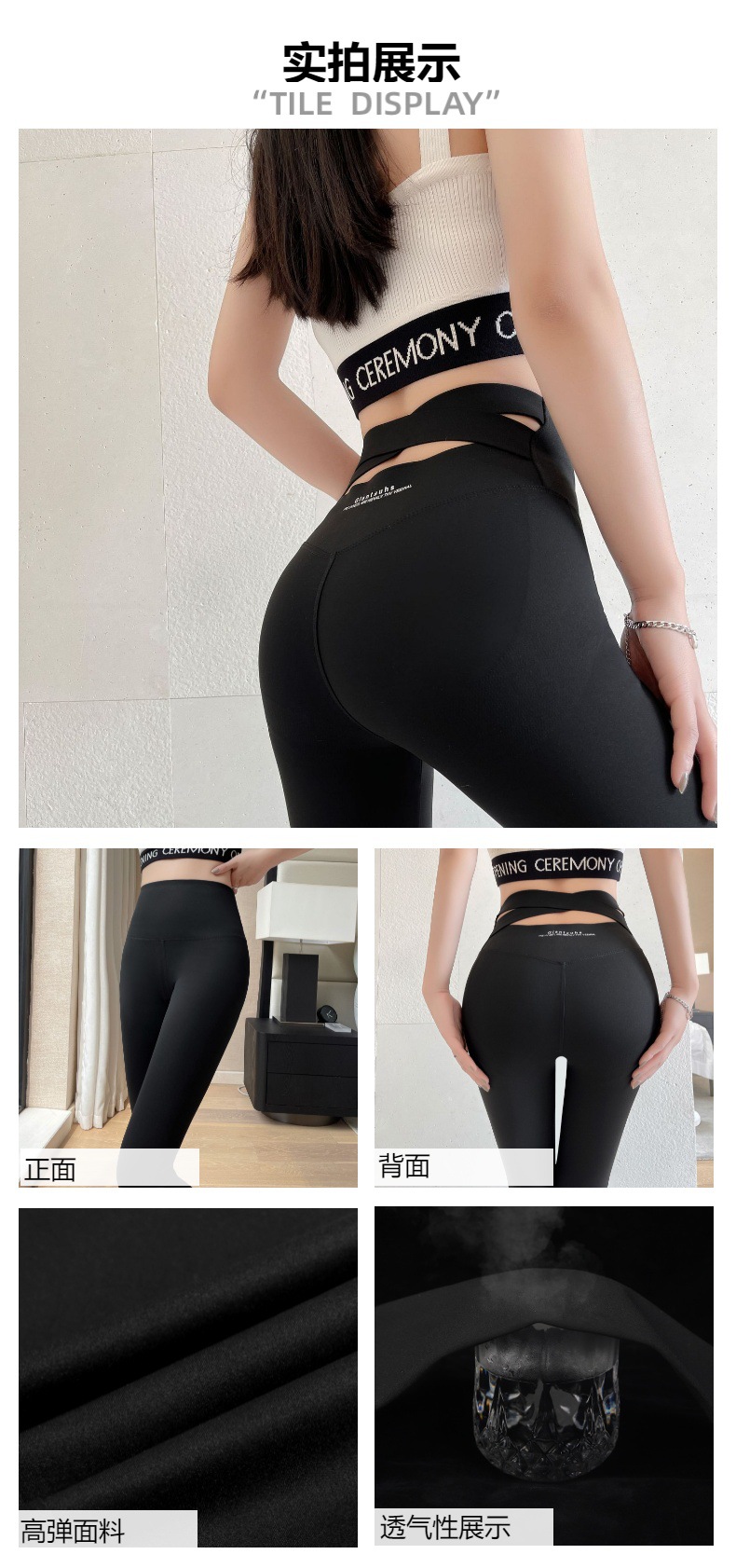 여성용 신형 레터 크로스 웨이스트 샤크 팬츠, 타이트한 슬리밍 레깅스, 여성용 배를 조이고 엉덩이를 들어 올리고 허리를 노출시켜주는 요가 팬츠