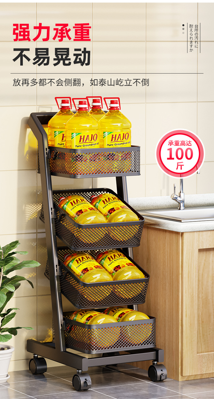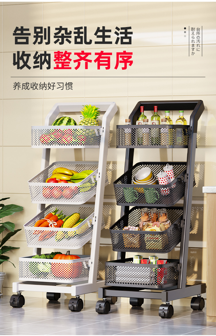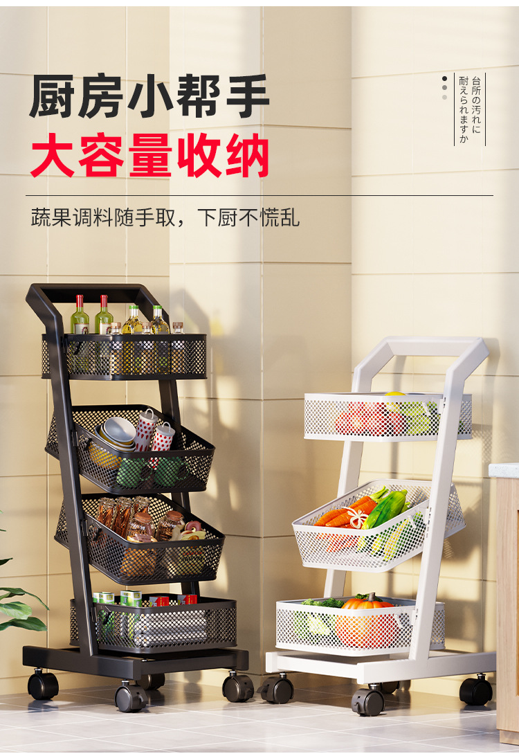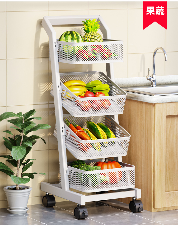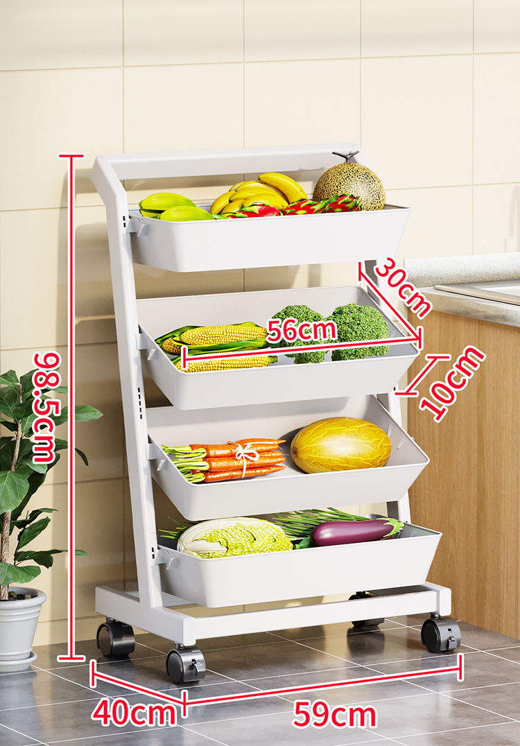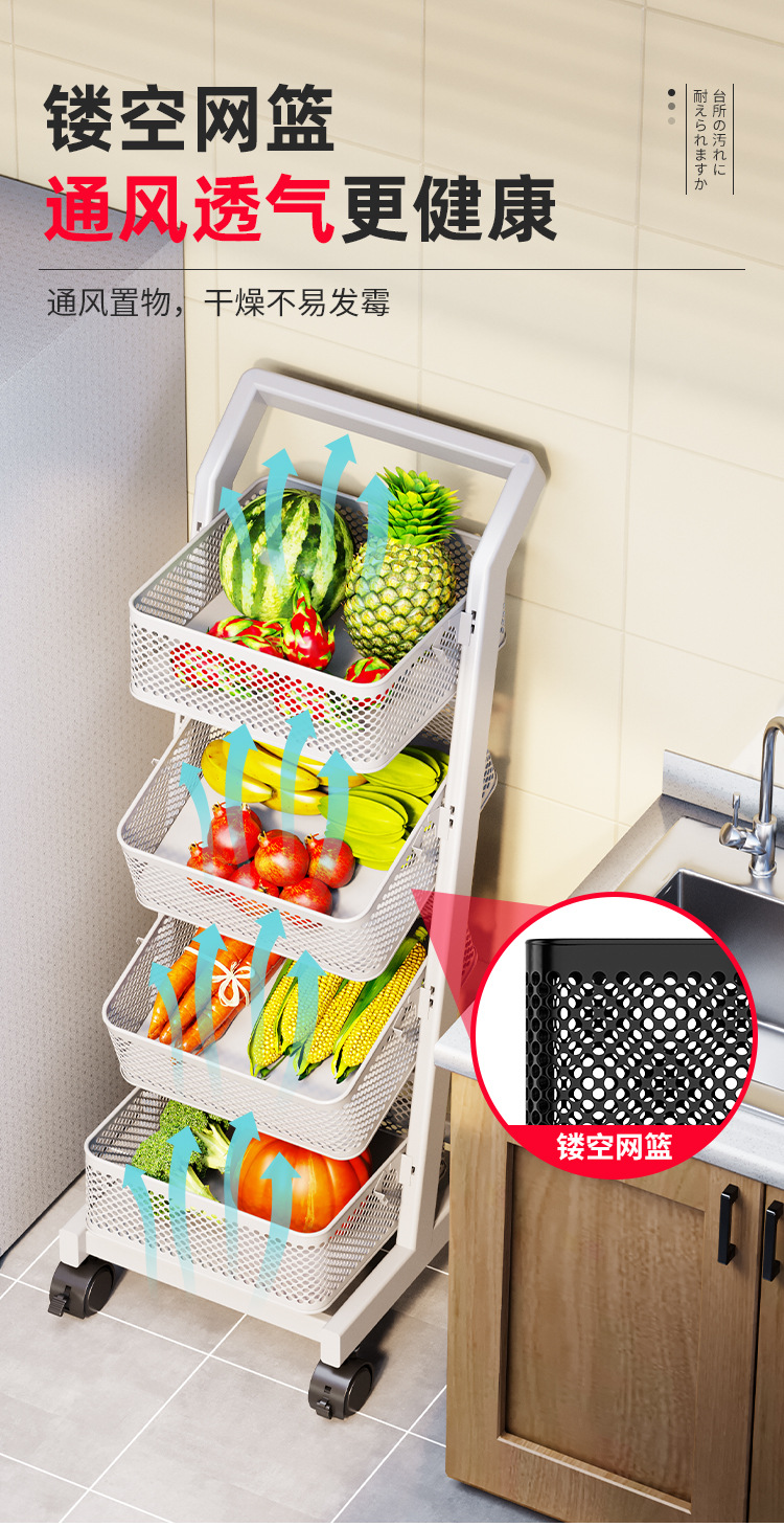 트롤리 보관 랙 주방 과일 및 야채 바구니 이동식 보관 바구니 바닥에 서있는 가정용 다층 보관 랙