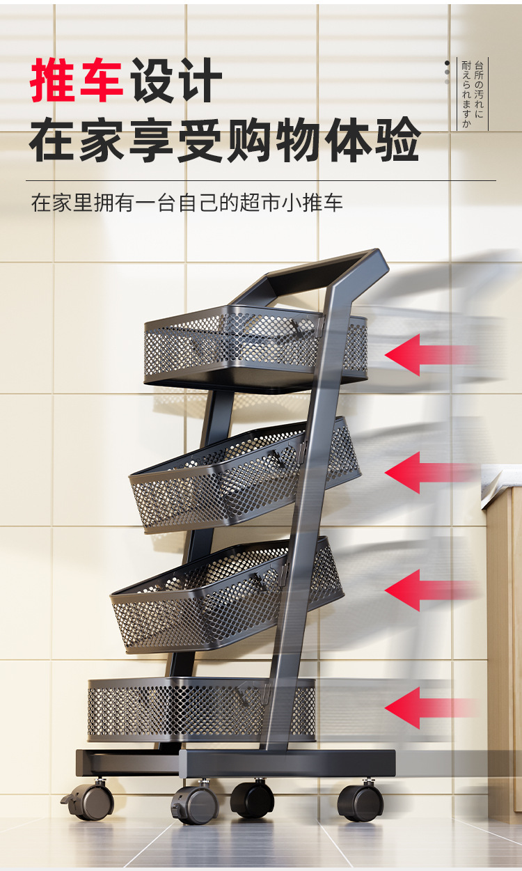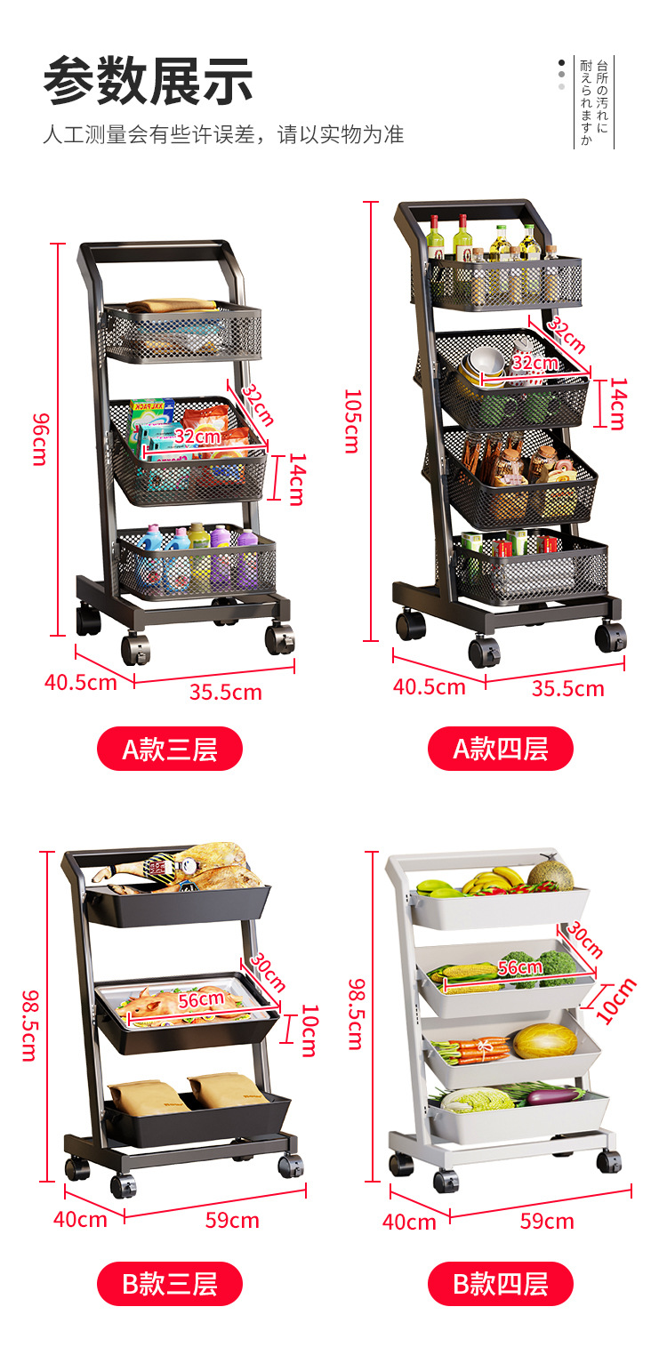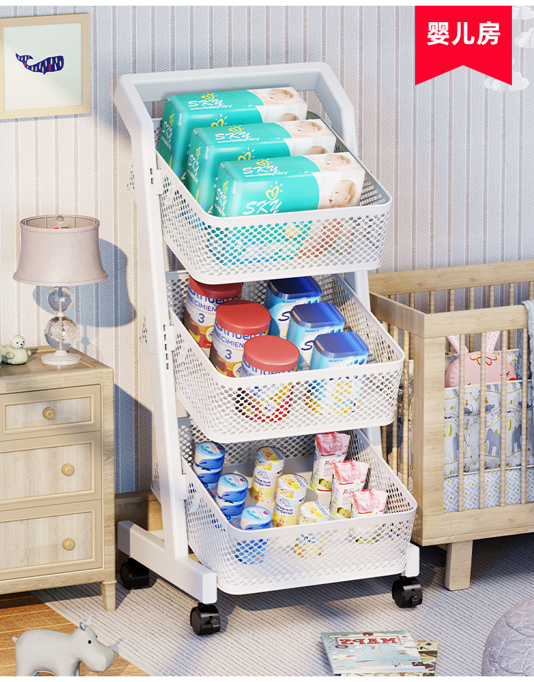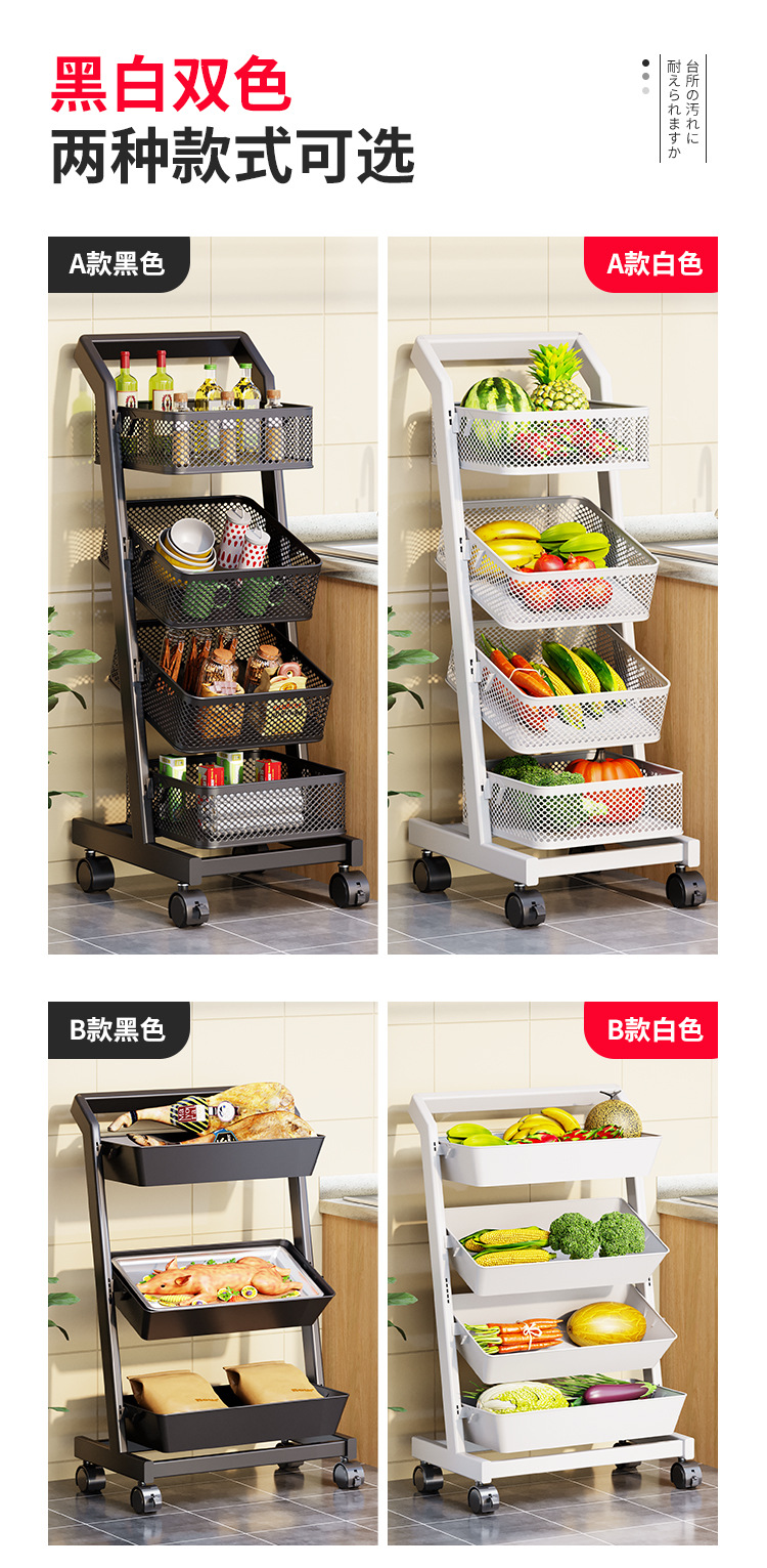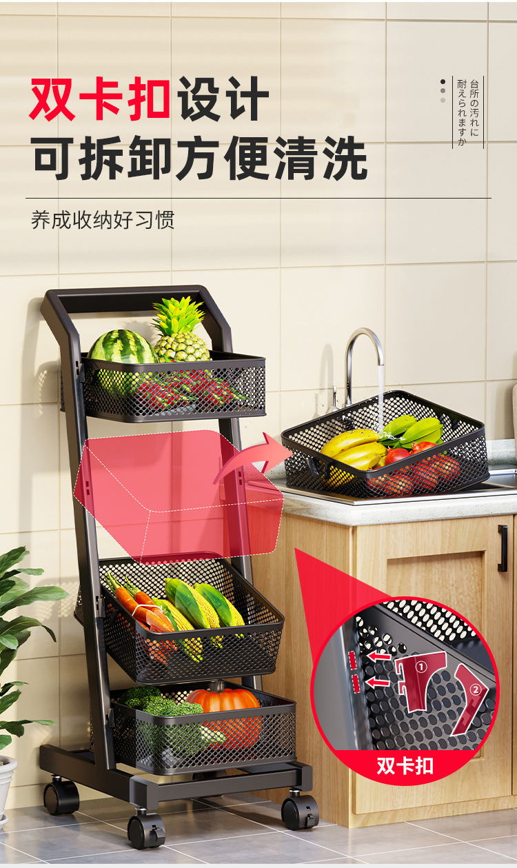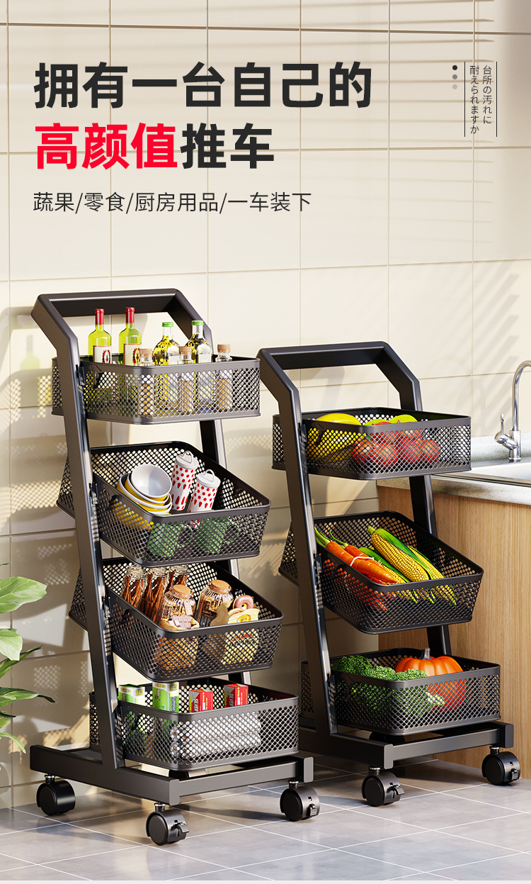 트롤리 보관 랙 주방 과일 및 야채 바구니 이동식 보관 바구니 바닥에 서있는 가정용 다층 보관 랙