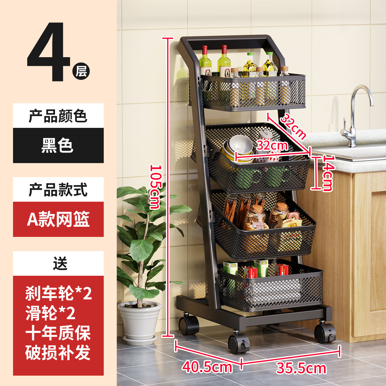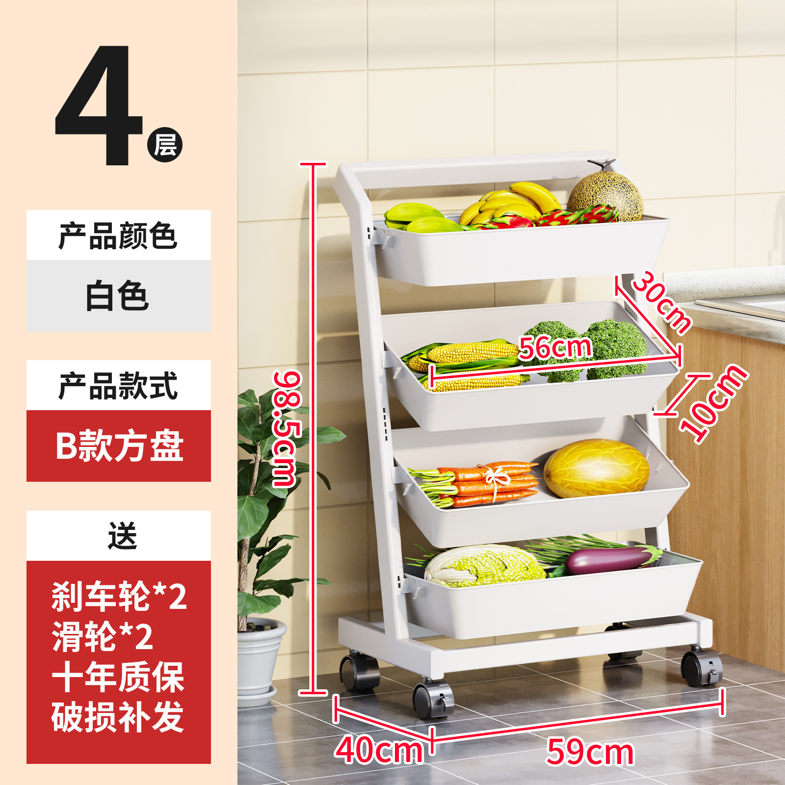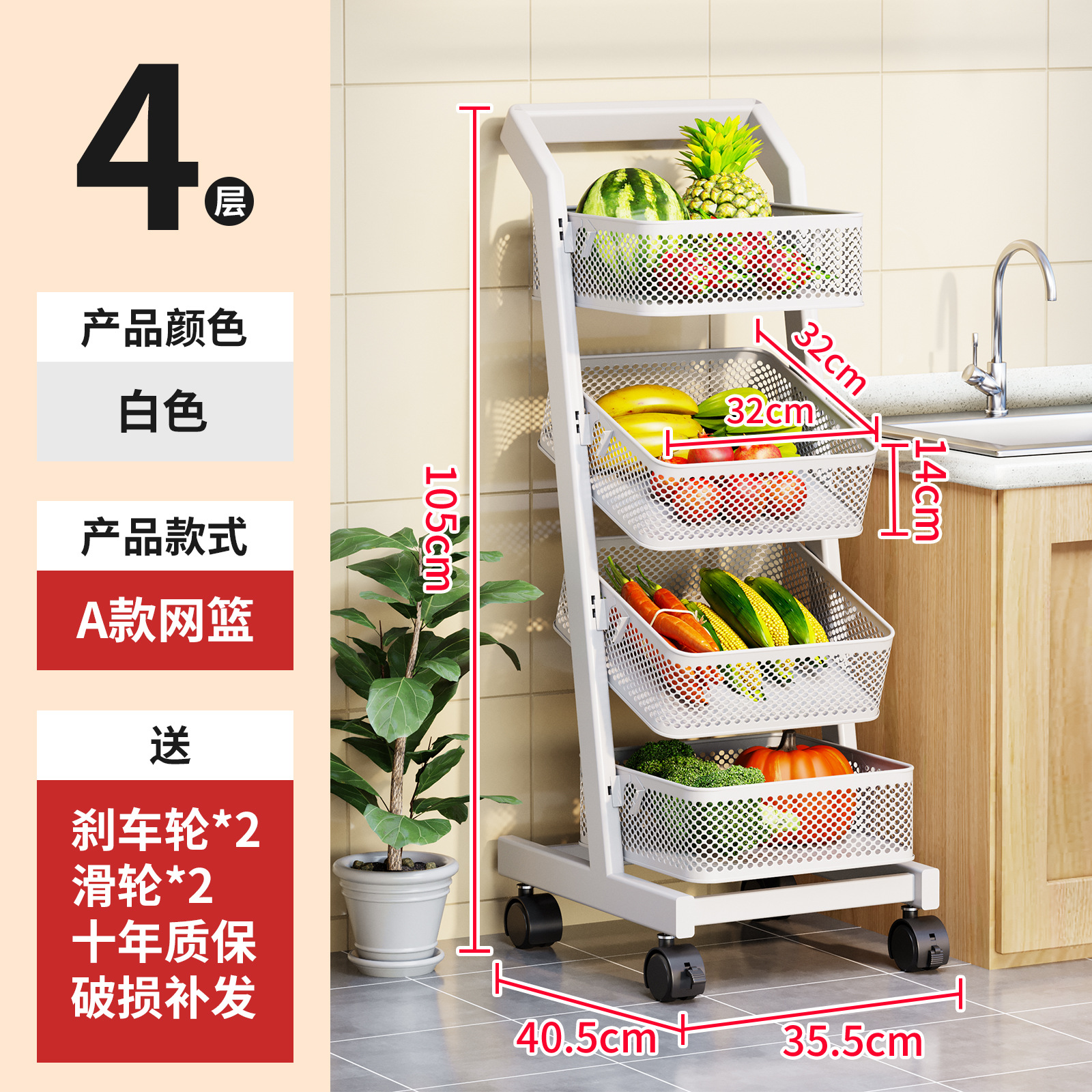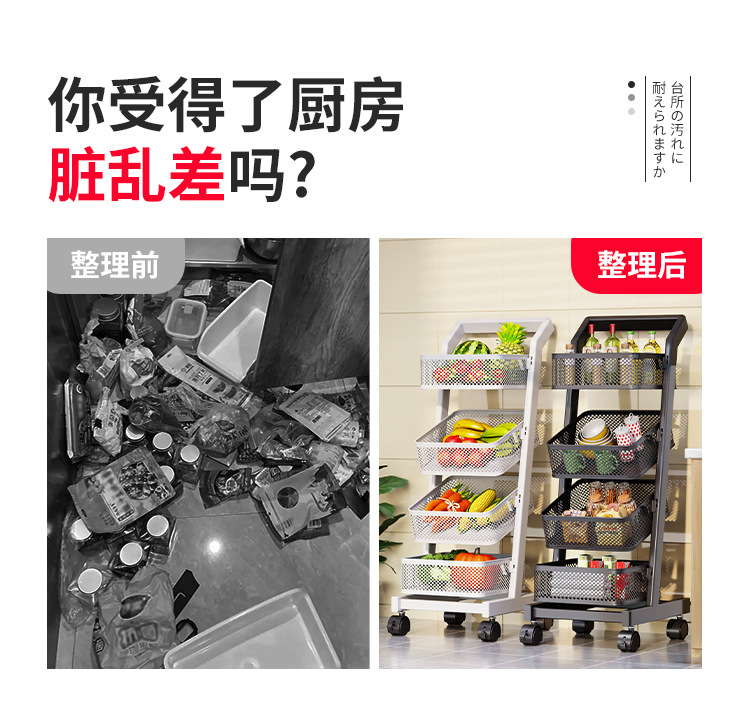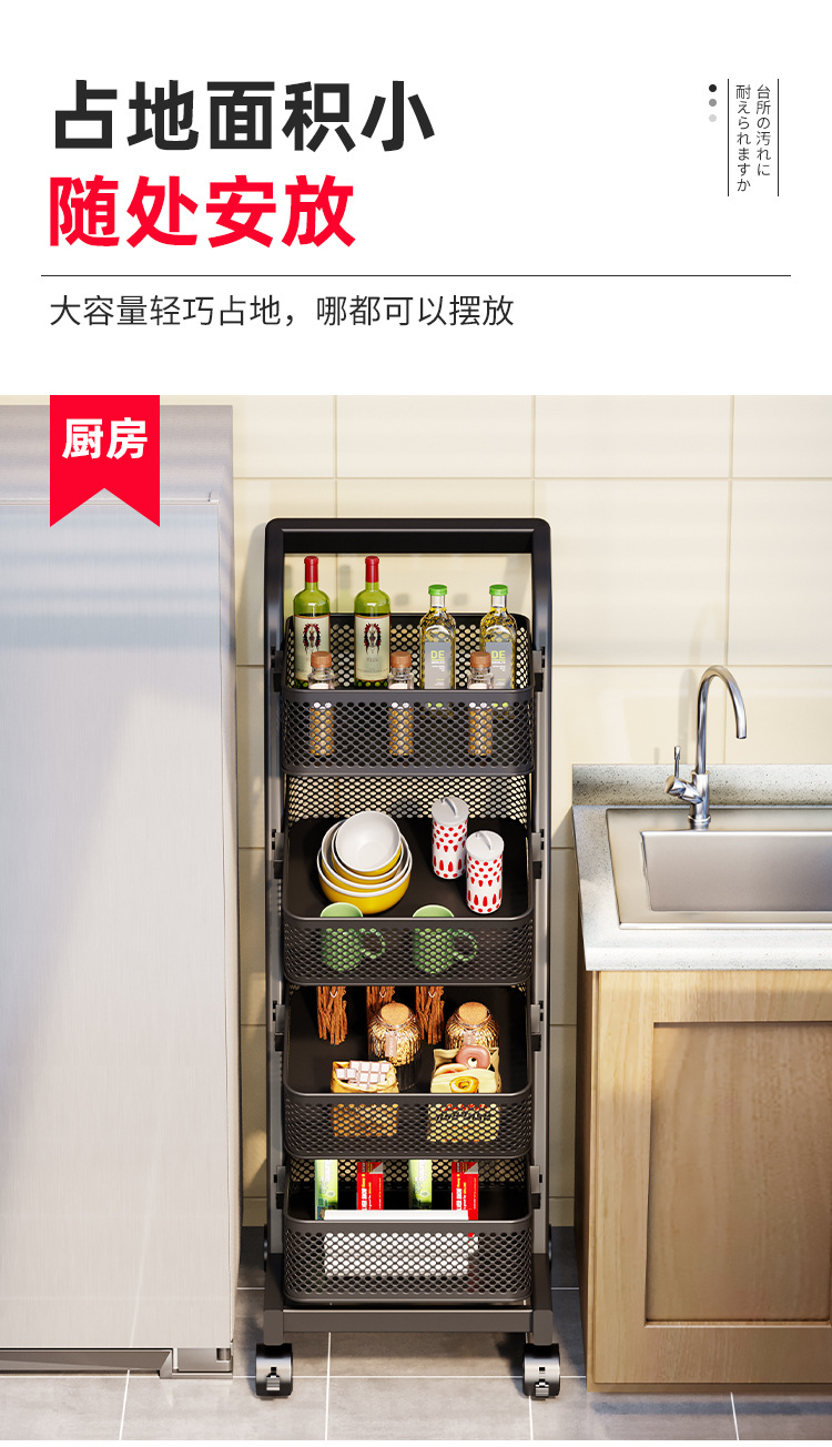 트롤리 보관 랙 주방 과일 및 야채 바구니 이동식 보관 바구니 바닥에 서있는 가정용 다층 보관 랙