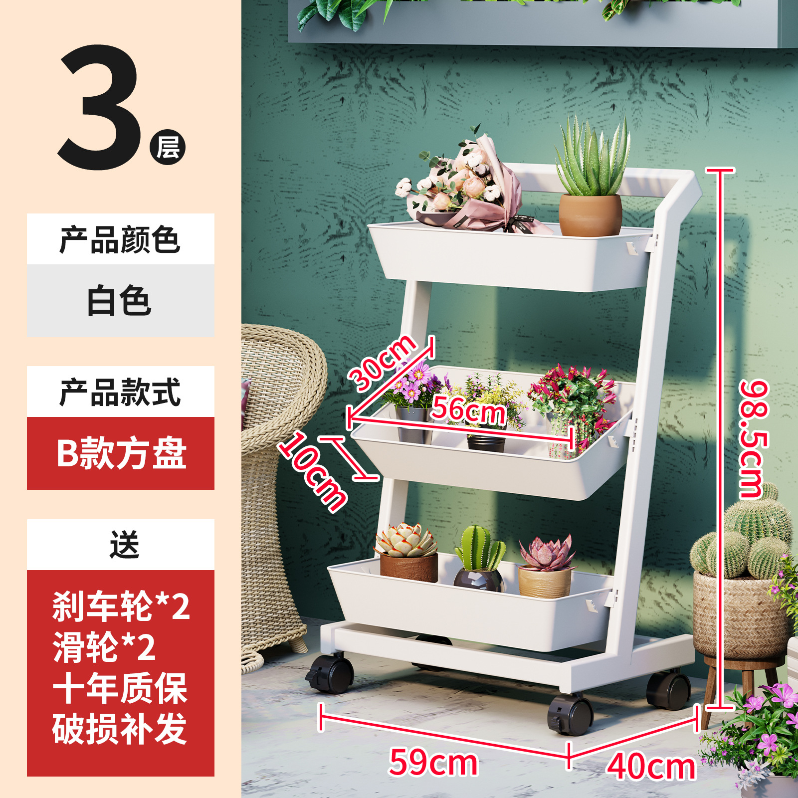 • 카트 선반-깊은 바구니 광장 [흰색 3 층] 작은