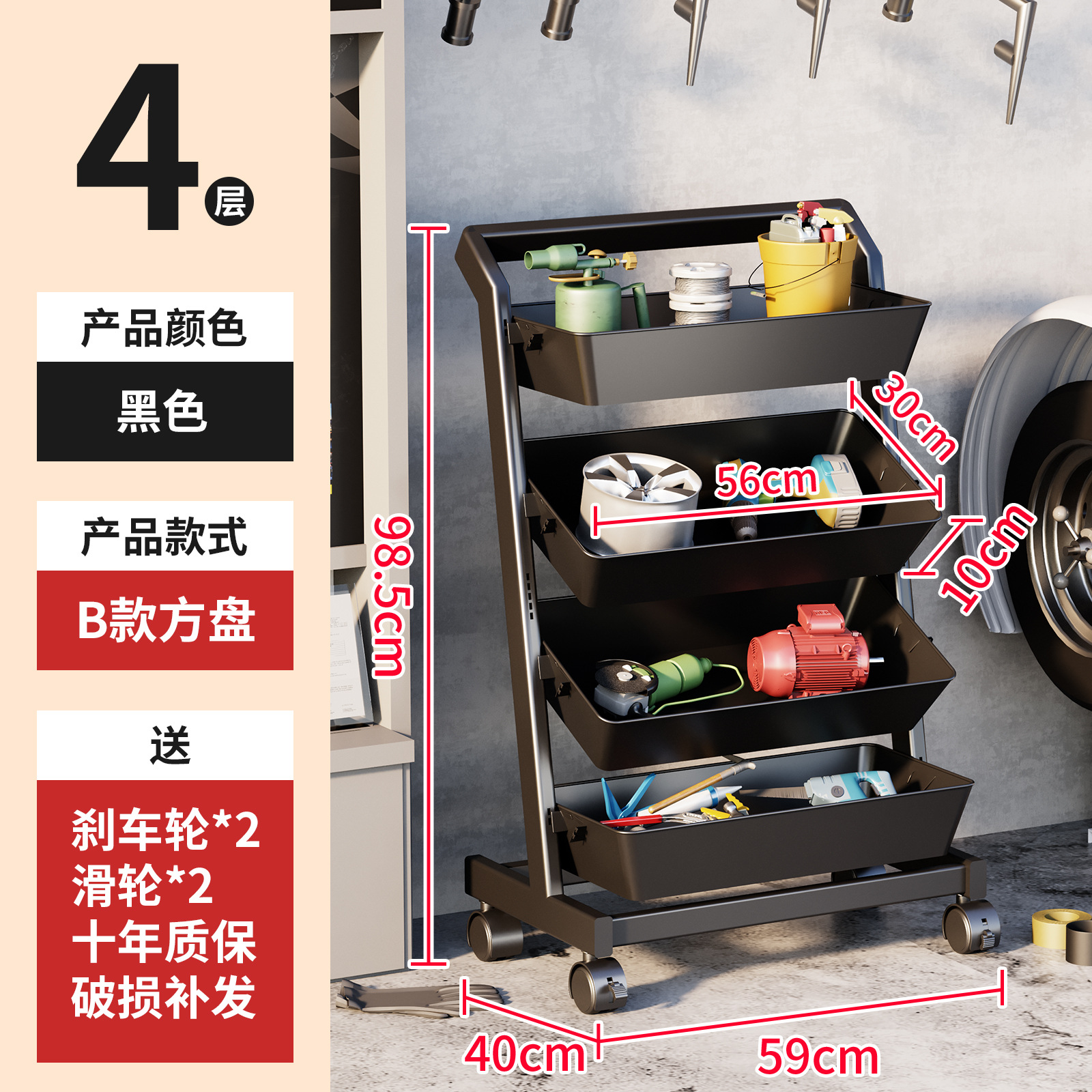 • 카트 선반-깊은 바구니 광장 [블랙 4 층] 작은