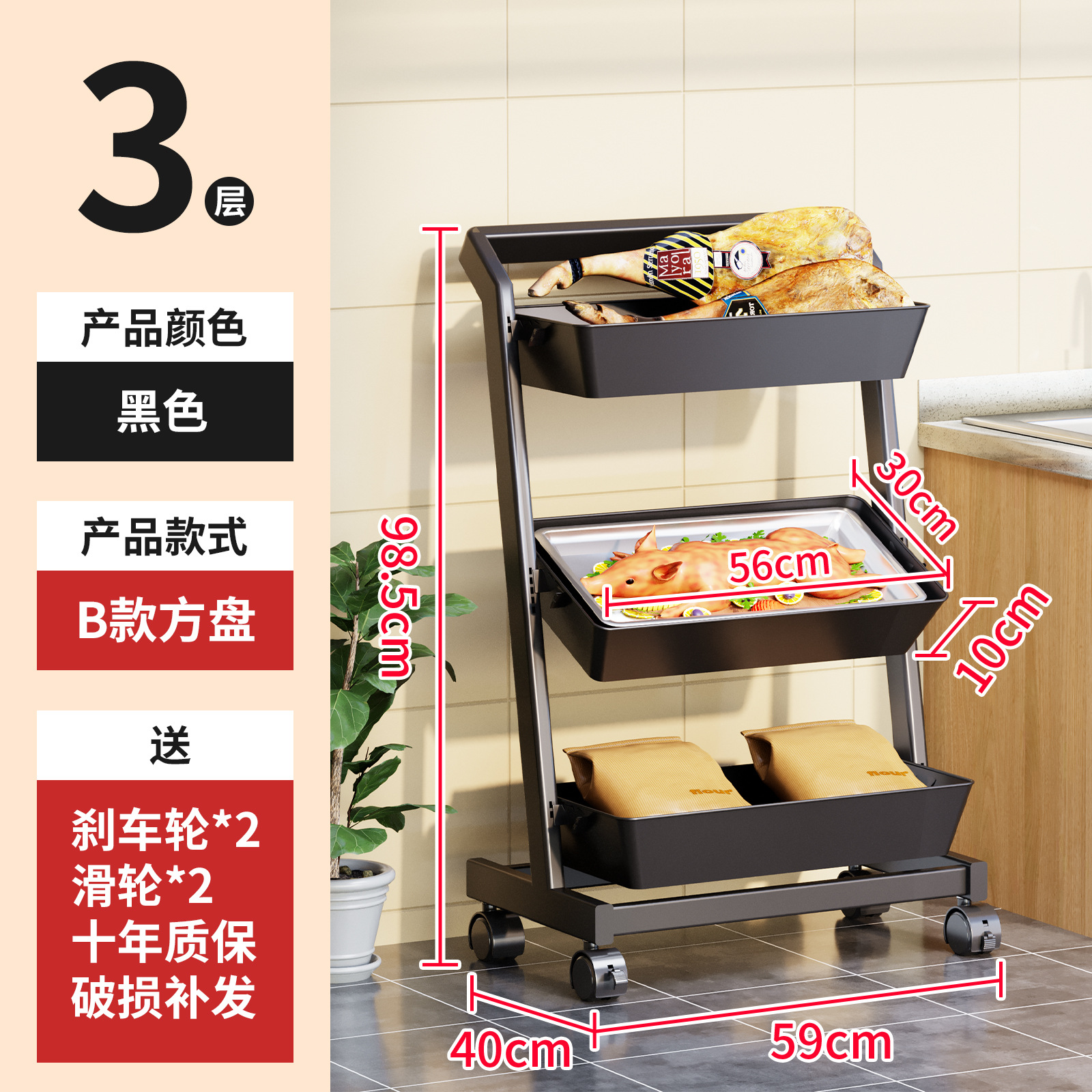 • 카트 선반-깊은 바구니 광장 [블랙 3 층] 작은