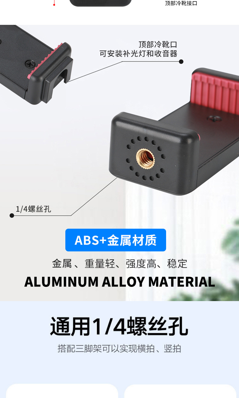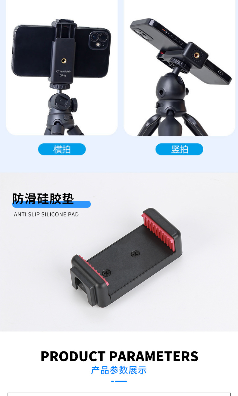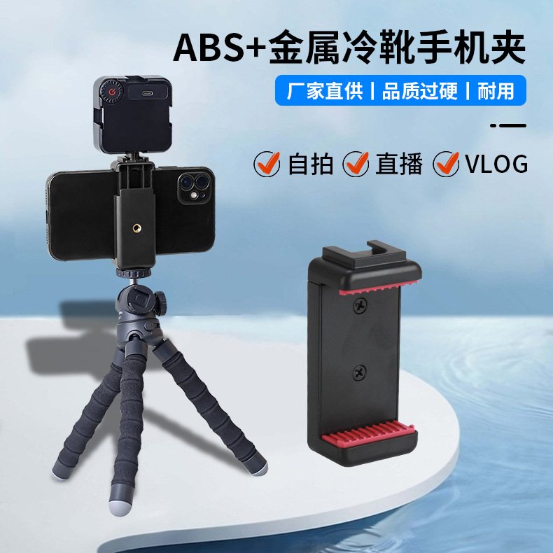 듀얼홀 다기능 콜드슈 휴대폰 클립, 삼각대 셀카봉 일자형 휴대폰 클립, 휴대폰 범용 라이브 방송 스탠드