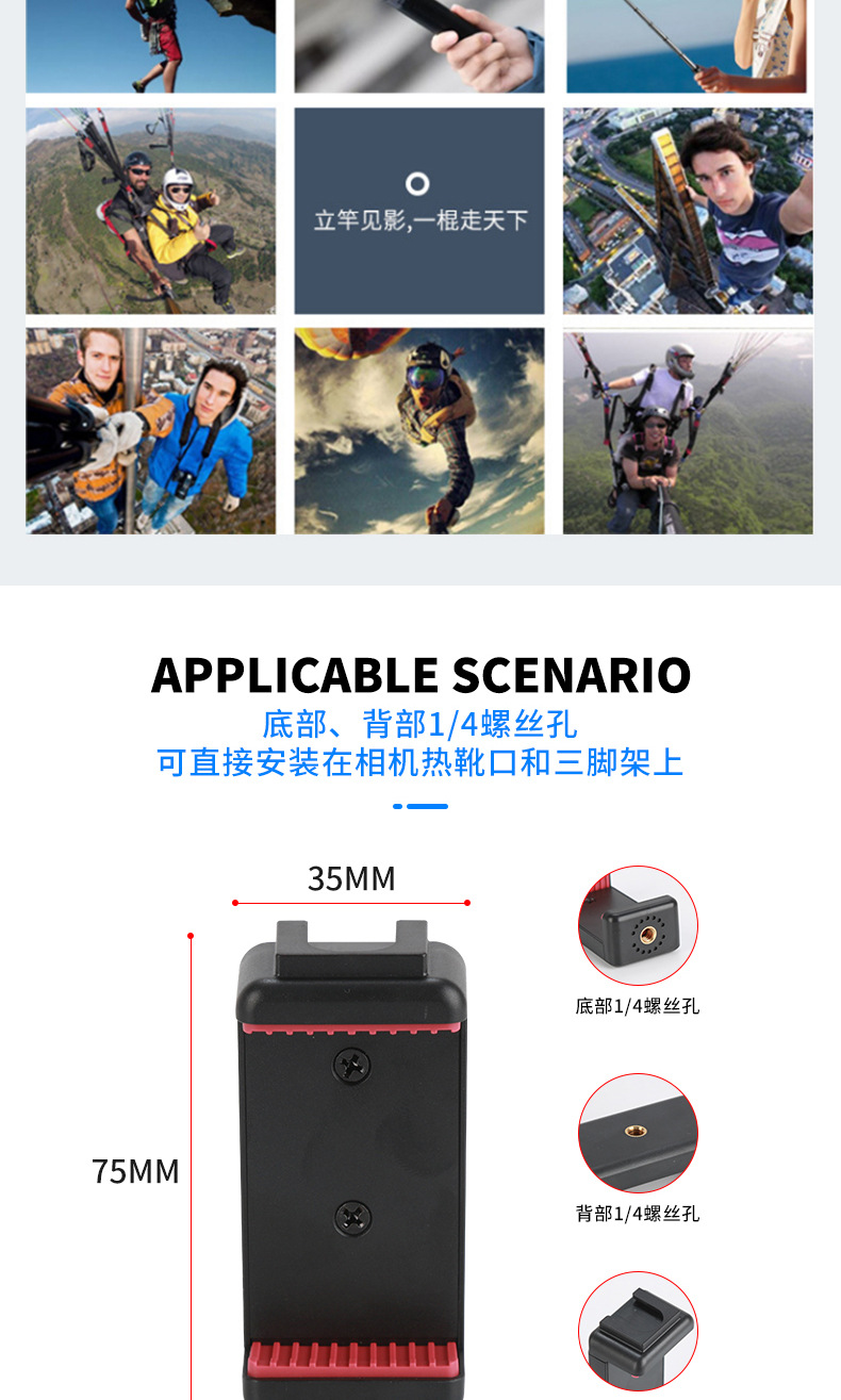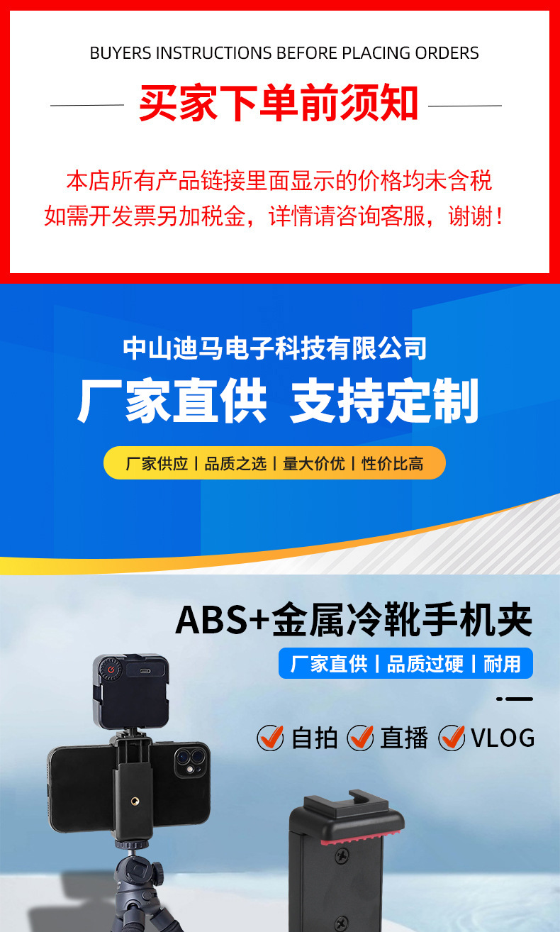 듀얼홀 다기능 콜드슈 휴대폰 클립, 삼각대 셀카봉 일자형 휴대폰 클립, 휴대폰 범용 라이브 방송 스탠드스토어 가기