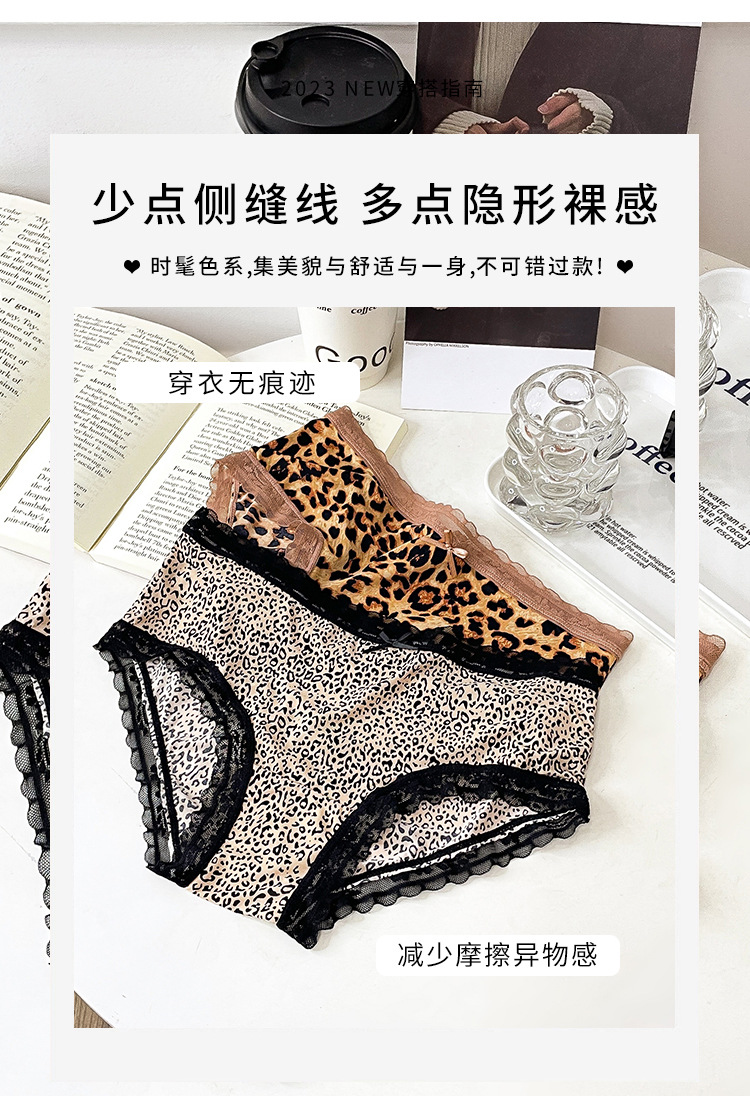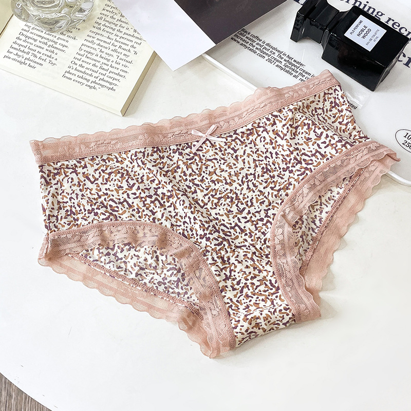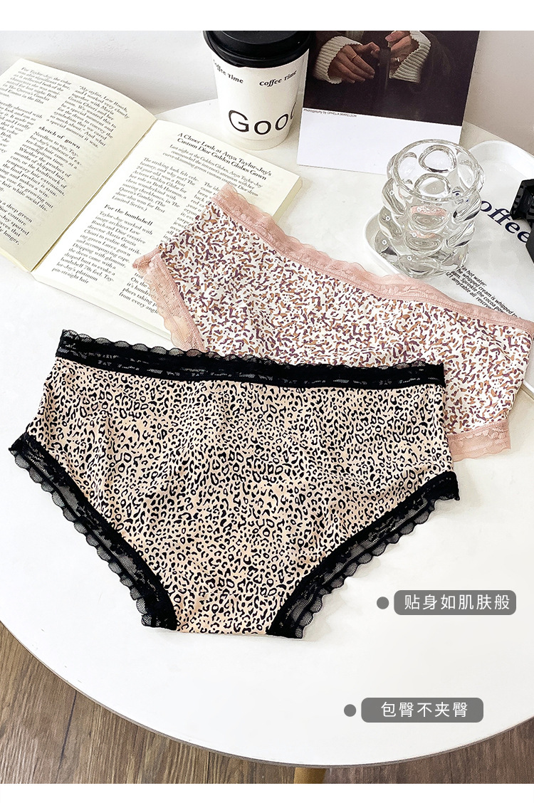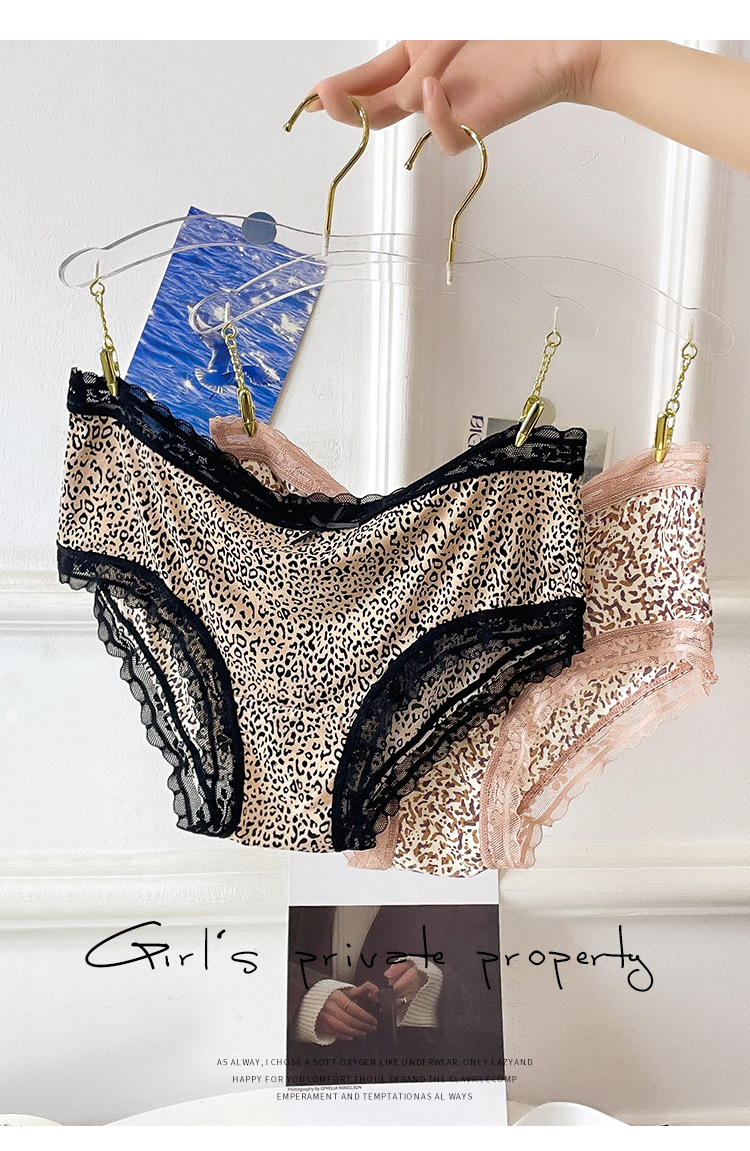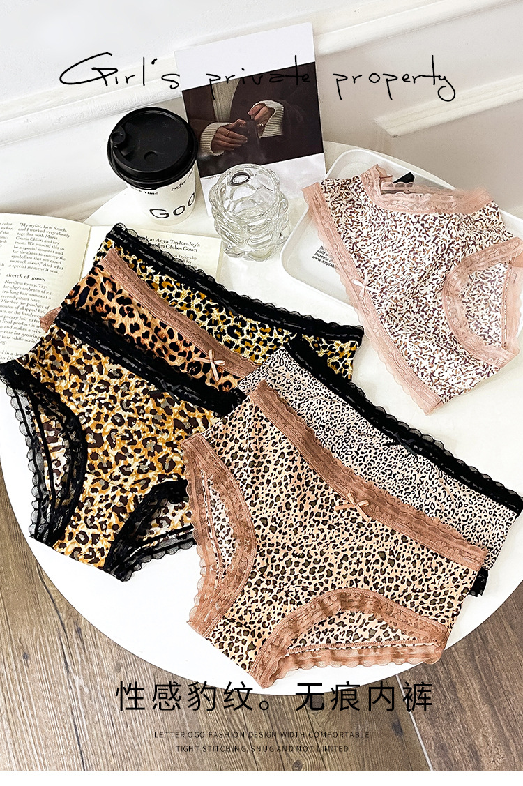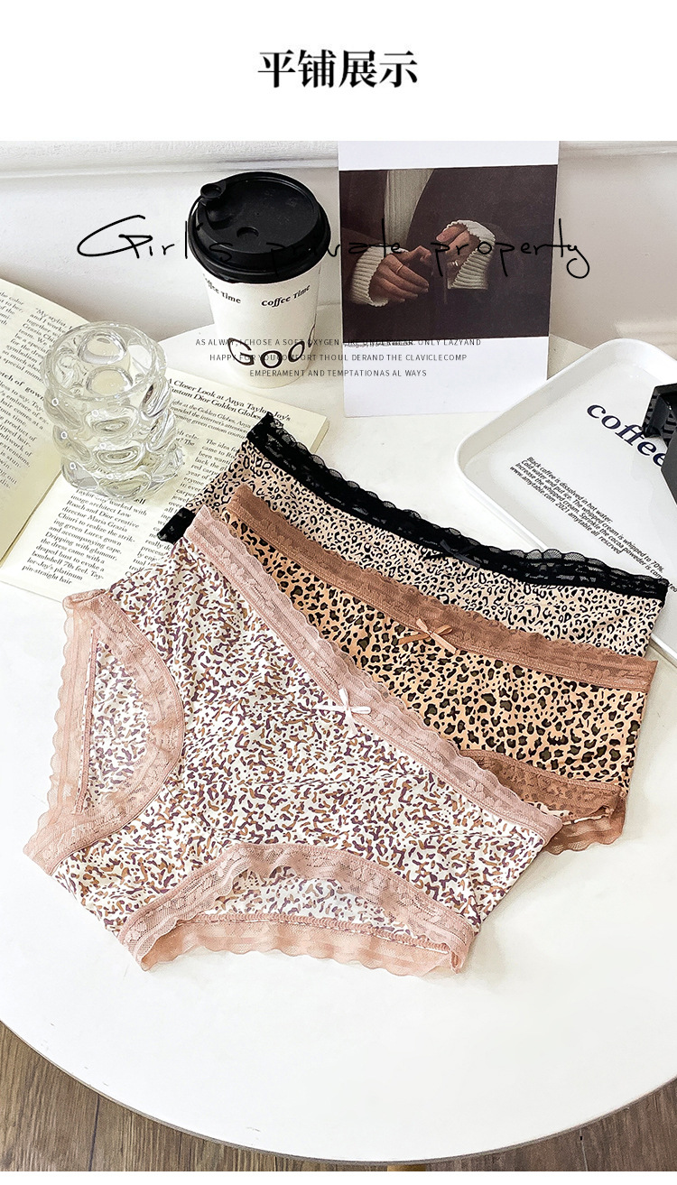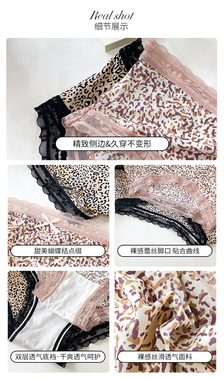 레오파드 무늬 속옷 여자의 아이스 실크 섹시 순수 레이스 통기성 편안한 여자의 순면 가랑이 가방 엉덩이 브리프 여성스토어 가기