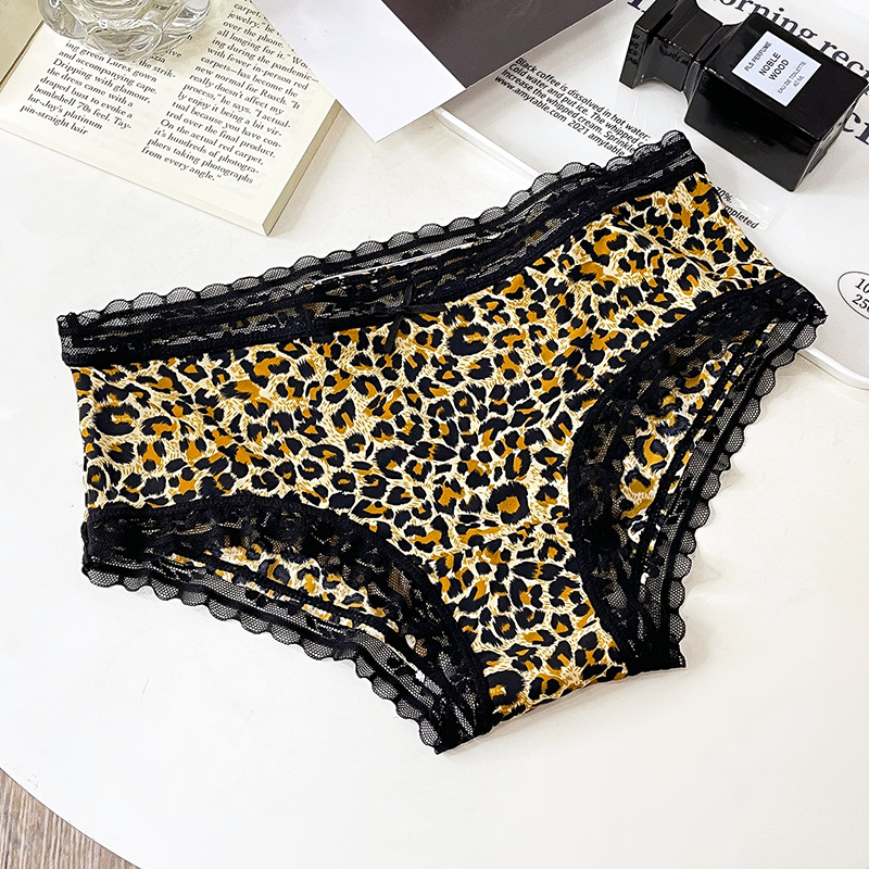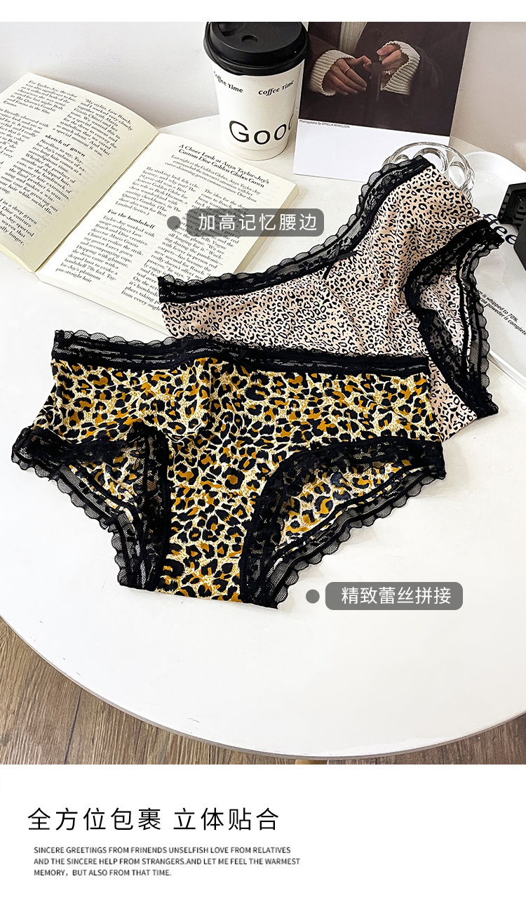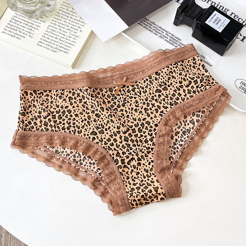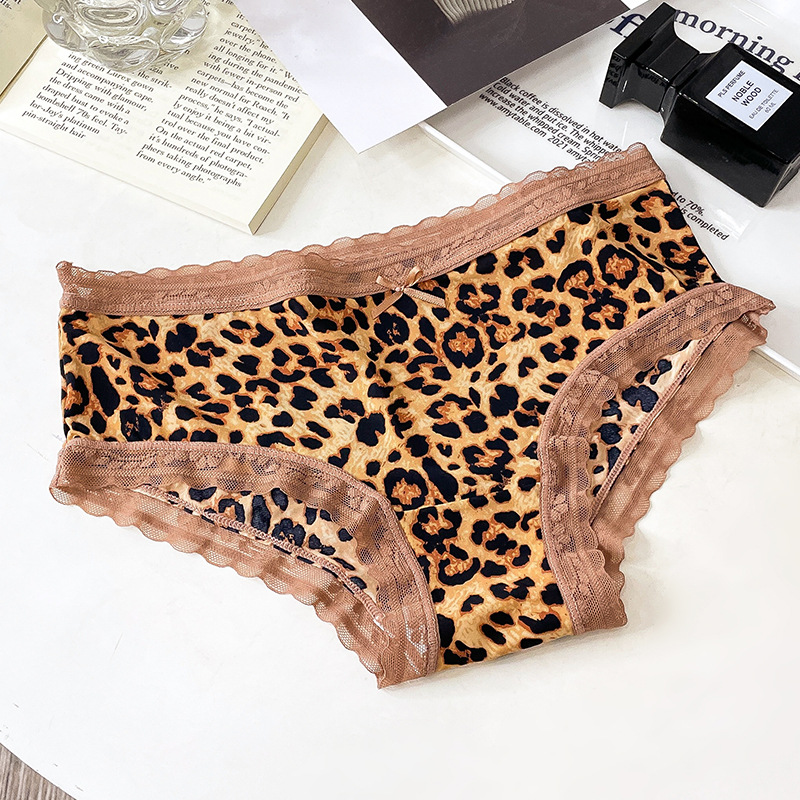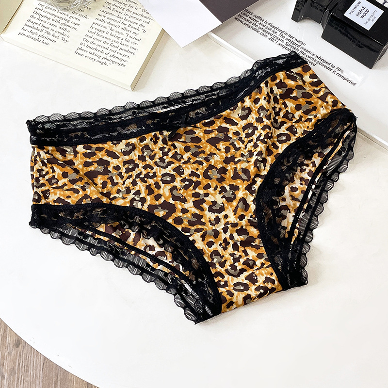 레오파드 무늬 속옷 여자의 아이스 실크 섹시 순수 레이스 통기성 편안한 여자의 순면 가랑이 가방 엉덩이 브리프 여성