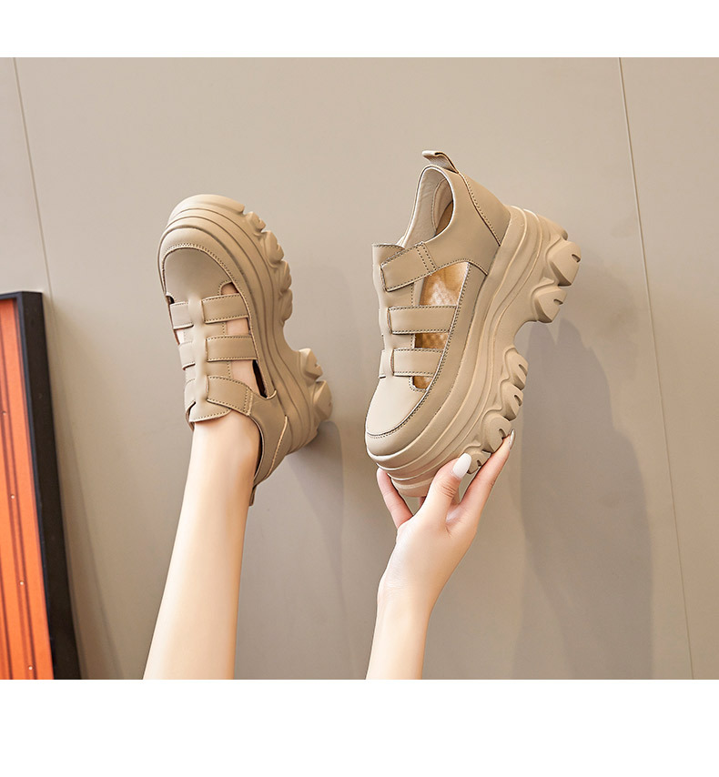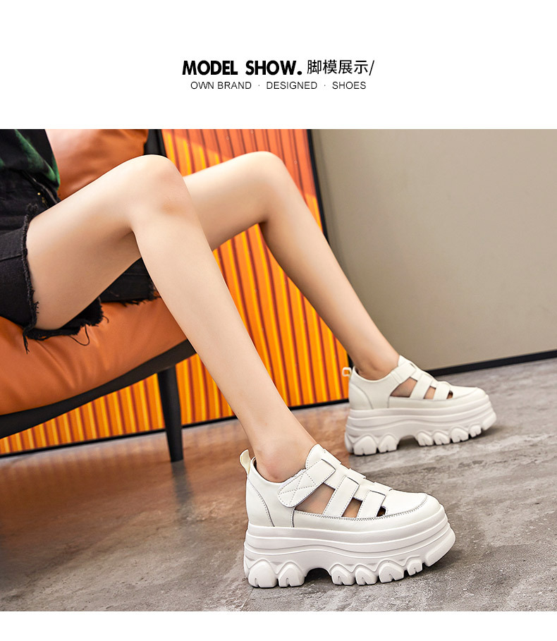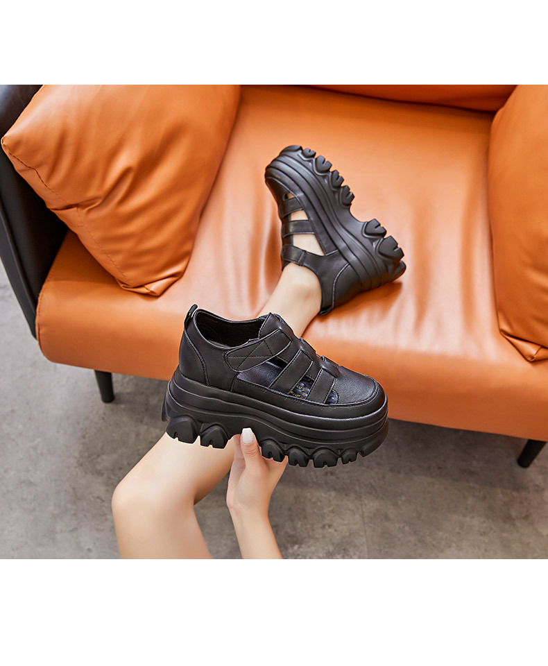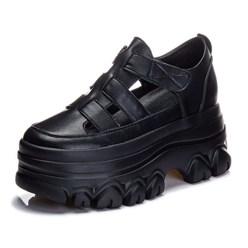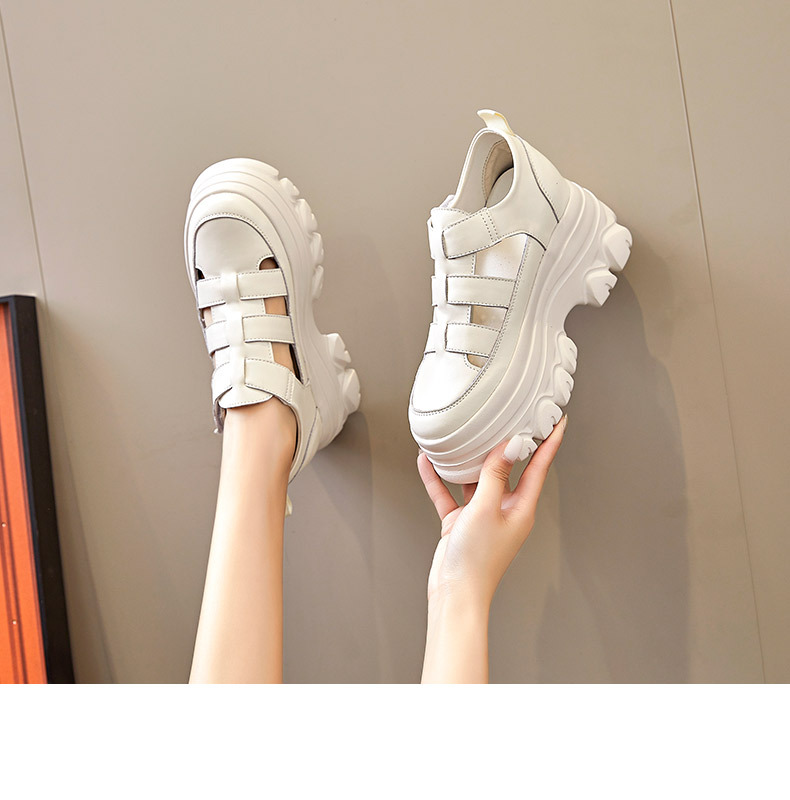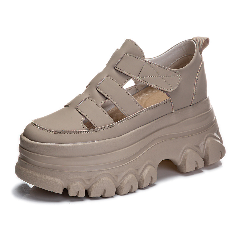 정품 가죽 플랫폼 신발 여성 2025 여름 높이 증가 벨크로 정품 가죽 스포츠 검투사 신발