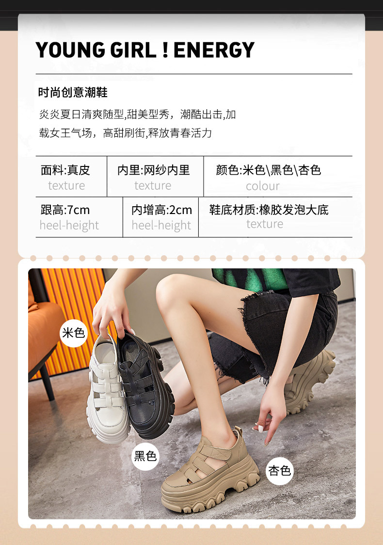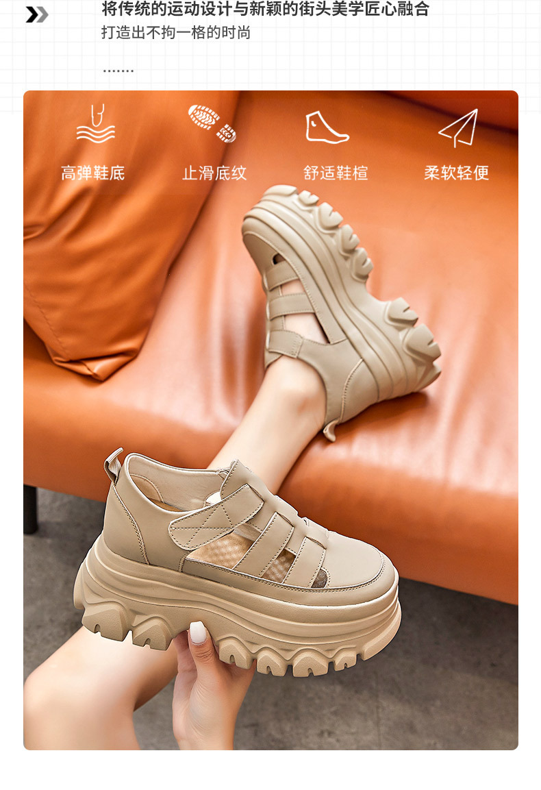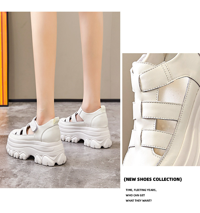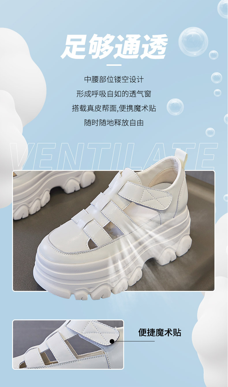 정품 가죽 플랫폼 신발 여성 2025 여름 높이 증가 벨크로 정품 가죽 스포츠 검투사 신발스토어 가기