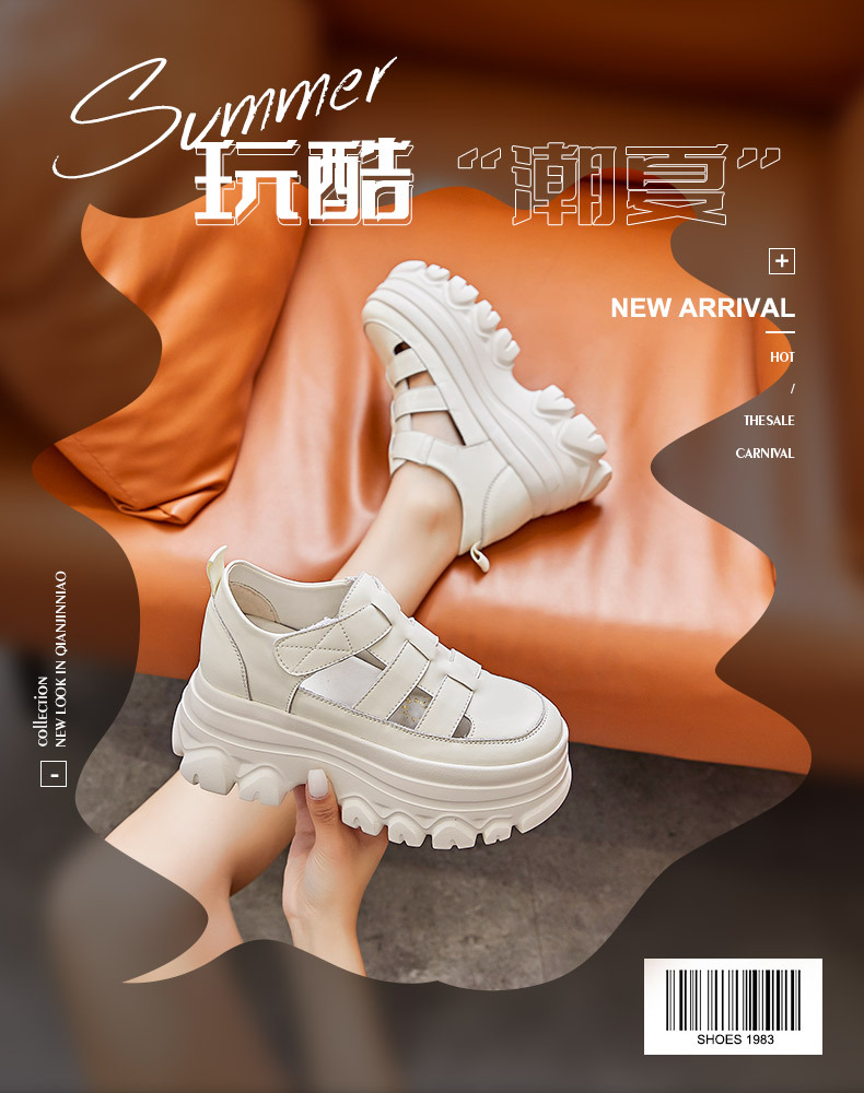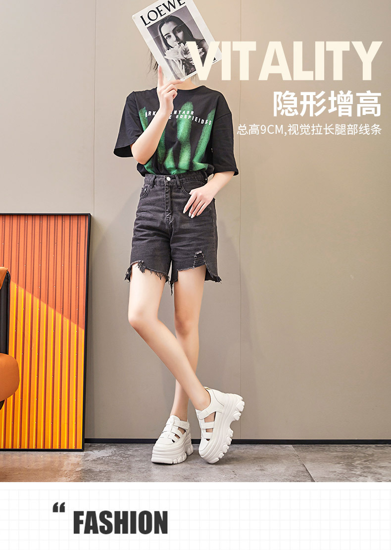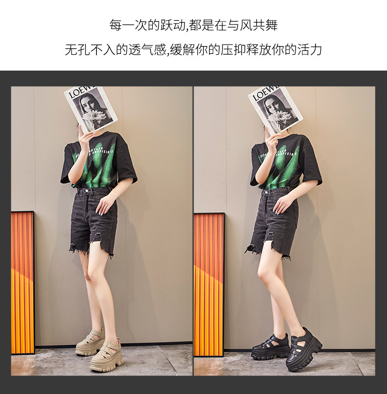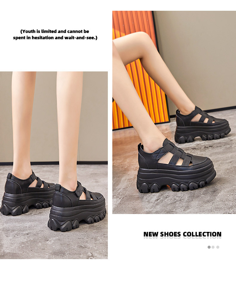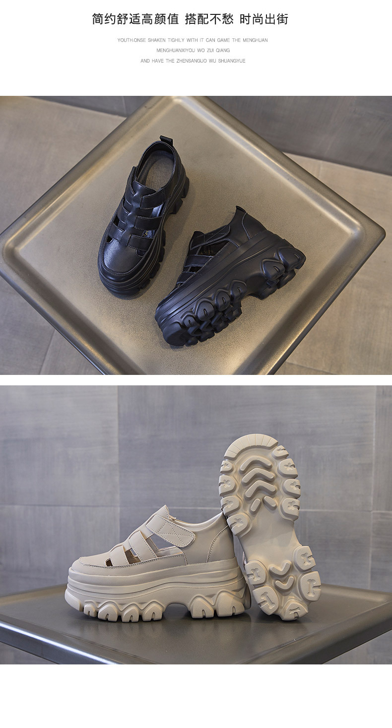 정품 가죽 플랫폼 신발 여성 2025 여름 높이 증가 벨크로 정품 가죽 스포츠 검투사 신발스토어 가기