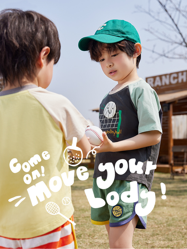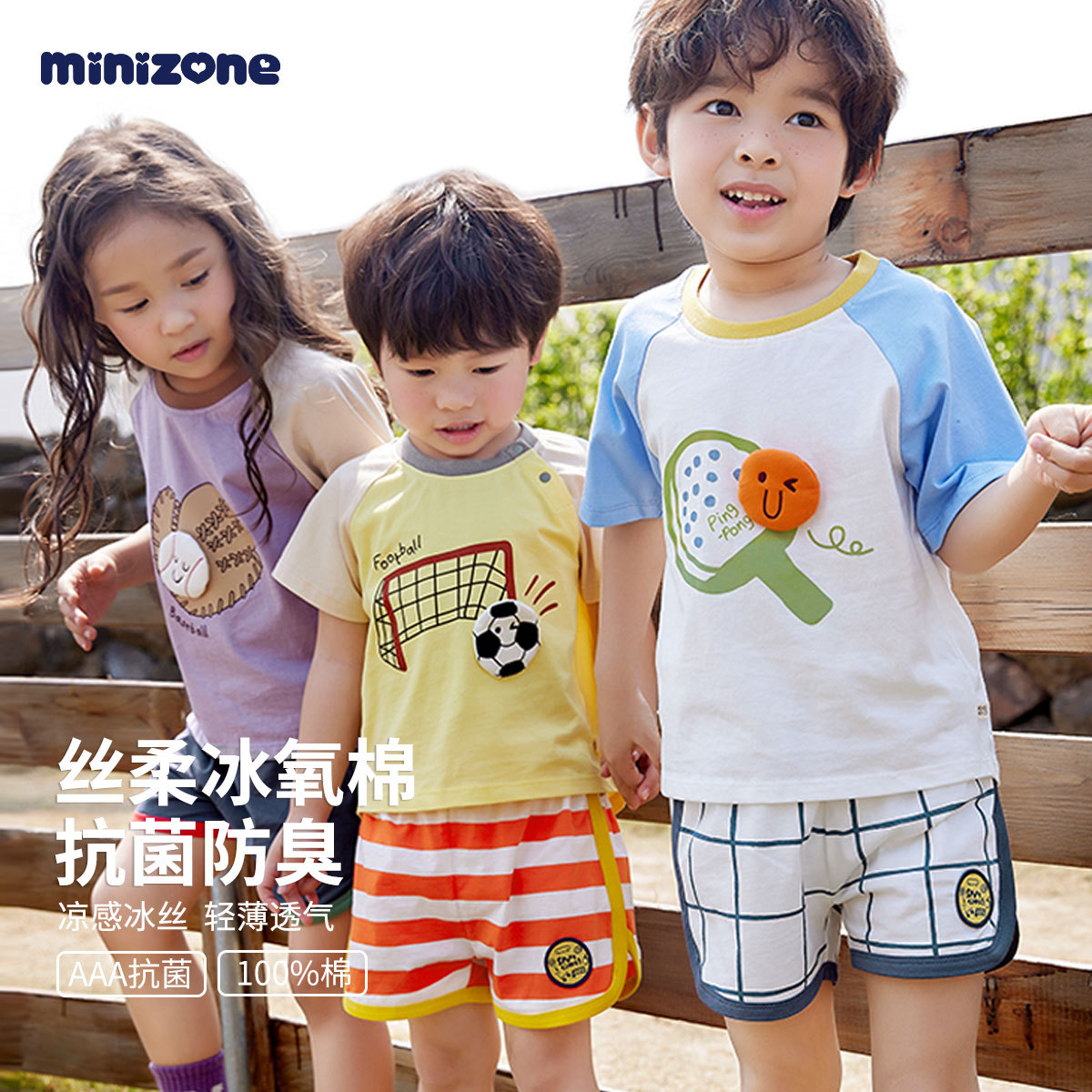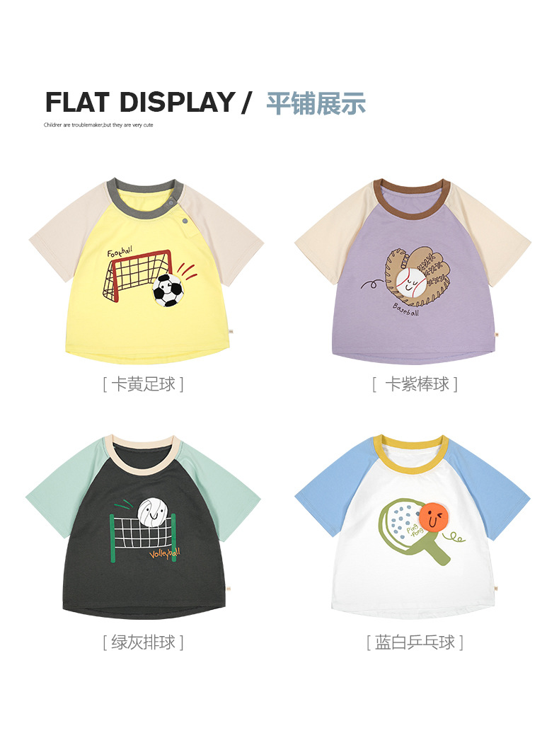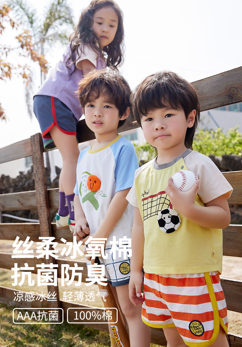 Minizone 어린이 반팔 셔츠 아이스 산소 코튼 탑 여름 얇은 티셔츠 3A 항균 크루넥 티셔츠 대비 색상 반팔 셔츠스토어 가기