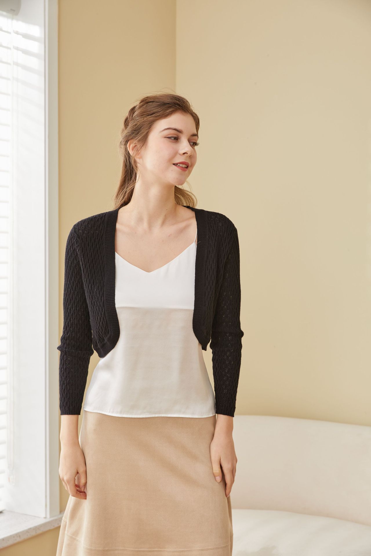 유웨이 2025년 봄 신상품 뽕나무 실크 니트 가디건 여성용 조끼 코트 여성 상의 도매스토어 가기