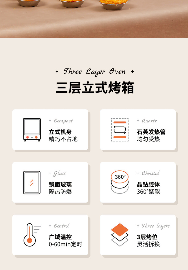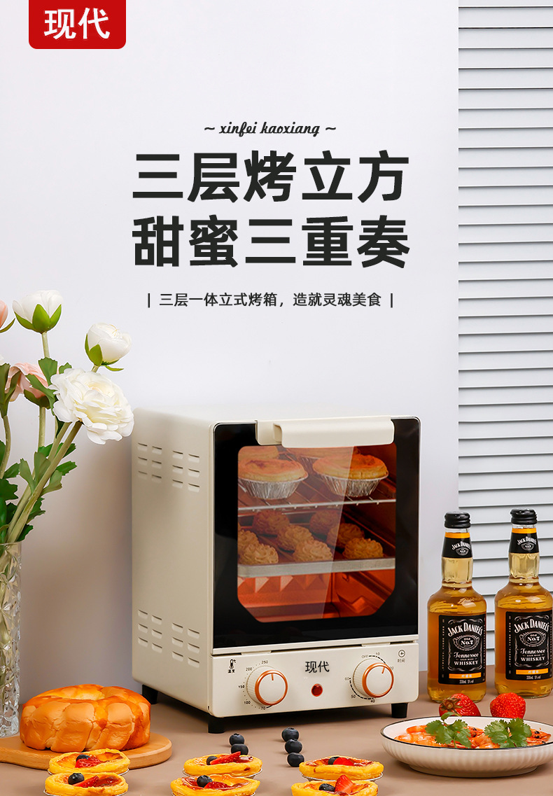 Xianke 가정용 다기능 오븐 미니 수직 전기 오븐 15L 3 층 굽기 공기 튀긴 오븐 올인원 기계