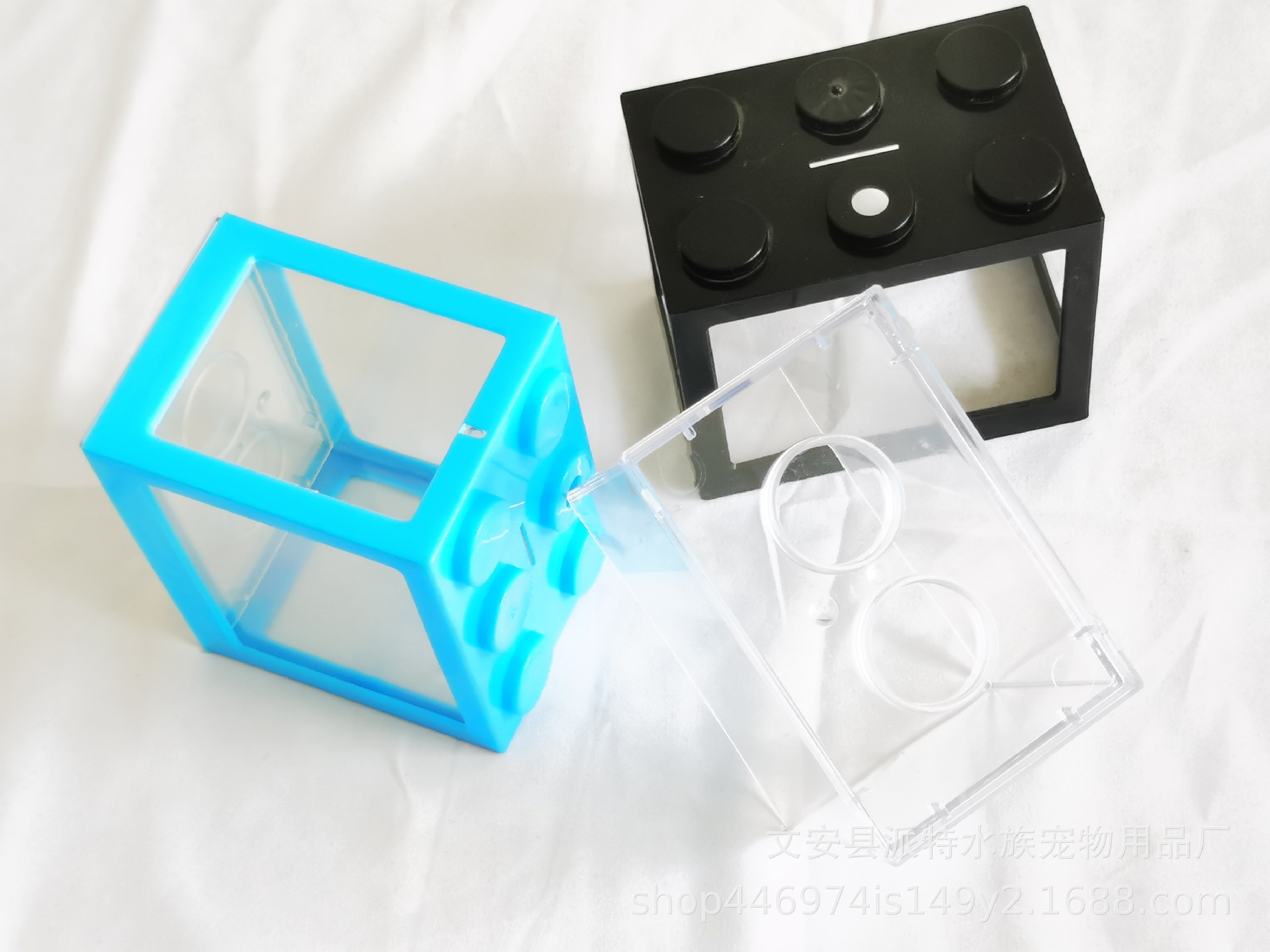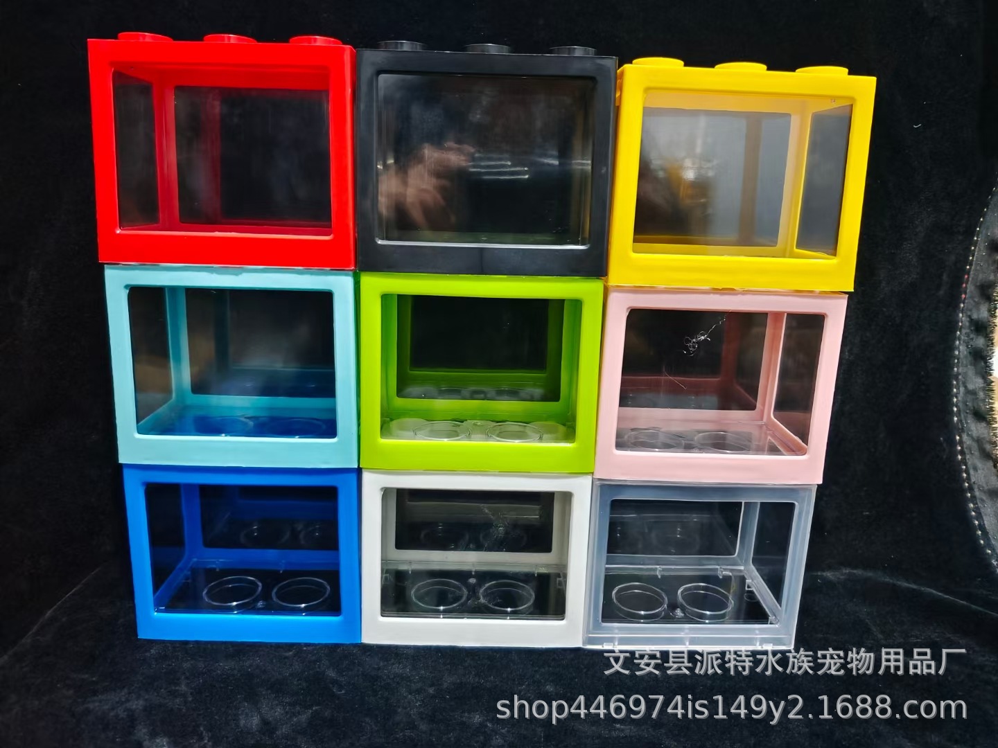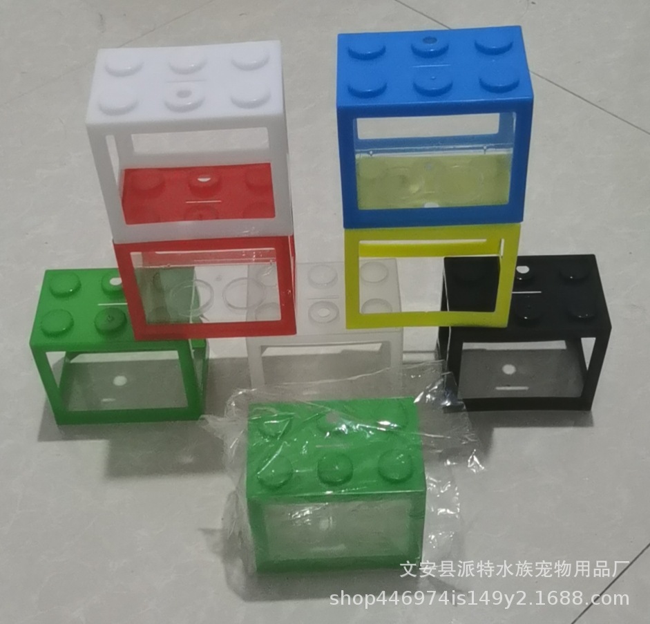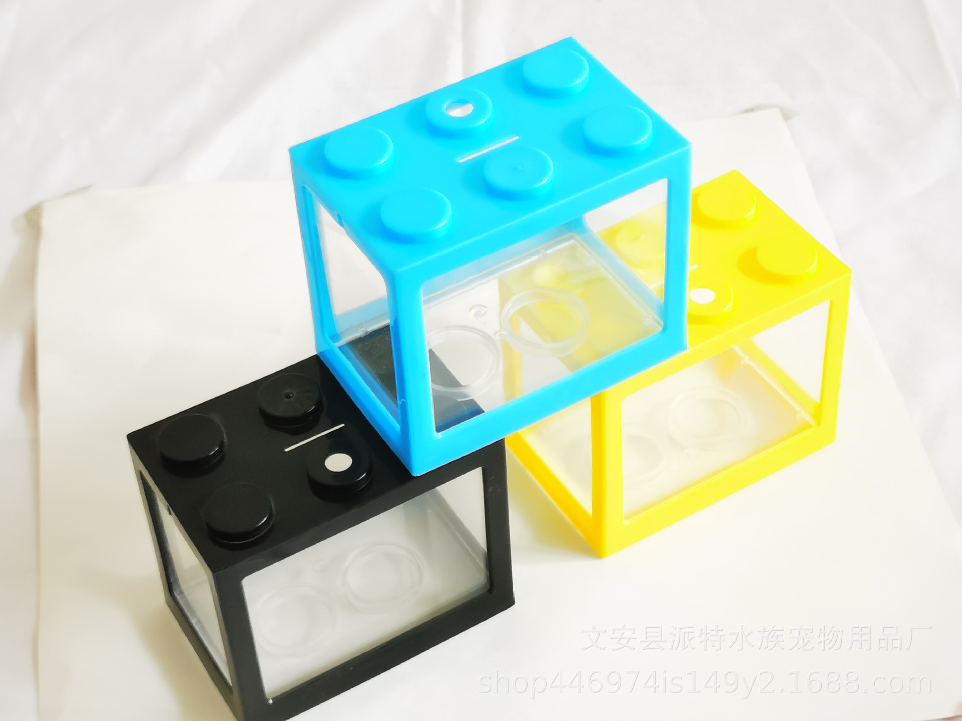 미니 빌딩 블록 투명 물고기 탱크 타이 양동이 물고기 탱크 작은 데스크탑 거실 가정용 거북 금붕어 열대 물고기 탱크스토어 가기