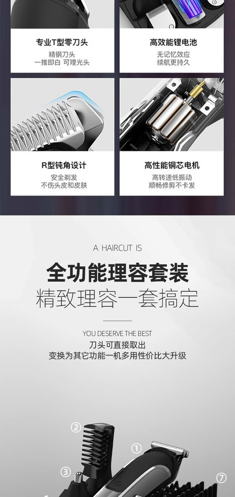 Junpai 8988 국경 간 전기 머리 깎기 전기 클리퍼 세트 미용실 조각 오일 헤드 면도 클리퍼 도매