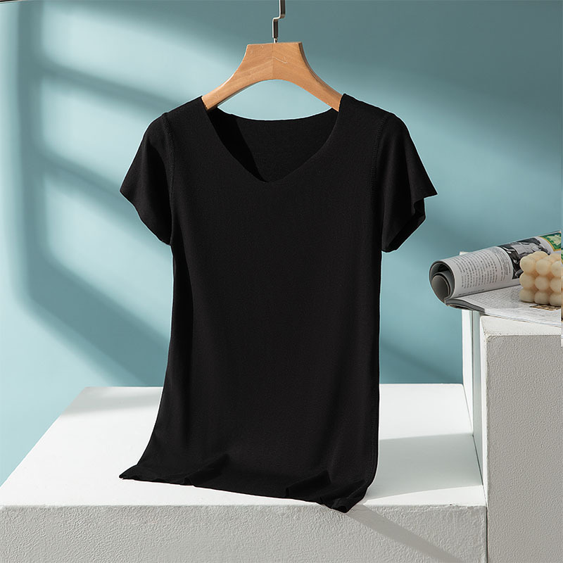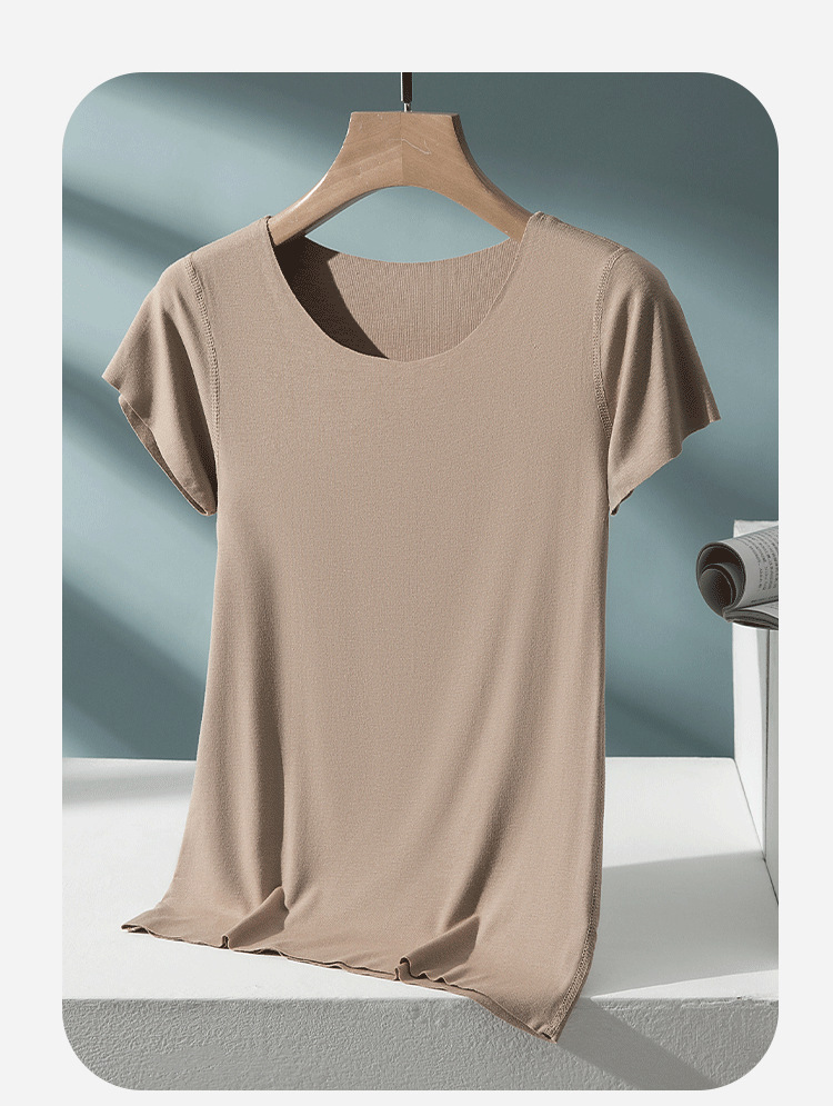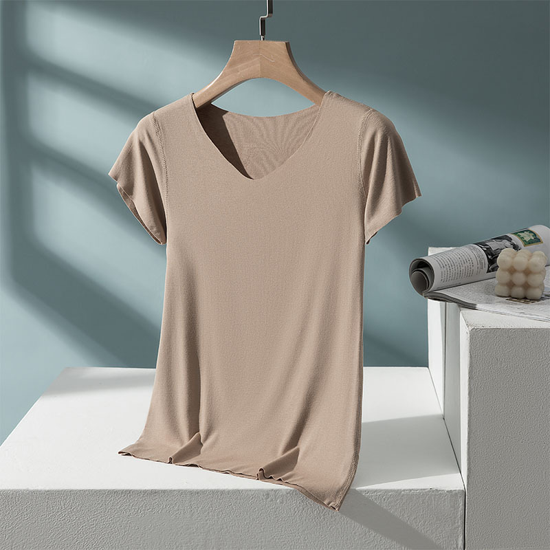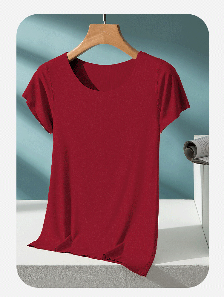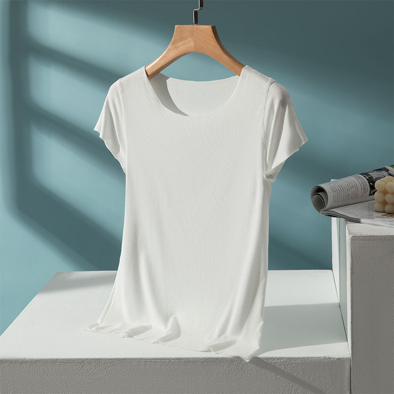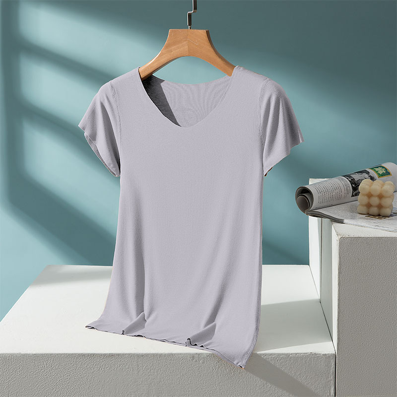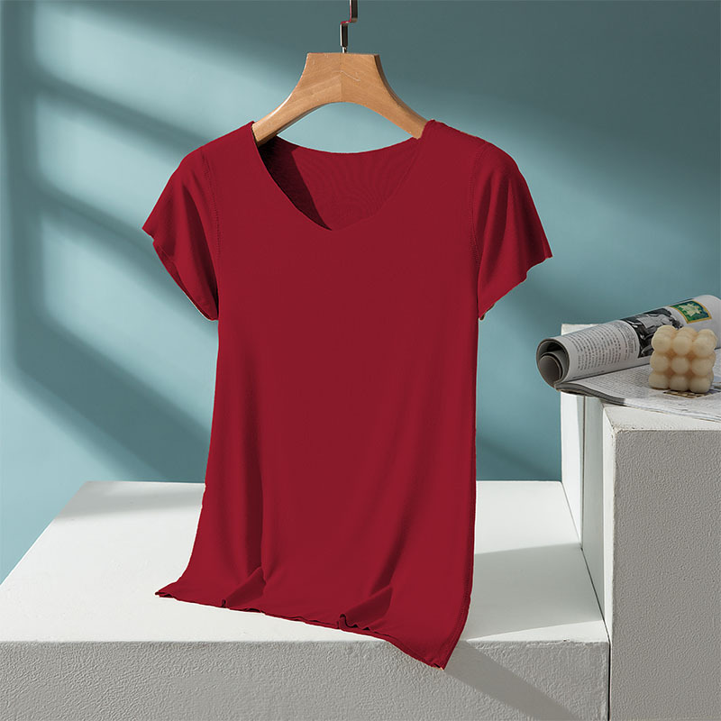 심리스 모달 반팔 여성용 여름 슬림핏 바닥 단색 라운드 브이넥 티셔츠 아우터 플러스 사이즈 모든 매치 탑