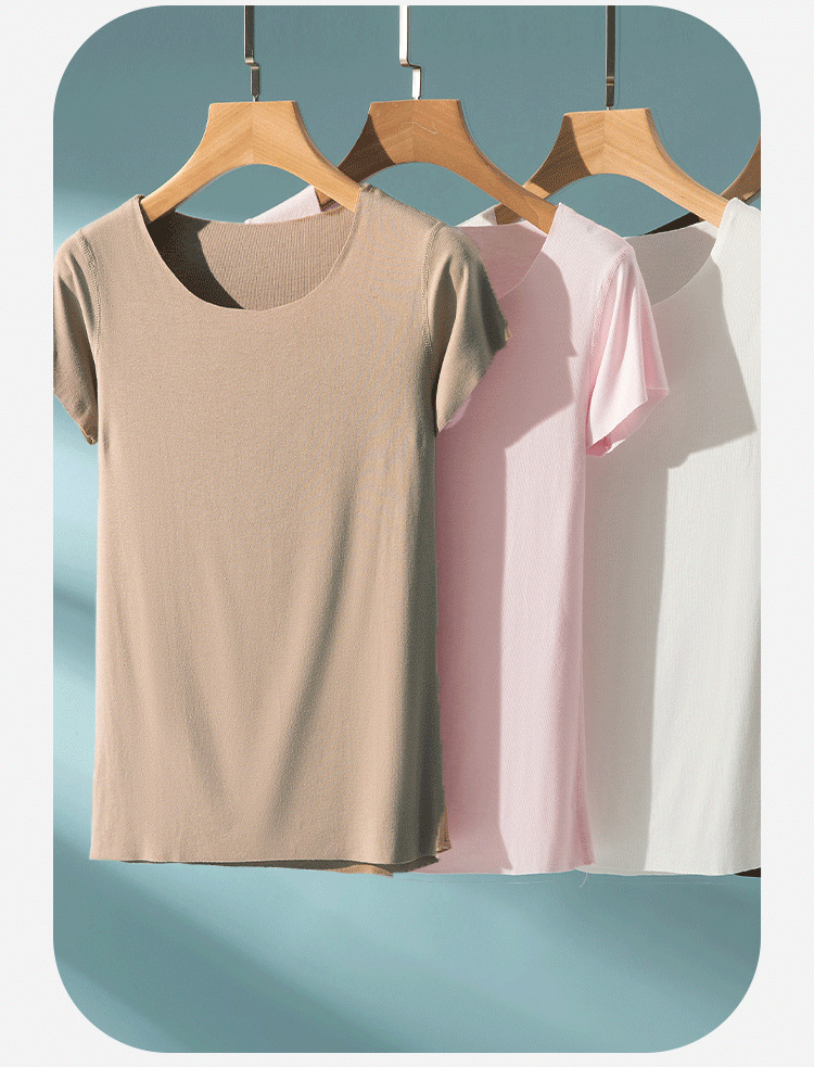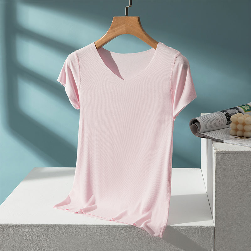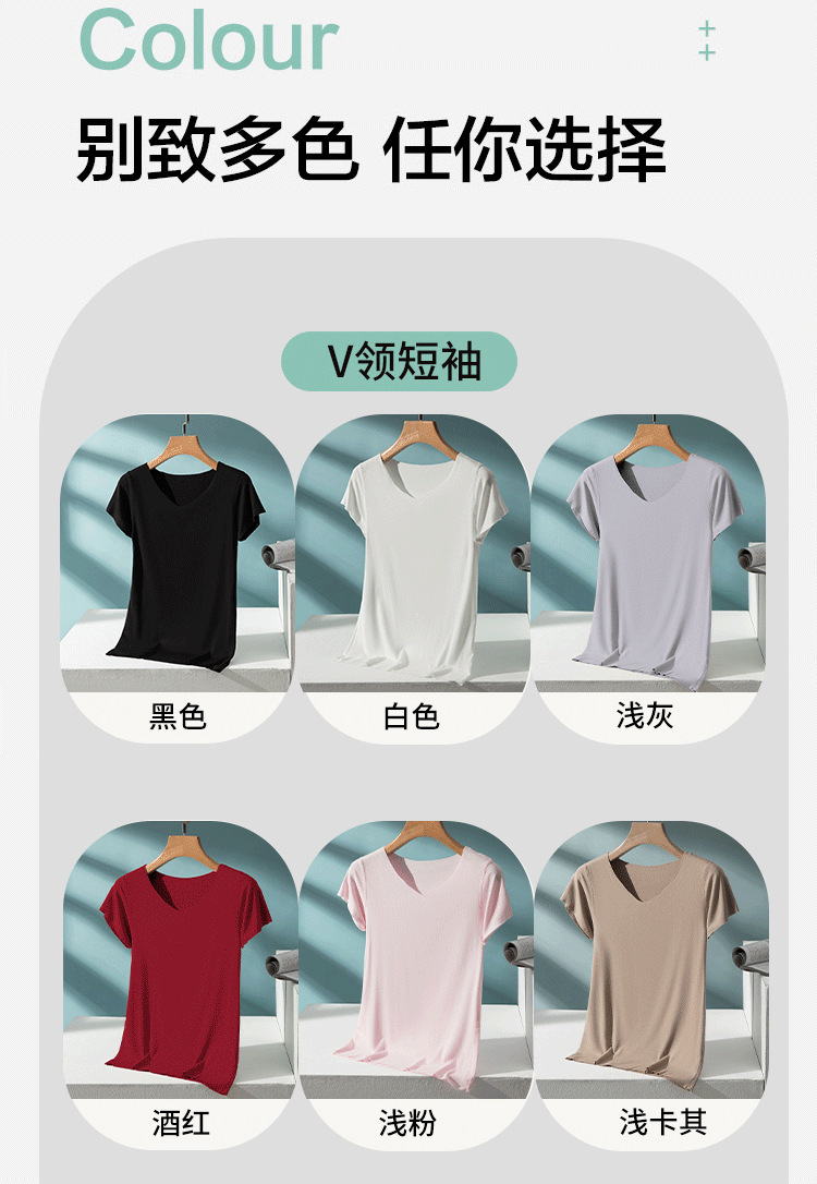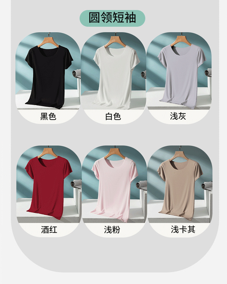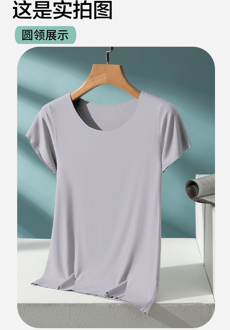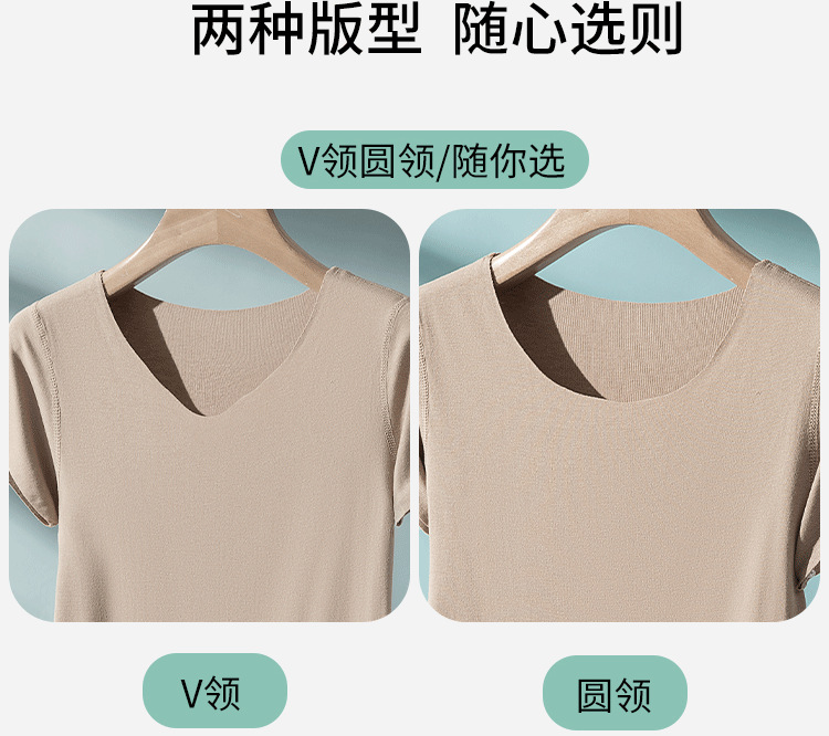 심리스 모달 반팔 여성용 여름 슬림핏 바닥 단색 라운드 브이넥 티셔츠 아우터 플러스 사이즈 모든 매치 탑스토어 가기