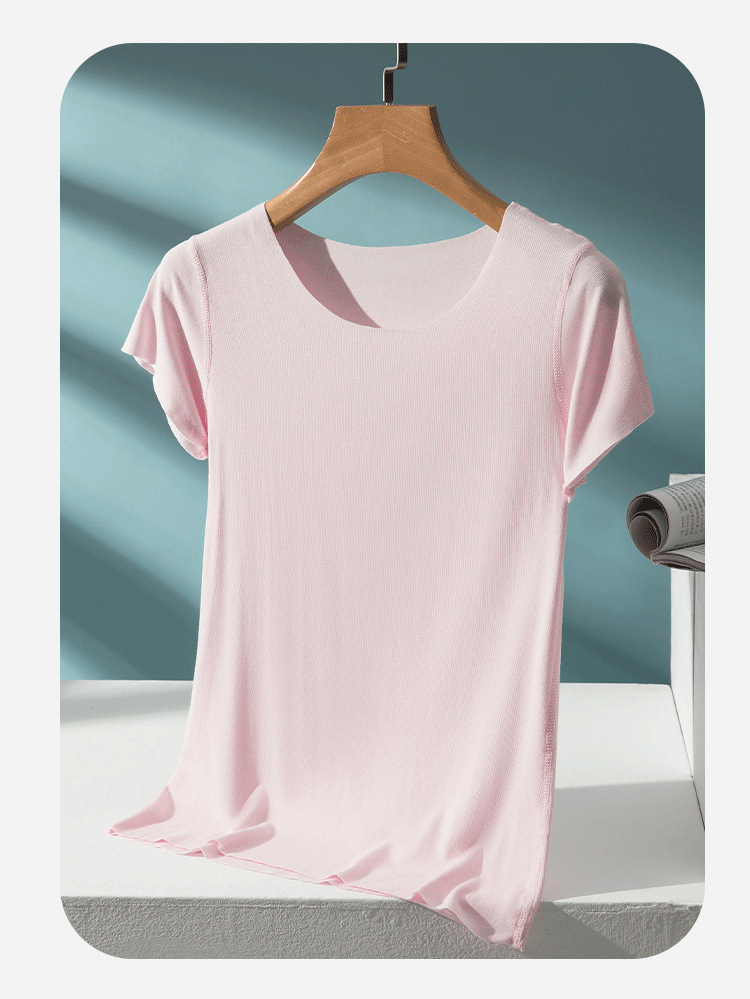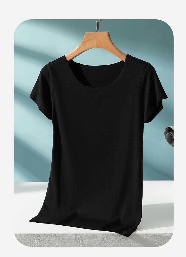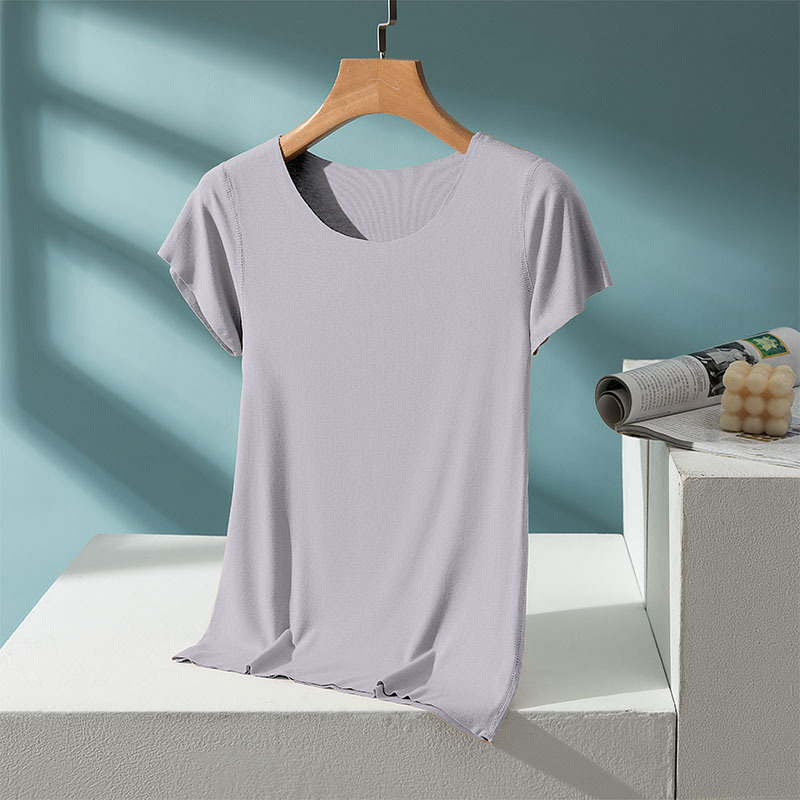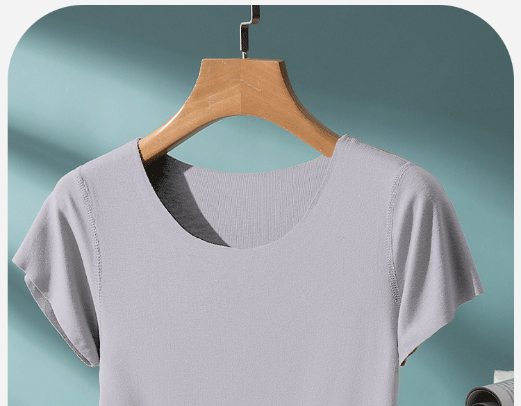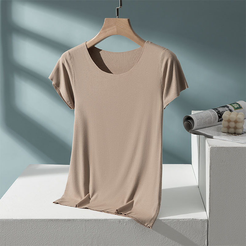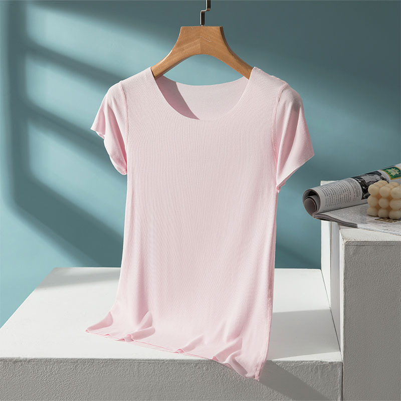 심리스 모달 반팔 여성용 여름 슬림핏 바닥 단색 라운드 브이넥 티셔츠 아우터 플러스 사이즈 모든 매치 탑스토어 가기