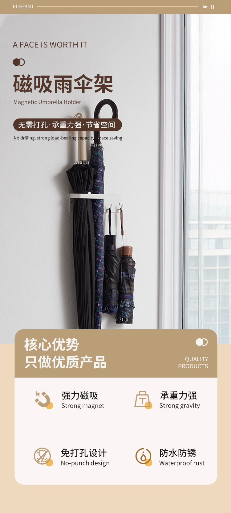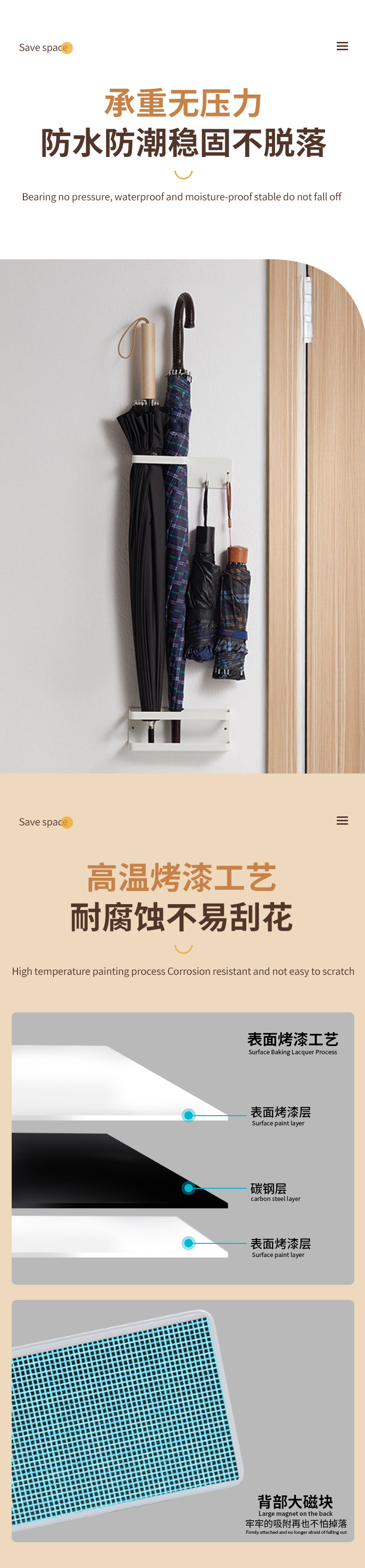 국경 간 간단한 펀치없는 자기 우산 랙 다기능 펀치없는 문 뒤 우산 랙 거실 우산 보관 랙스토어 가기