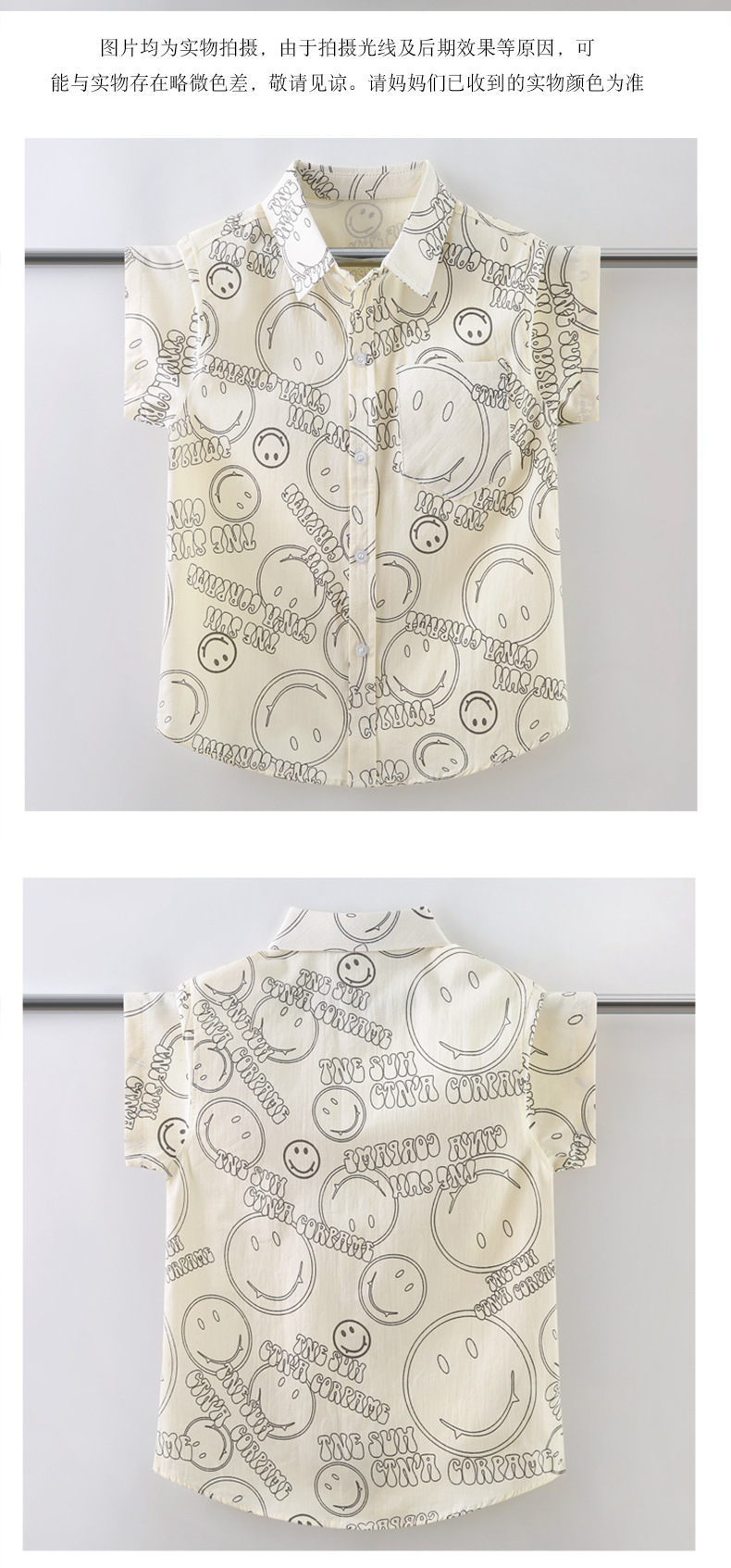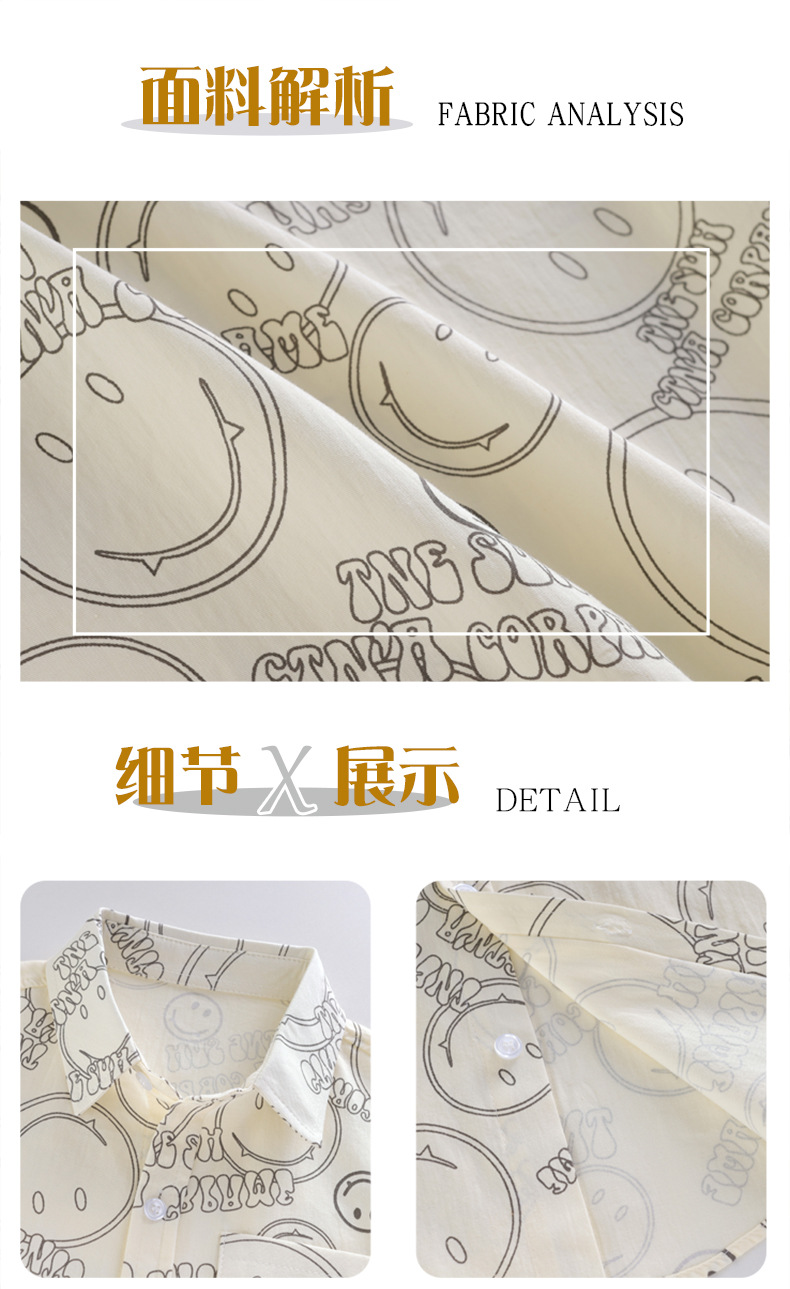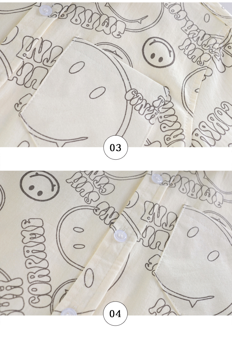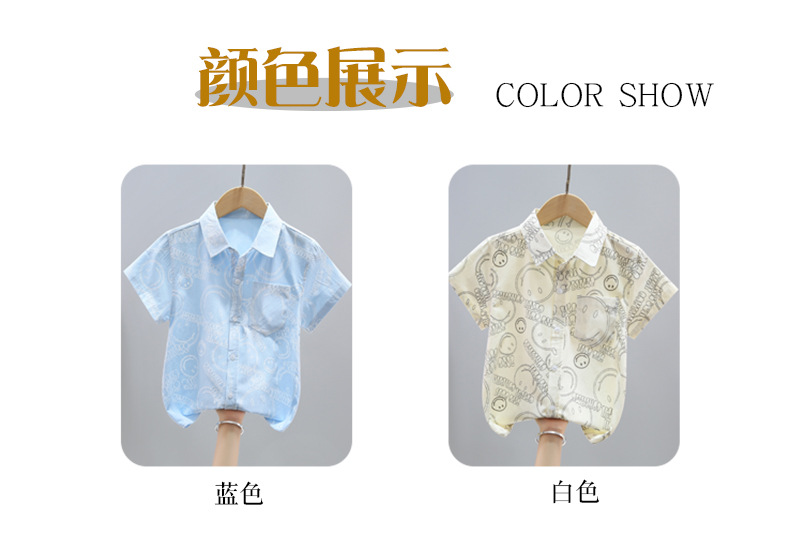 여름 새 소년 얇은 반팔 프린트 셔츠 대형 어린이 스마일 가디건 탑 코튼 캐주얼 보이스토어 가기