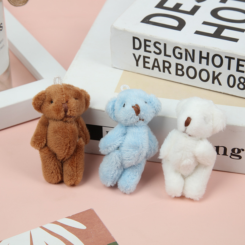 6cm 미니 멀티 컬러 플러시 장난감 관절 곰 인형 긴 머리 테디 베어 모자 목걸이 쥬얼리 액세서리 DIY스토어 가기