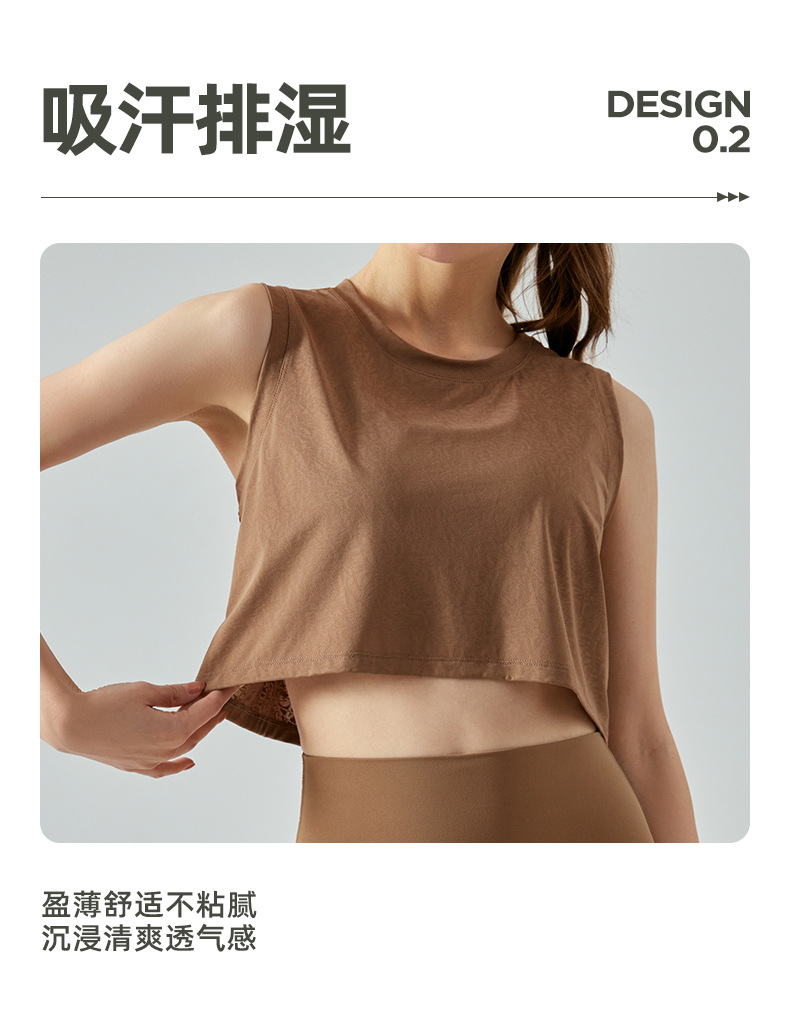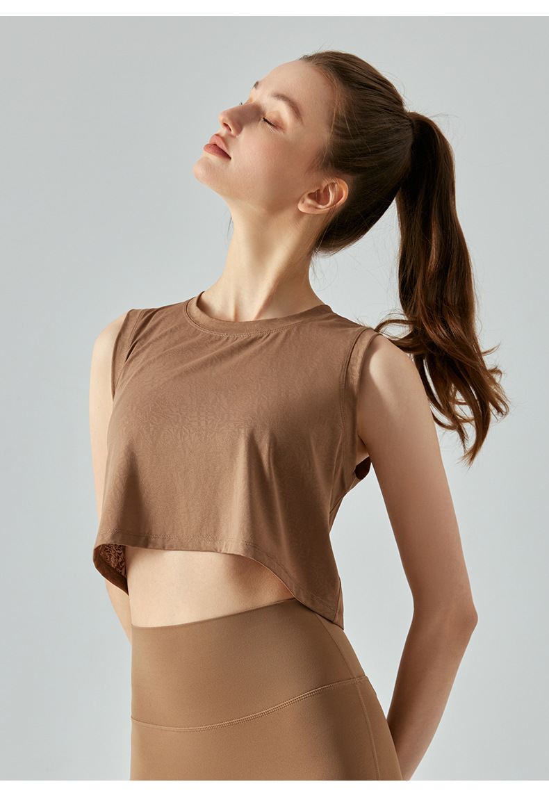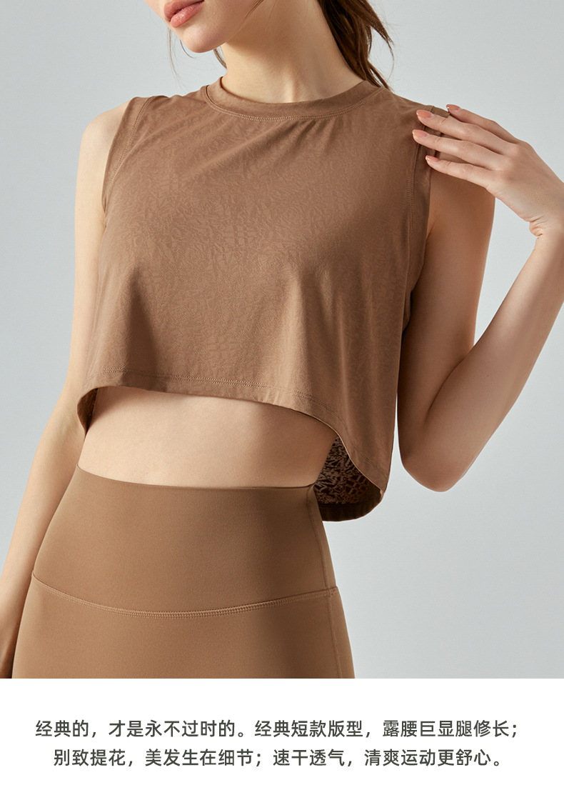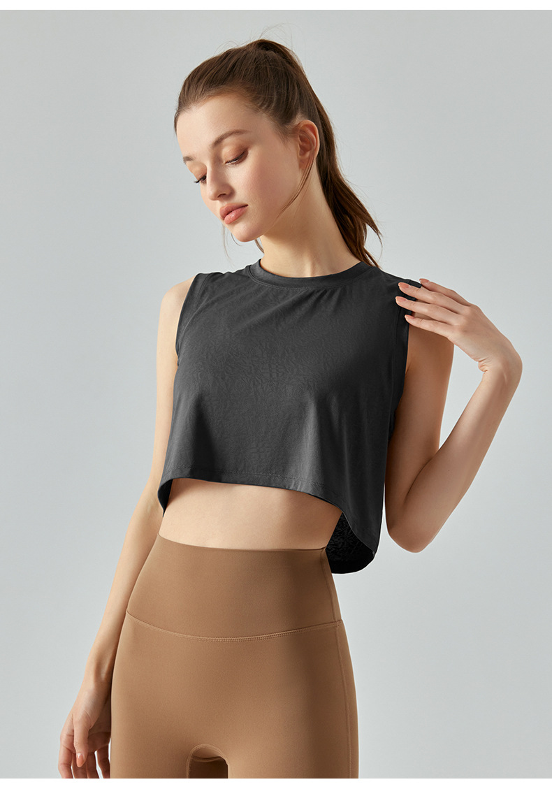 자카드 짧은 요가 조끼 중공 느슨한 다목적 민소매 티셔츠 여성 여름을위한 얇은 통기성 솔리드 컬러 피트니스 탑
