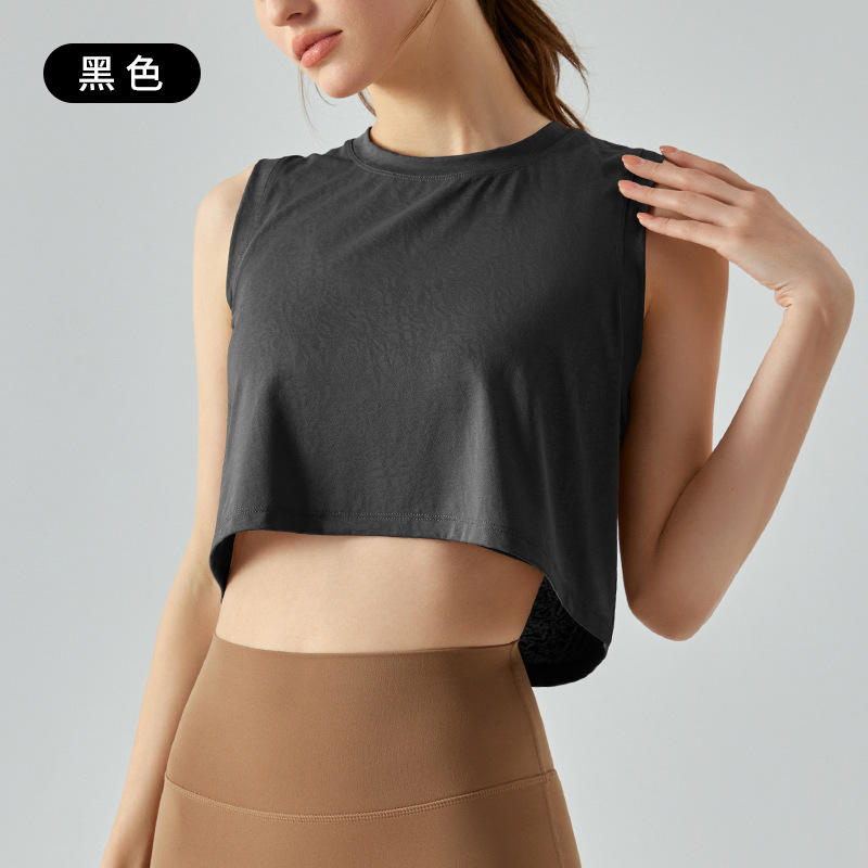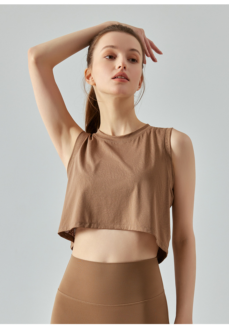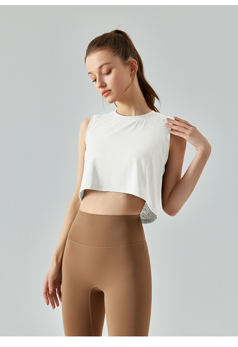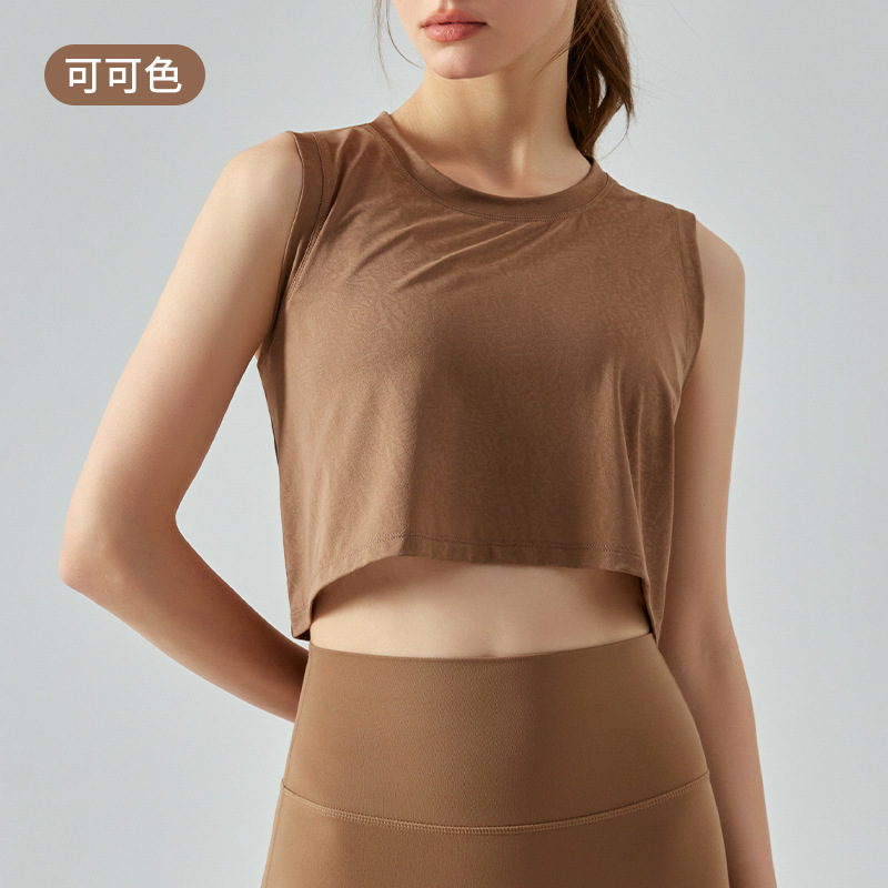 자카드 짧은 요가 조끼 중공 느슨한 다목적 민소매 티셔츠 여성 여름을위한 얇은 통기성 솔리드 컬러 피트니스 탑