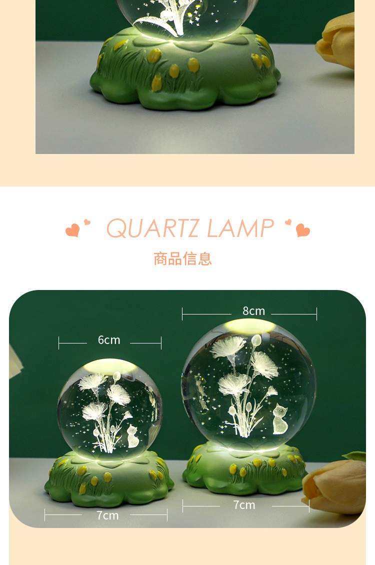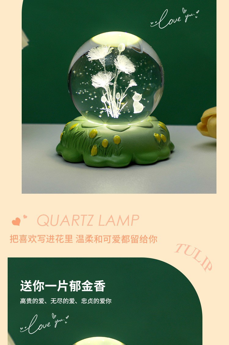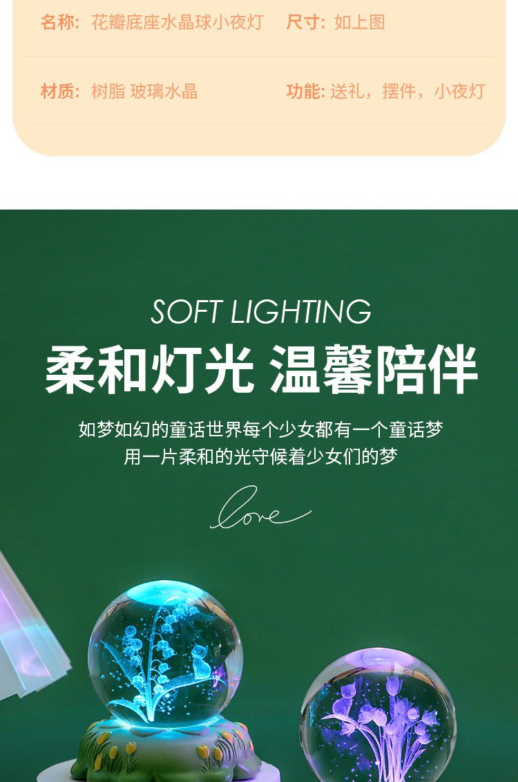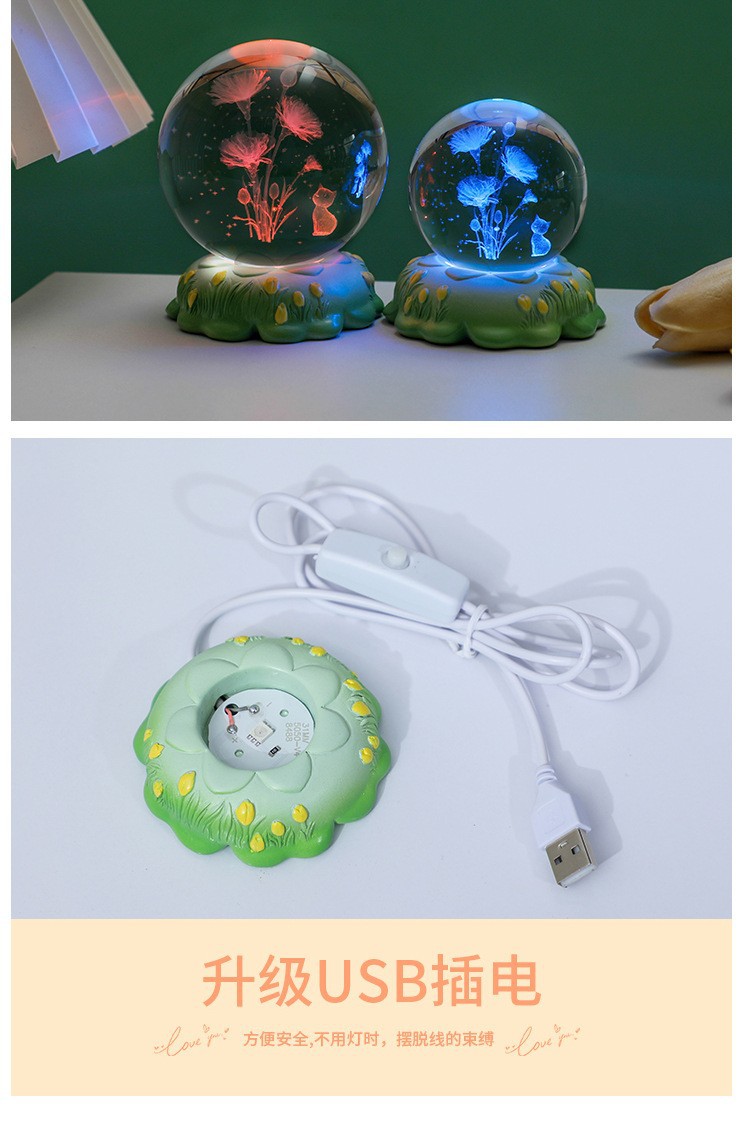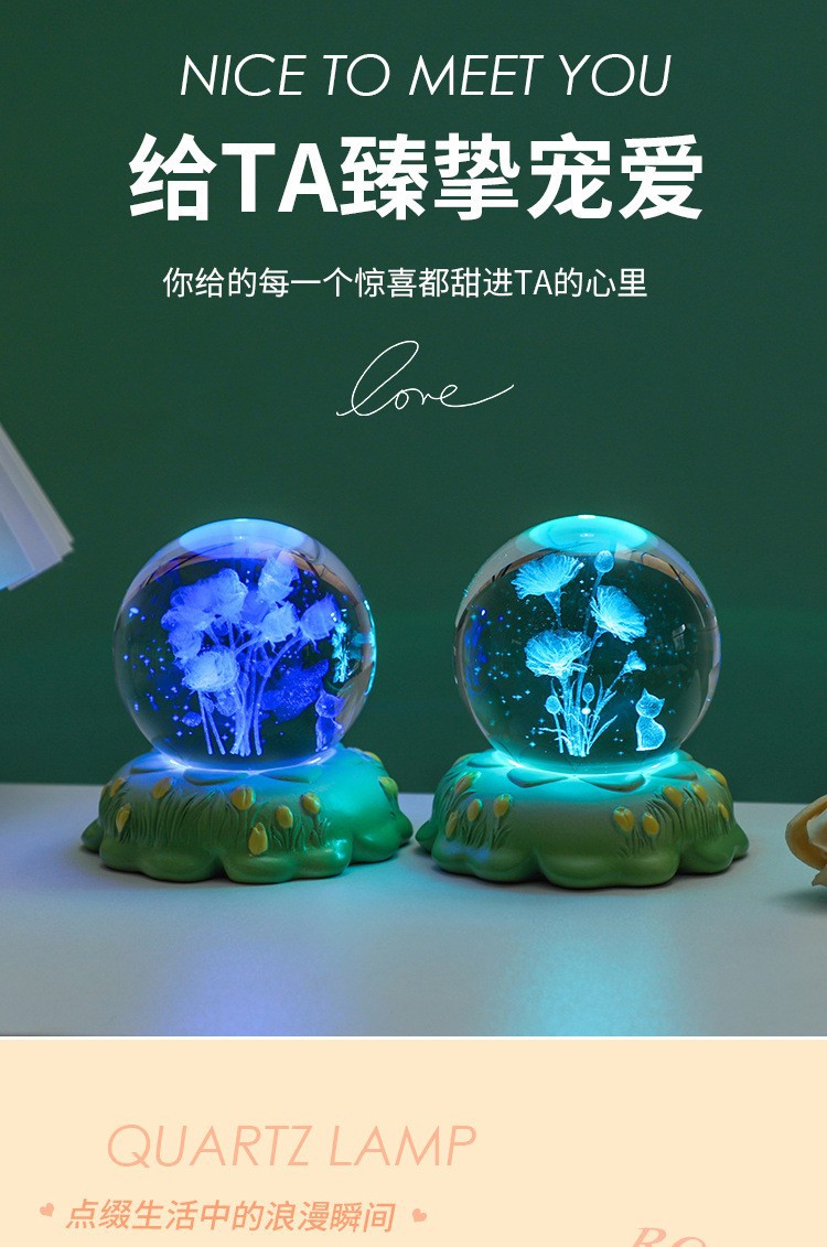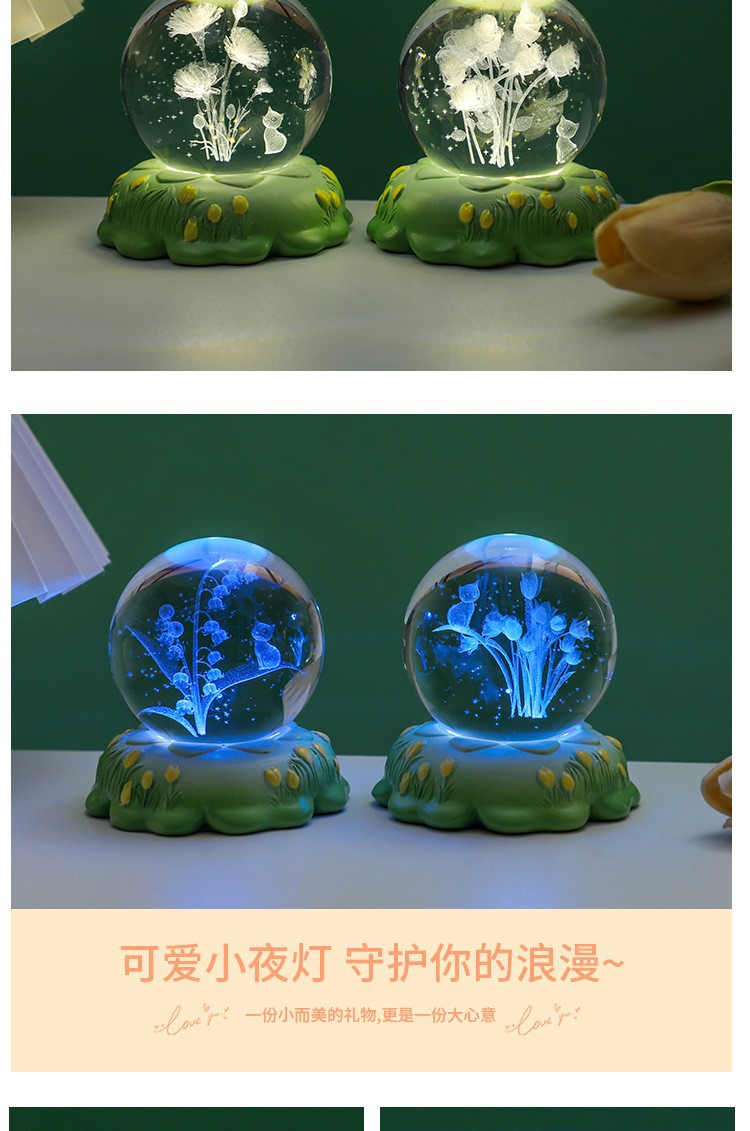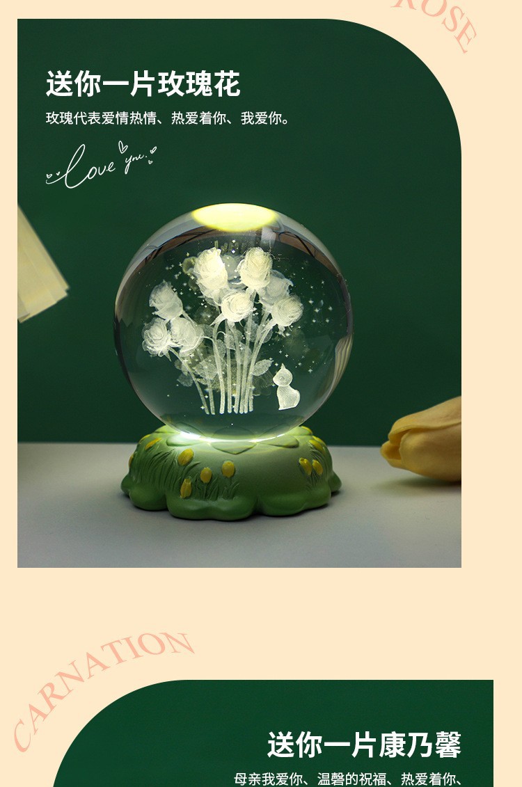 크로스보더 3D 내부 조각 장미 카네이션 크리스탈 볼 발광 장식품 야간 조명 창의적인 탁상 장식 휴일 선물스토어 가기