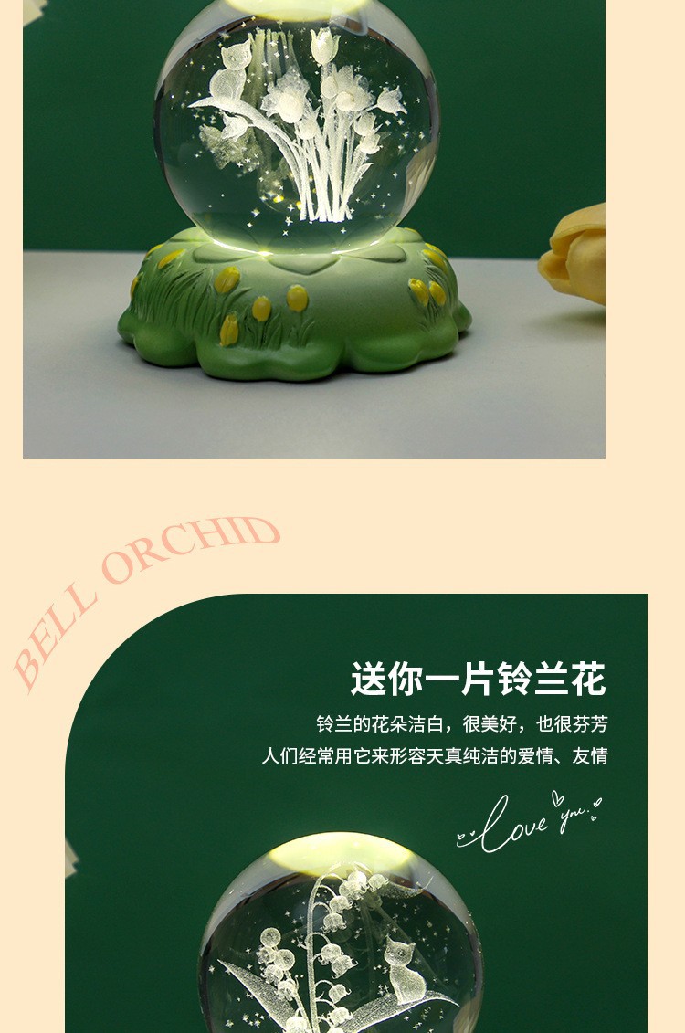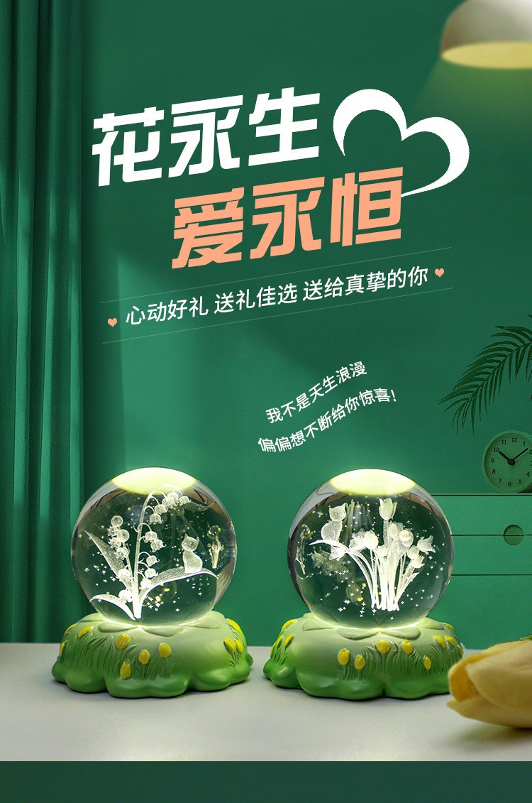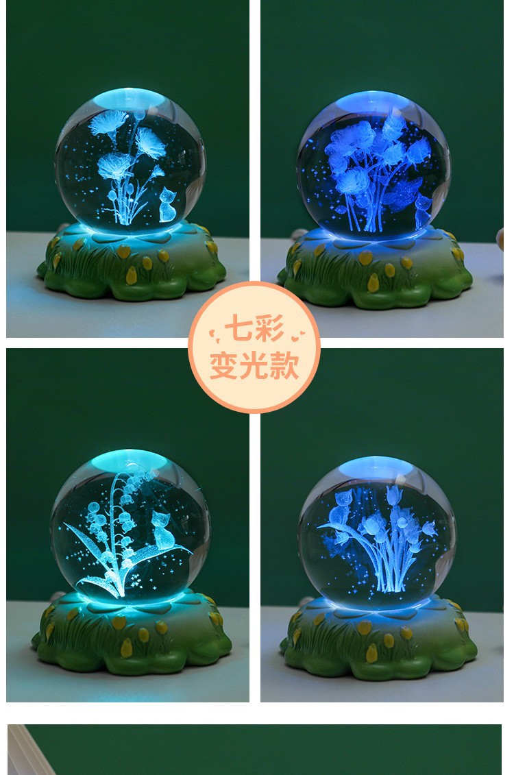 크로스보더 3D 내부 조각 장미 카네이션 크리스탈 볼 발광 장식품 야간 조명 창의적인 탁상 장식 휴일 선물