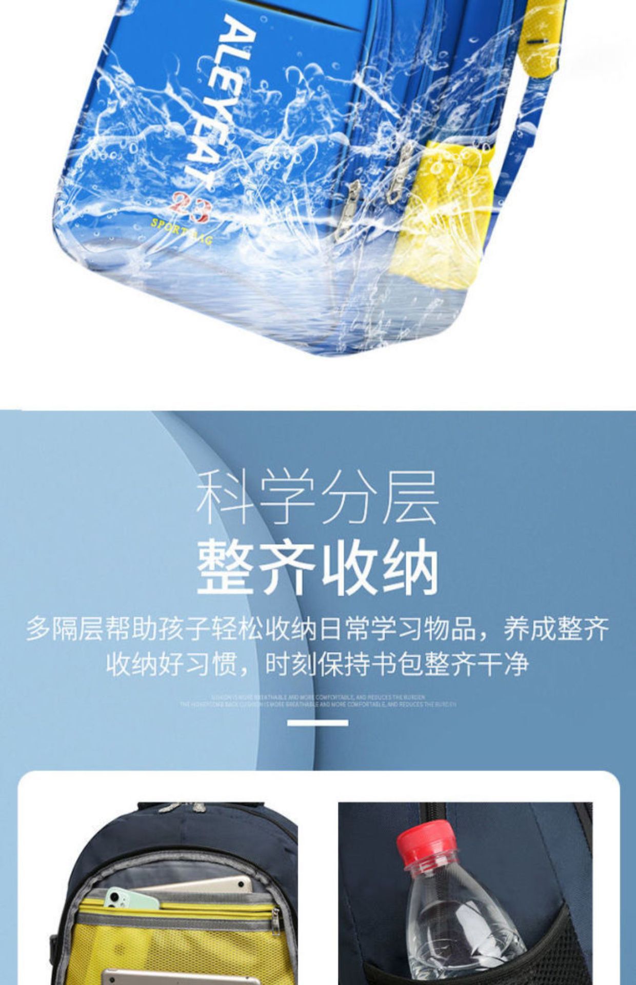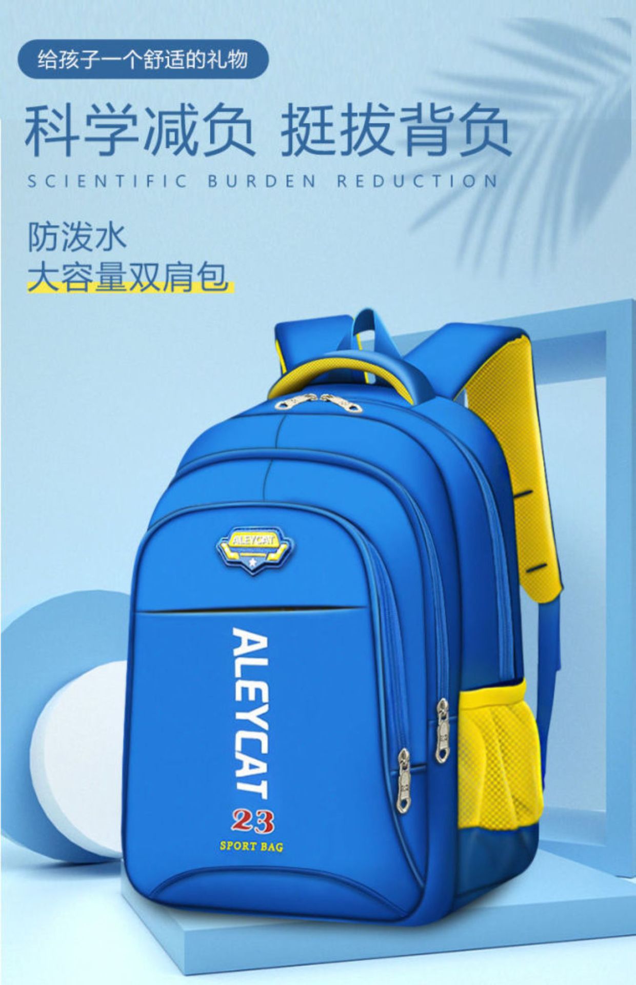 초등학생용 어린이 배낭 방수 무게 감소 내마모성 리지 보호 슬러지 방지 멀티 지퍼 소년과 소녀를 위한 편안한 책가방