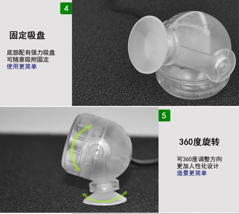 LED 수족관 스포트라이트, 7색 변색 LED 수족관 조명, 7색 그라데이션 수족관 조명, 야간 조명, USB 방수 다이빙 조명