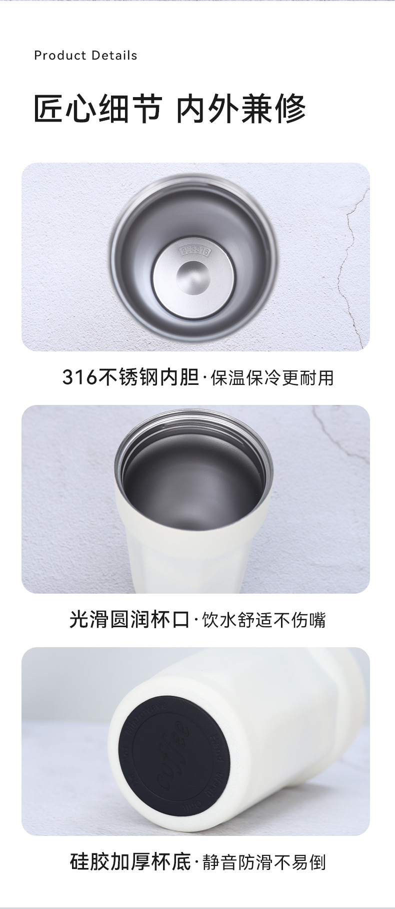 새로운 316 스테인레스 스틸 팔각형 콜라 커피 컵 휴대용 끈 컵 간단한 스타일 진공 보온병 컵스토어 가기