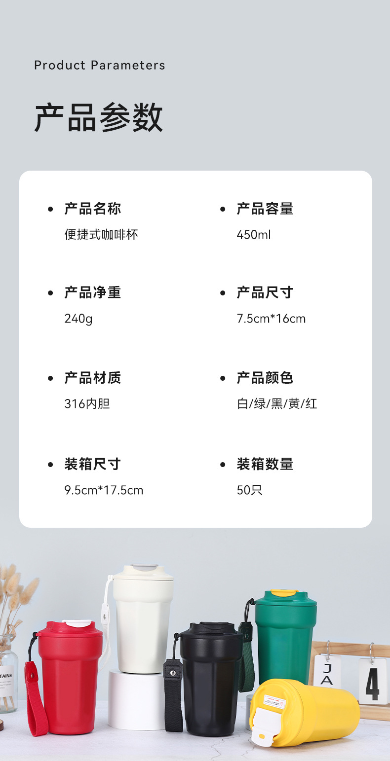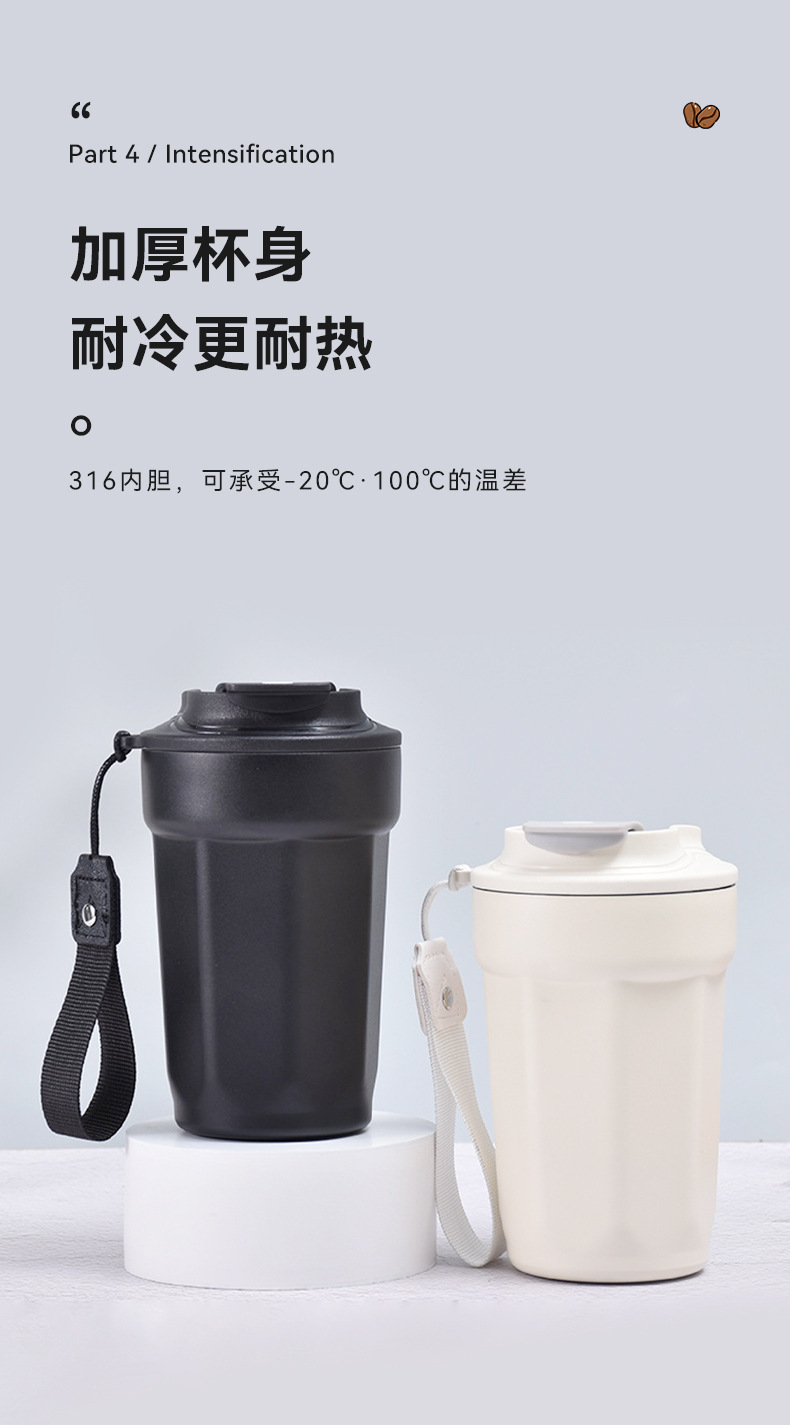 새로운 316 스테인레스 스틸 팔각형 콜라 커피 컵 휴대용 끈 컵 간단한 스타일 진공 보온병 컵
