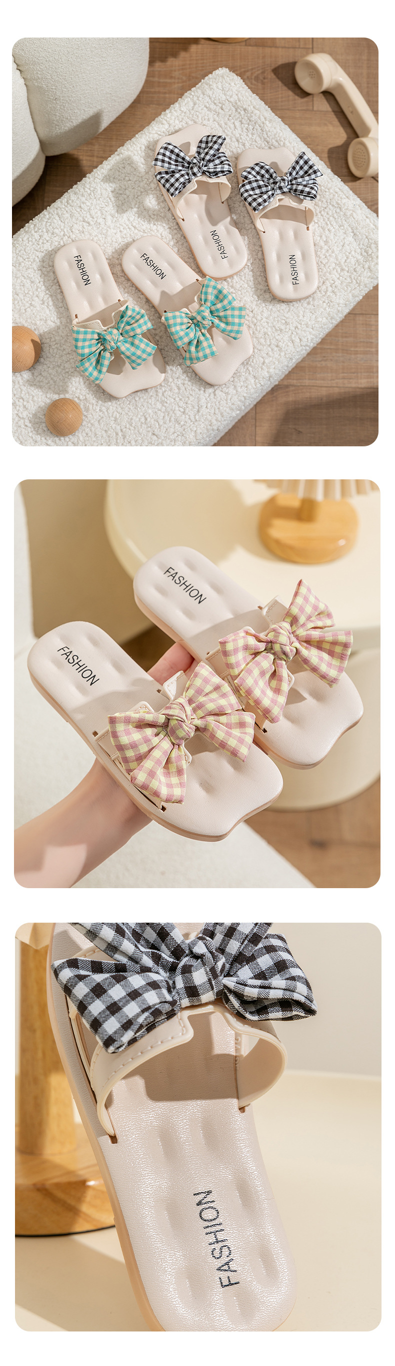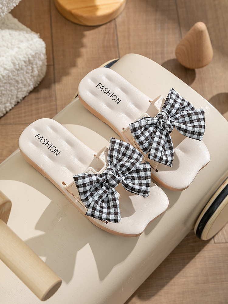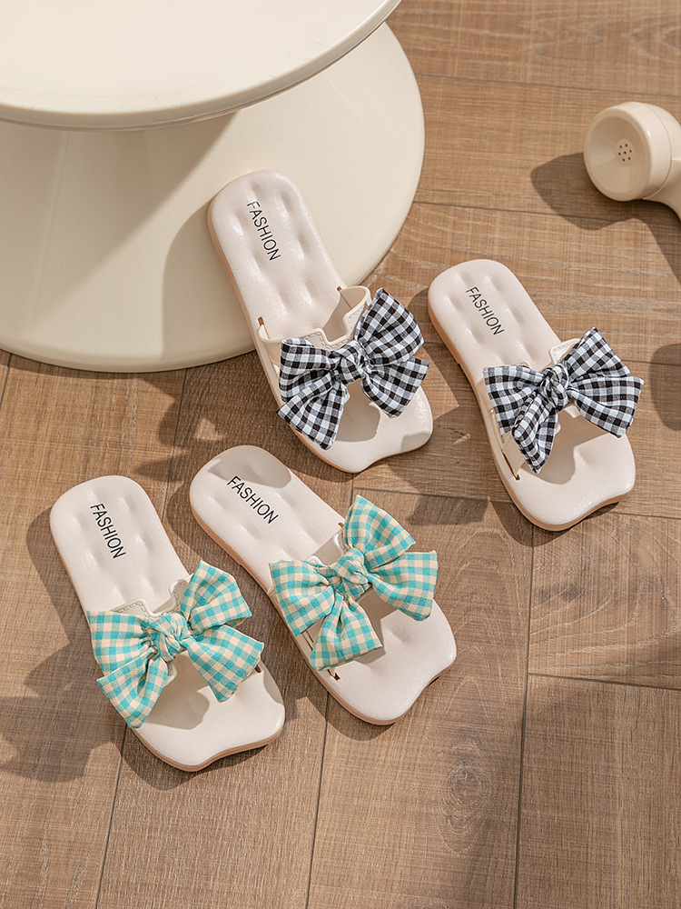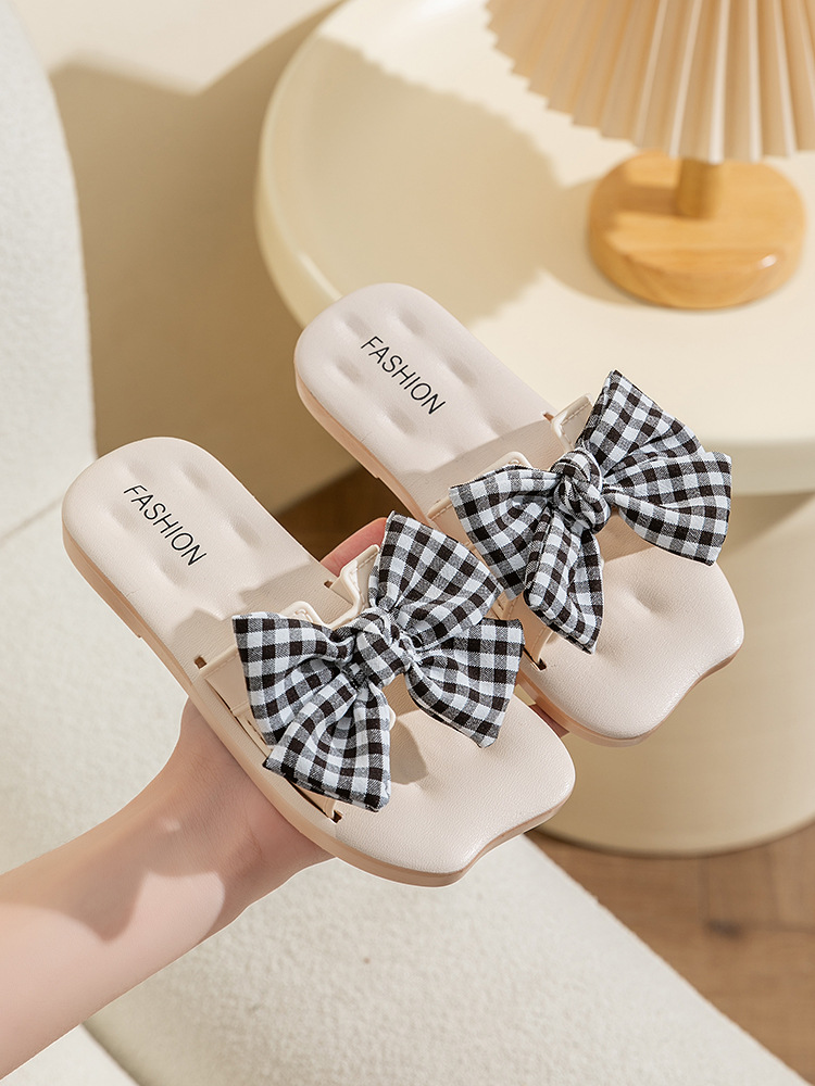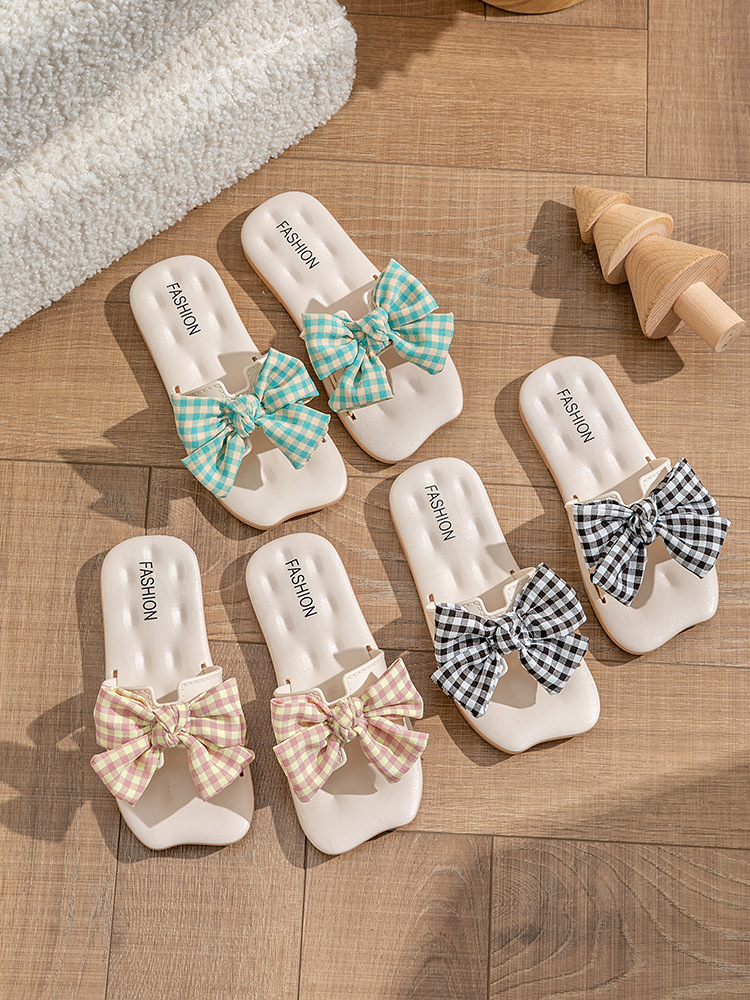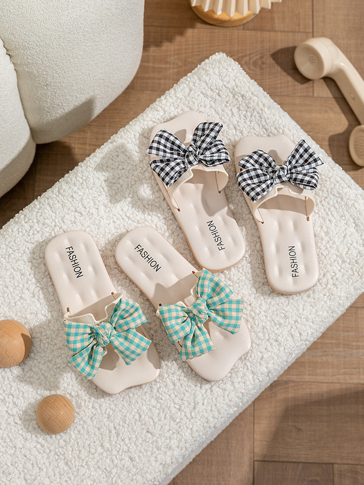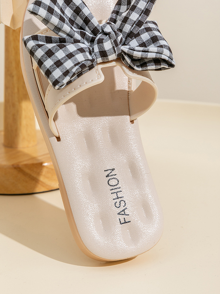 클래식 패션 쇼 편안한 격자 무늬 활 슬리퍼 2023 통기성 사무실 여성 샌들