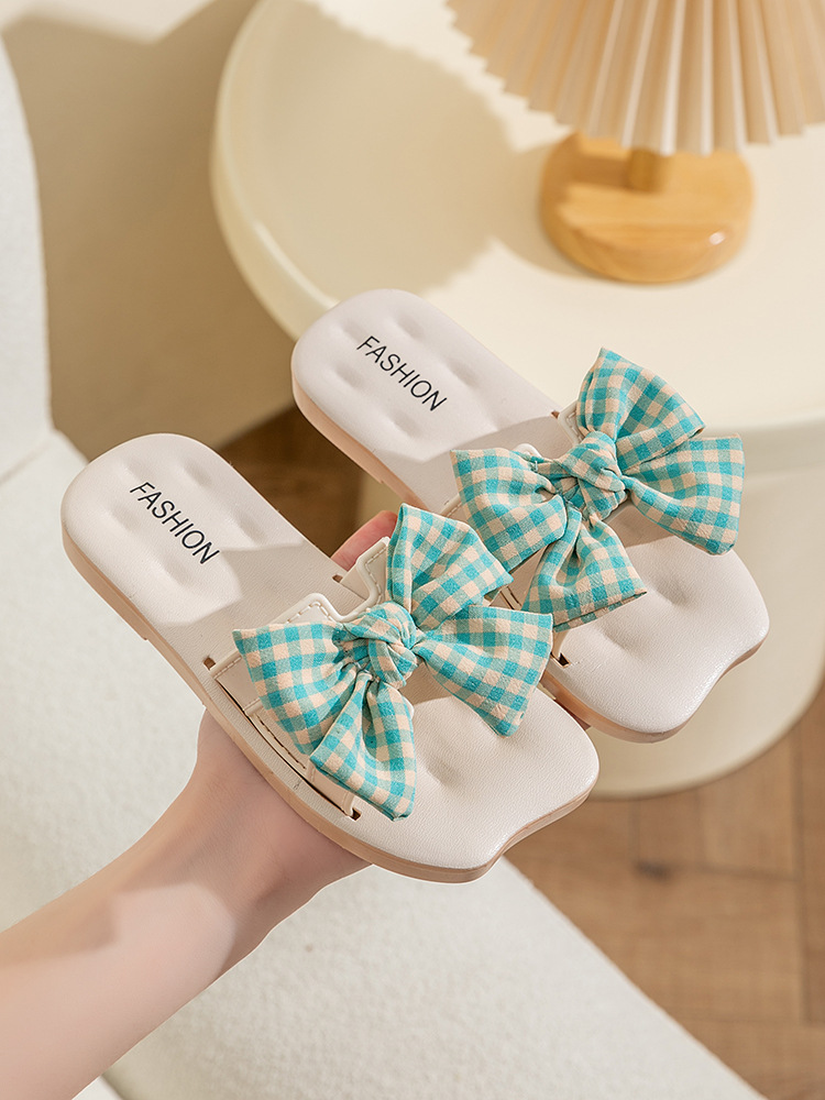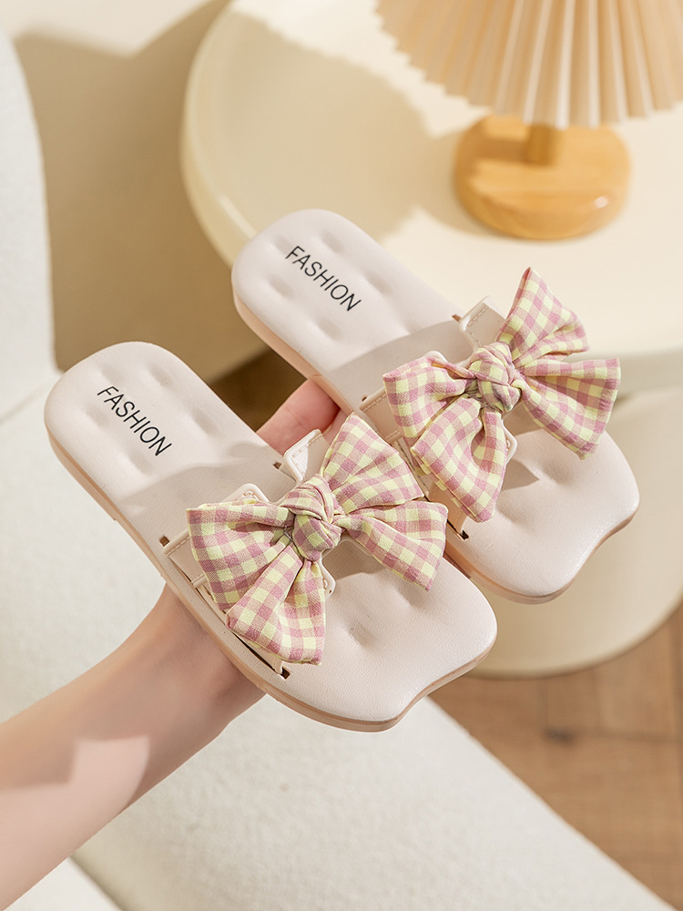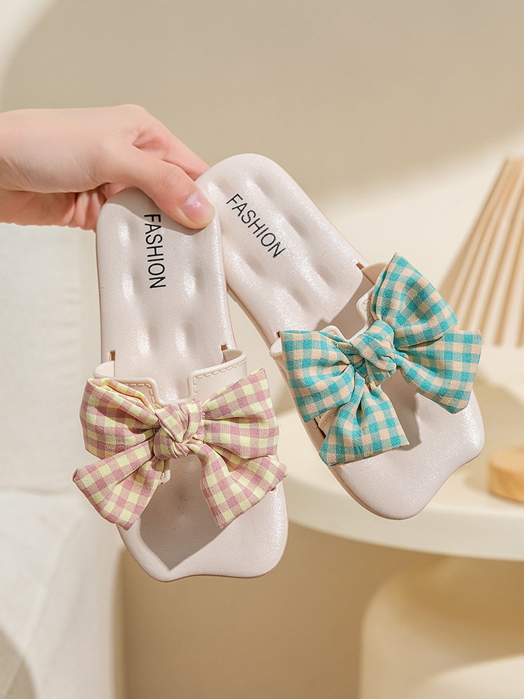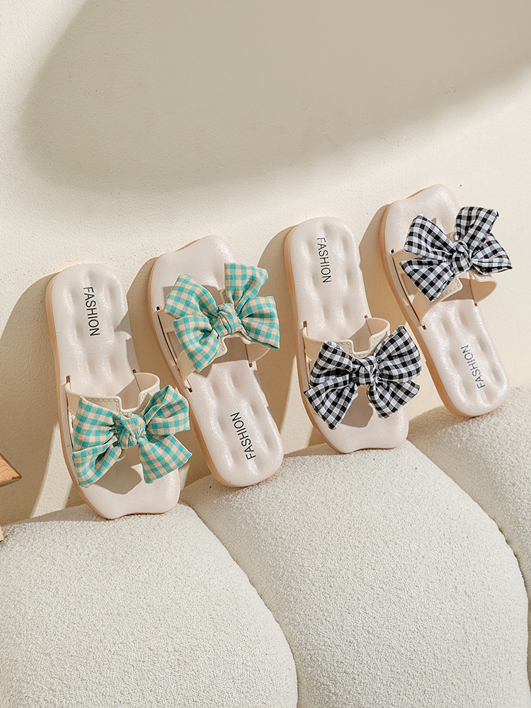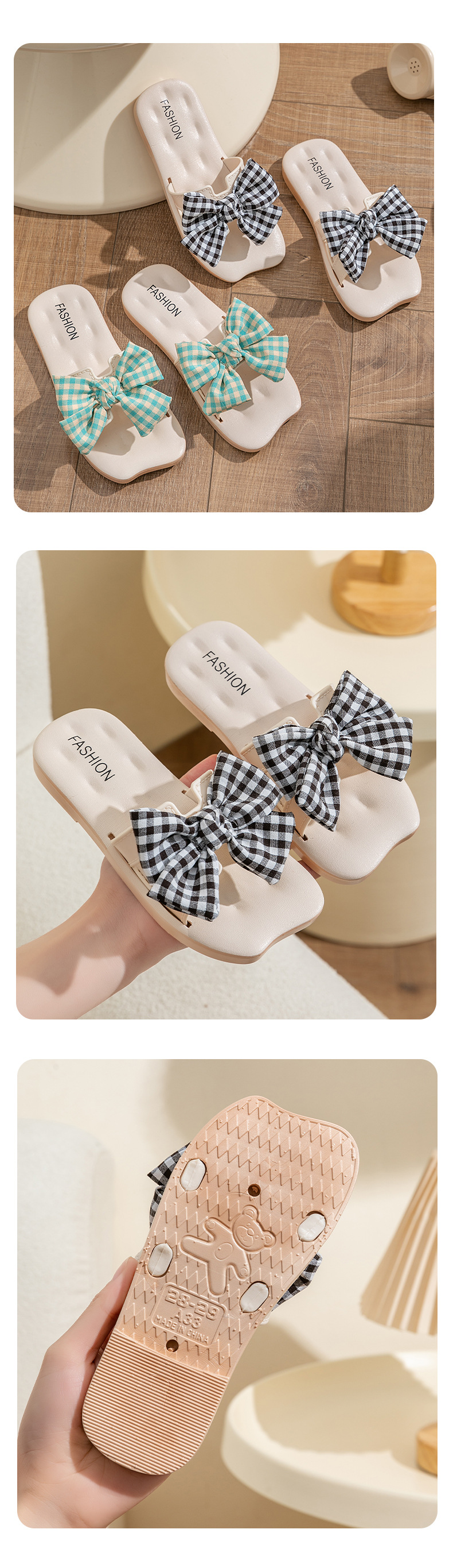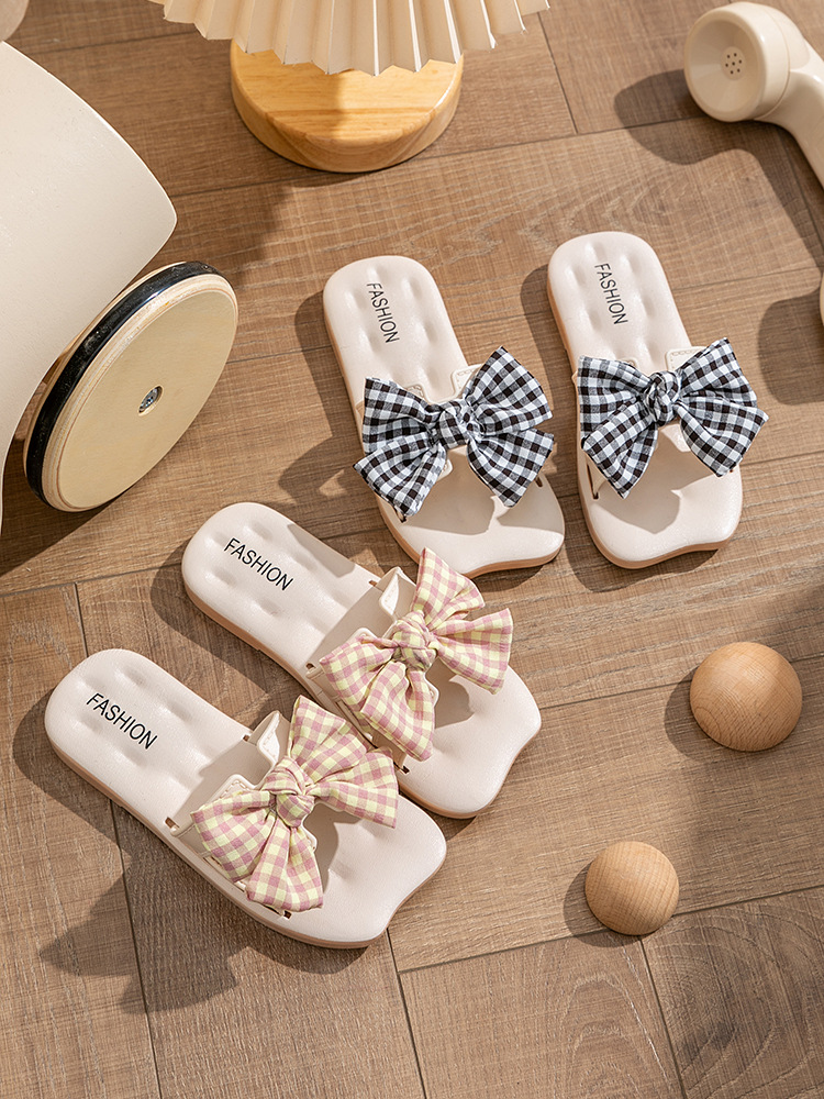 클래식 패션 쇼 편안한 격자 무늬 활 슬리퍼 2023 통기성 사무실 여성 샌들