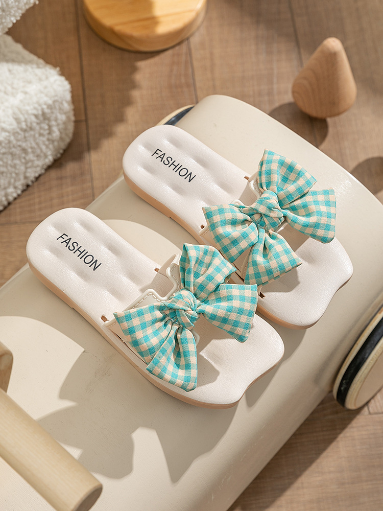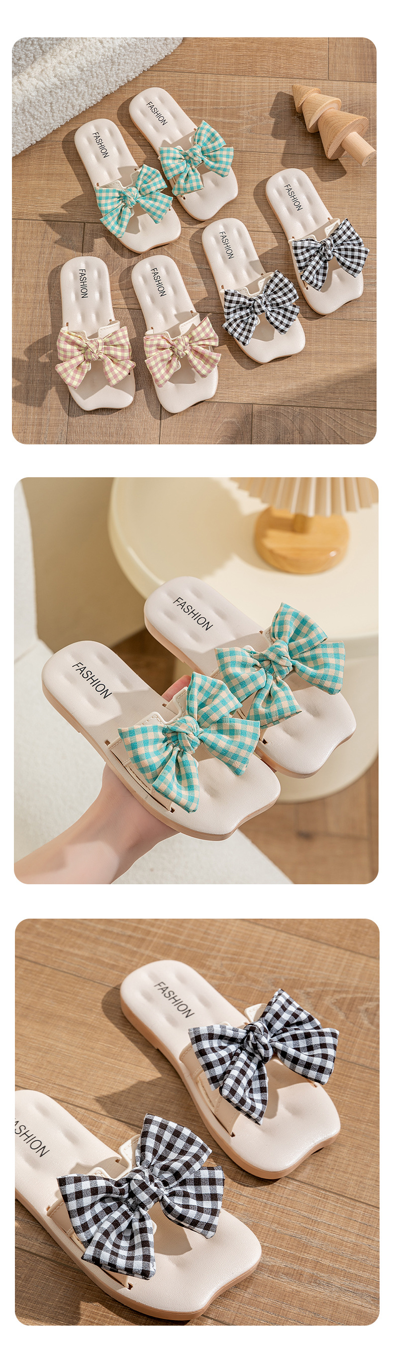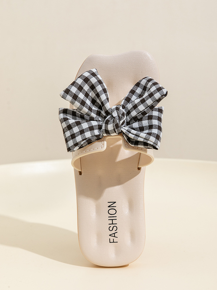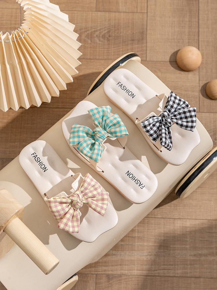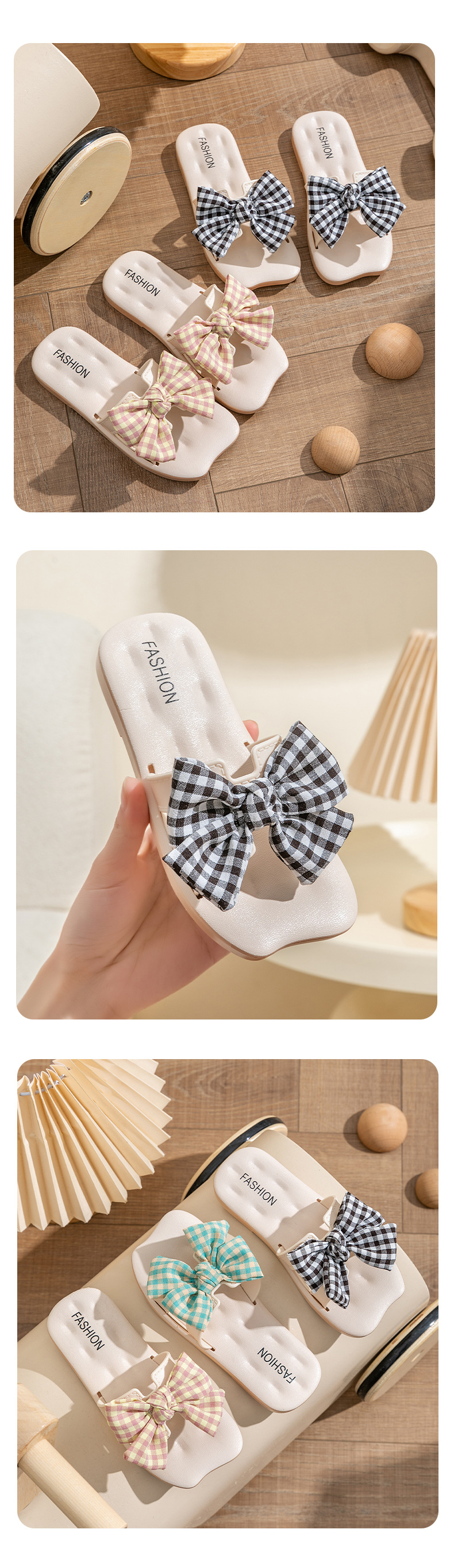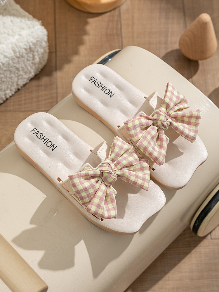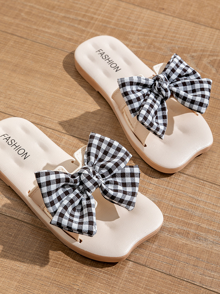 클래식 패션 쇼 편안한 격자 무늬 활 슬리퍼 2023 통기성 사무실 여성 샌들