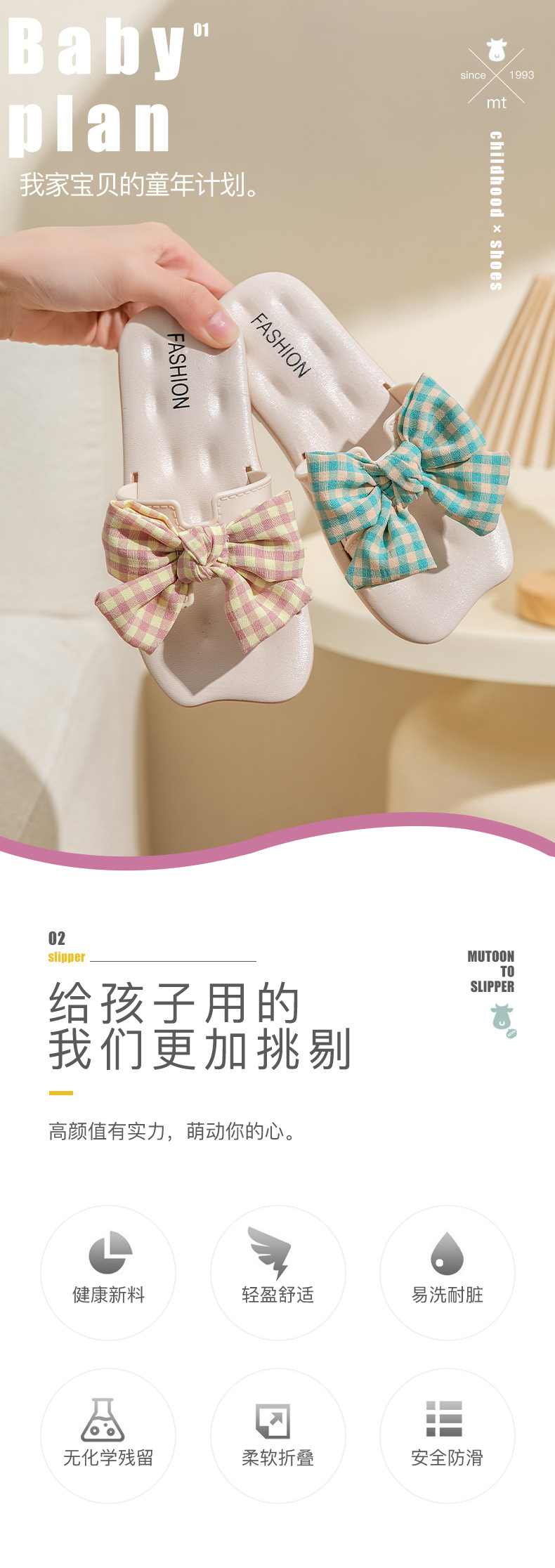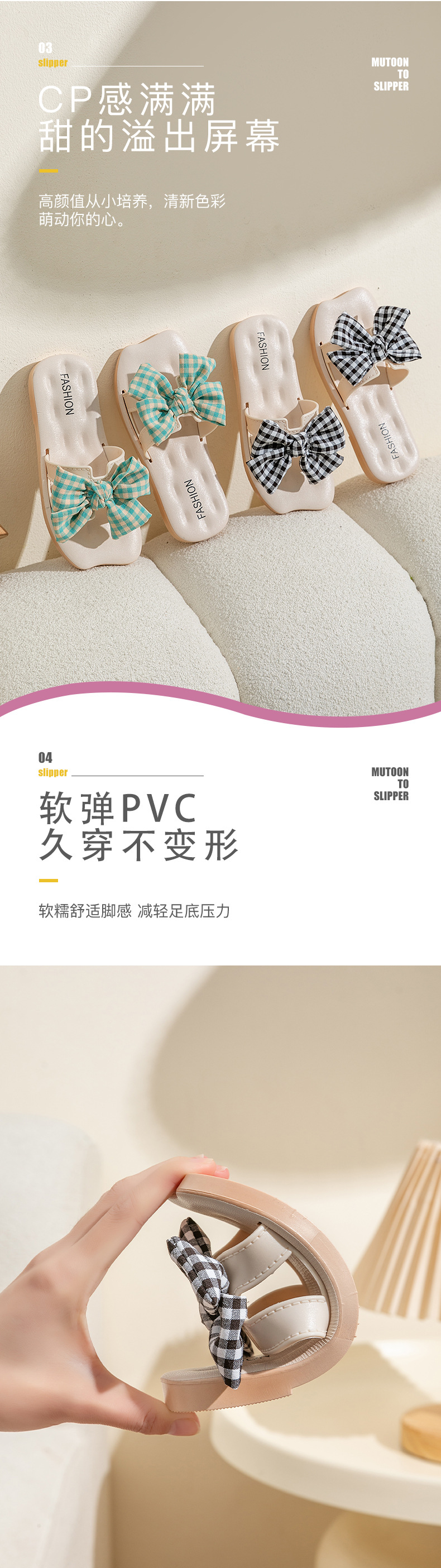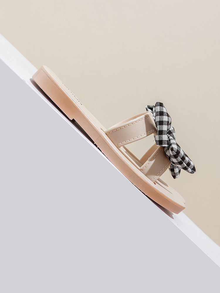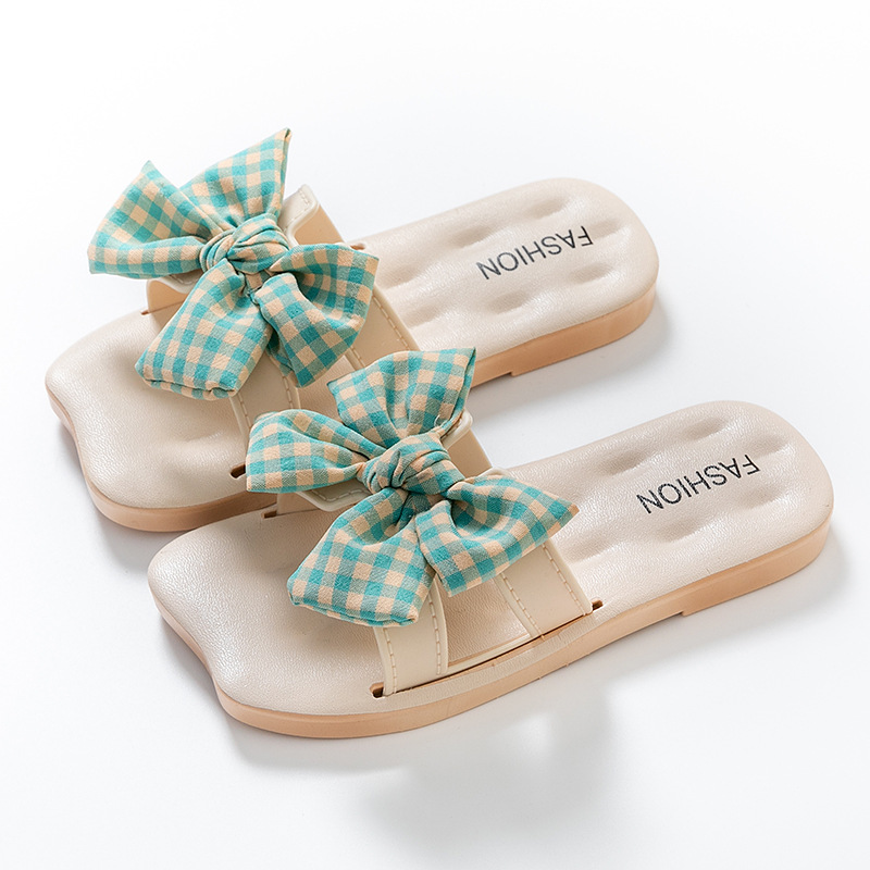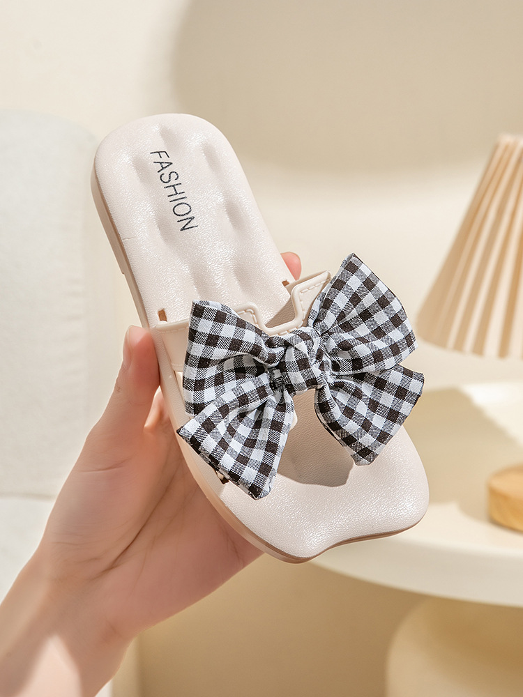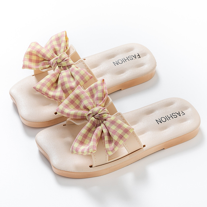 클래식 패션 쇼 편안한 격자 무늬 활 슬리퍼 2023 통기성 사무실 여성 샌들