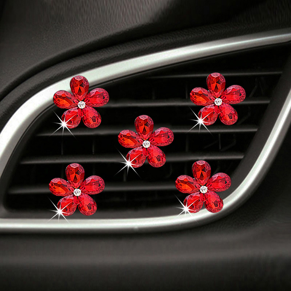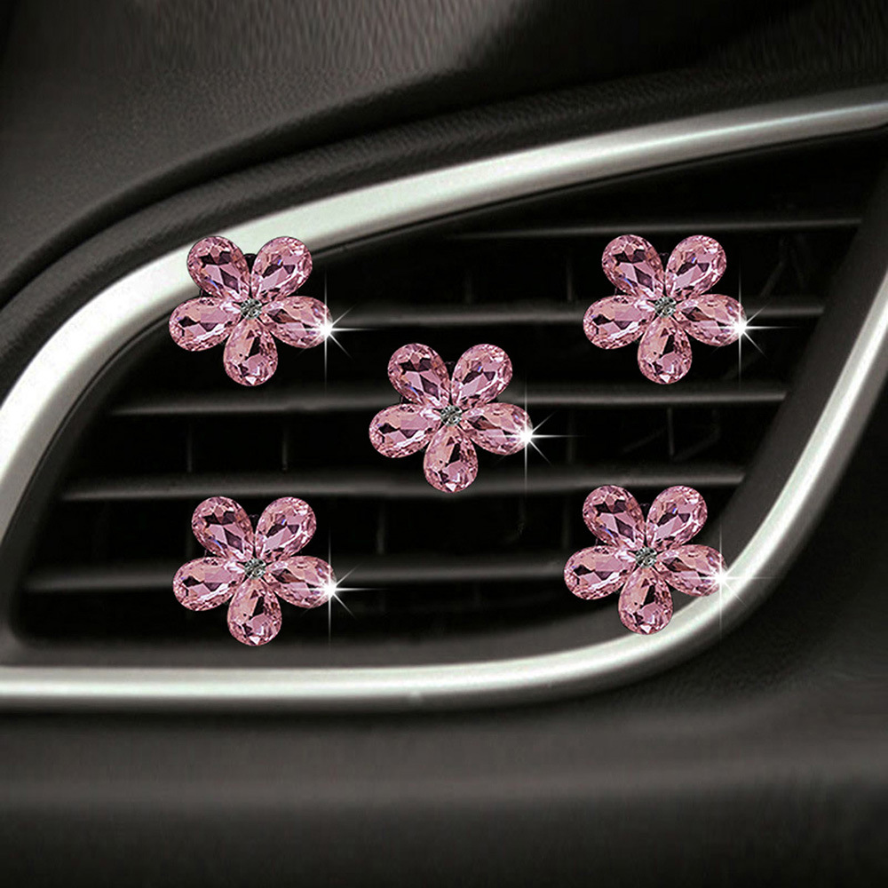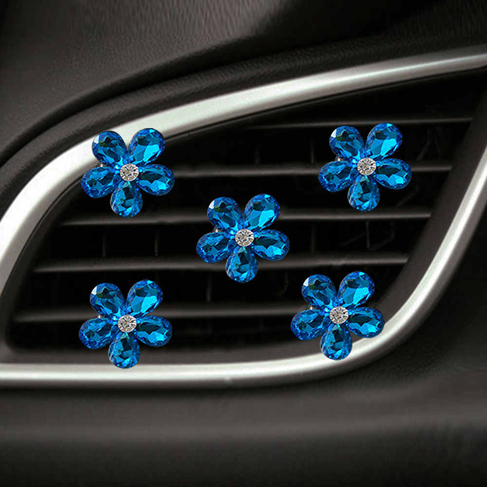 천연 반짝이는 크리스탈 보석 꽃 5종 세트 자동차 에어컨 통풍구 장식 클립 자동차 장식 클립 장식품