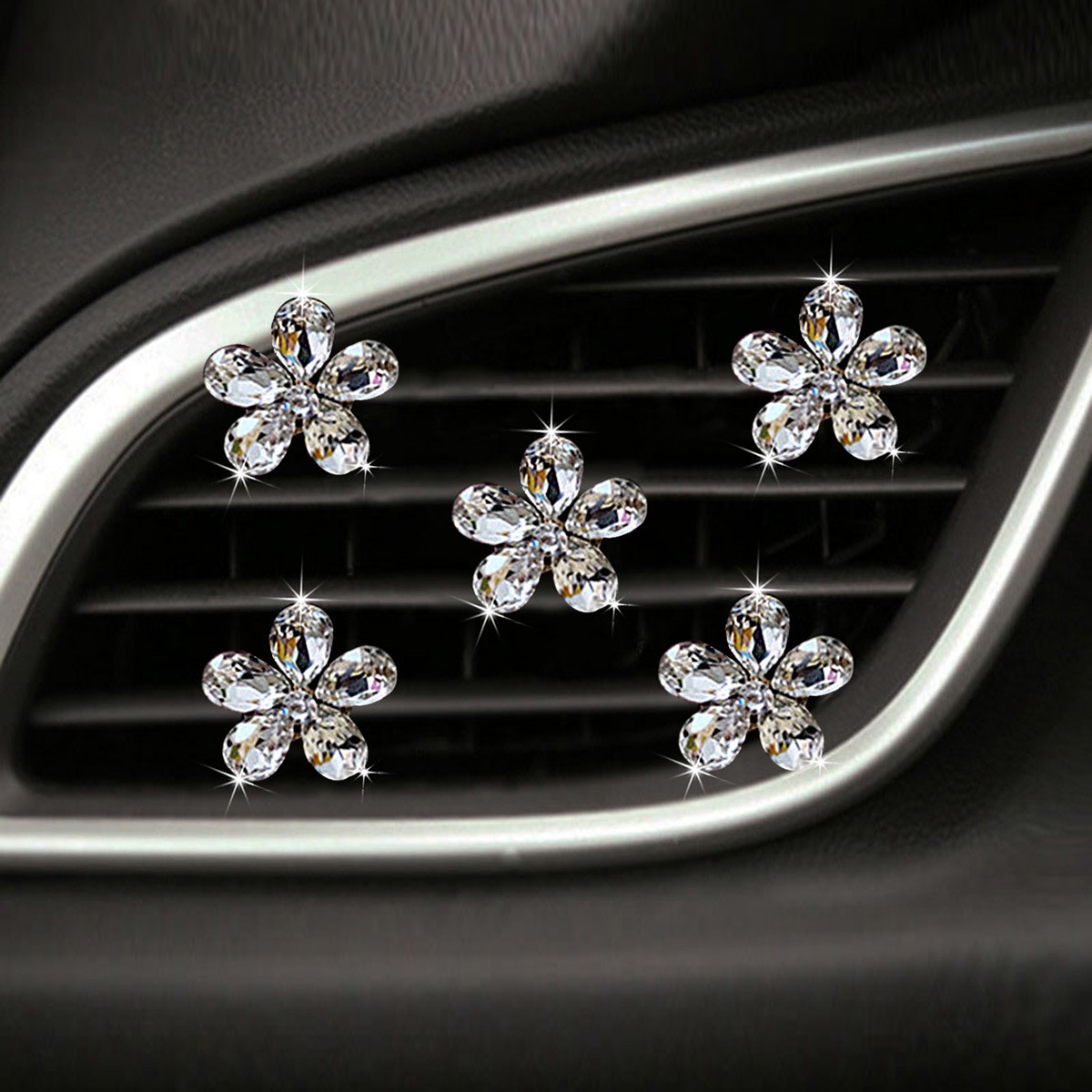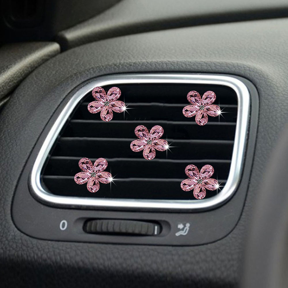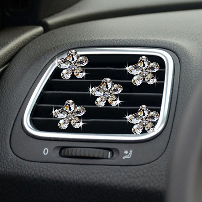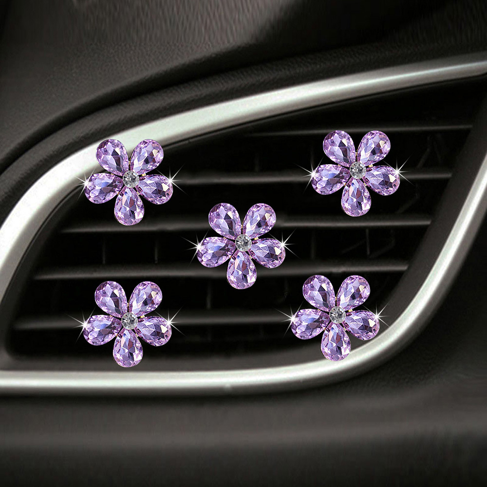 천연 반짝이는 크리스탈 보석 꽃 5종 세트 자동차 에어컨 통풍구 장식 클립 자동차 장식 클립 장식품