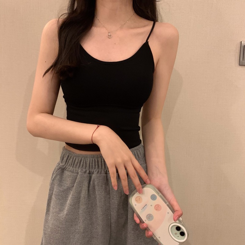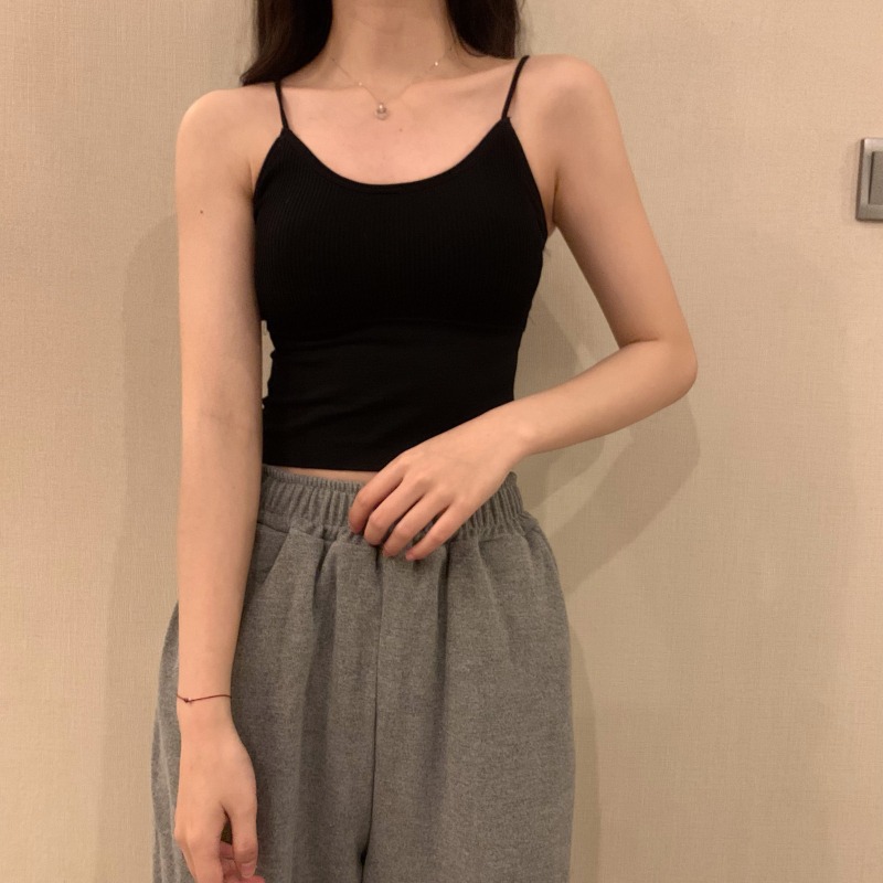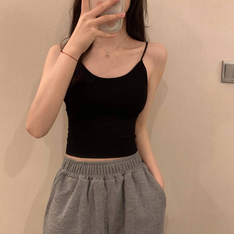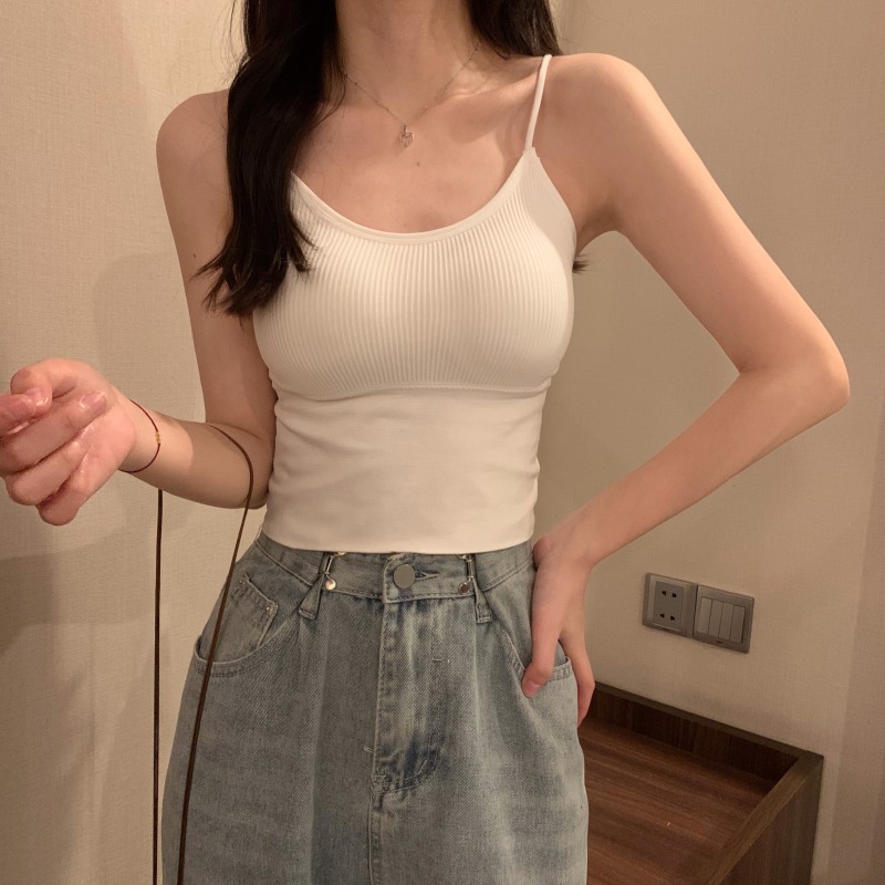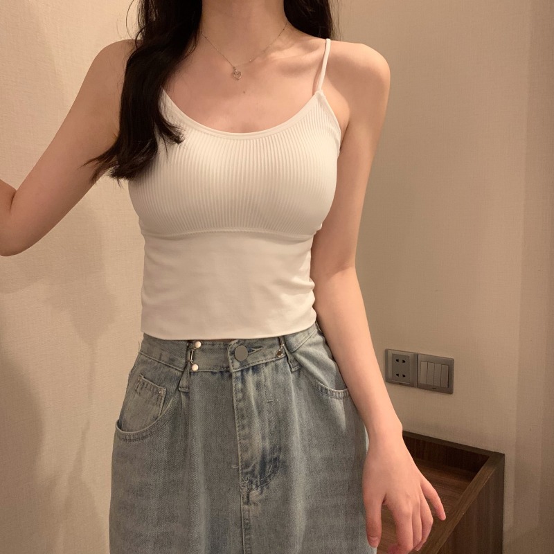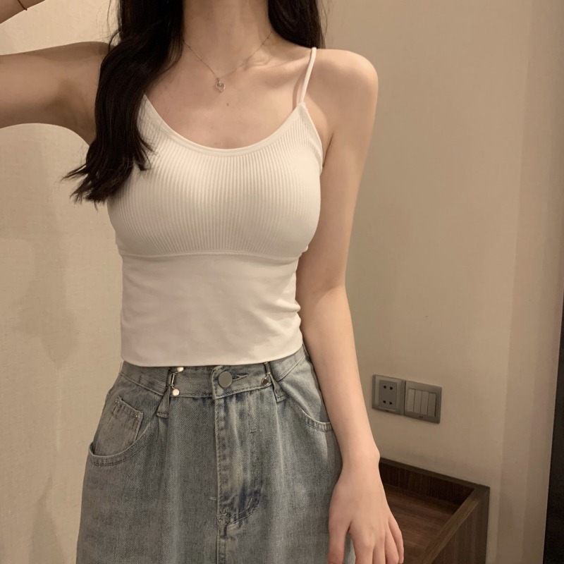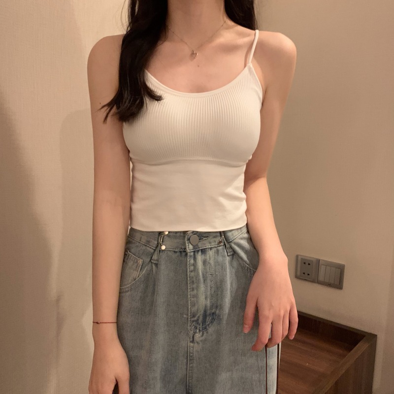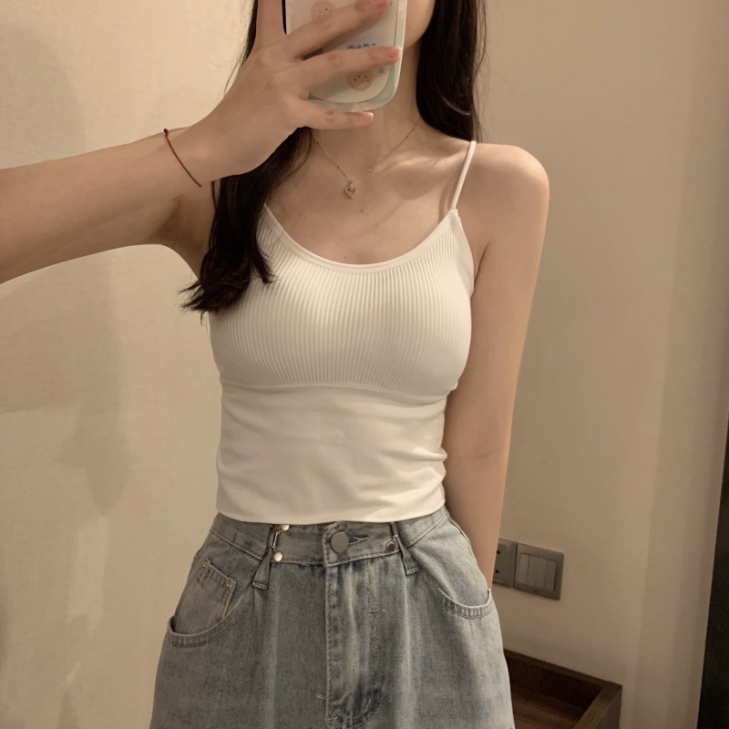이른 봄을위한 가슴 패드가있는 여성용 작은 캐미솔 섹시한 뜨거운 소녀 민소매 흰색 탑스토어 가기