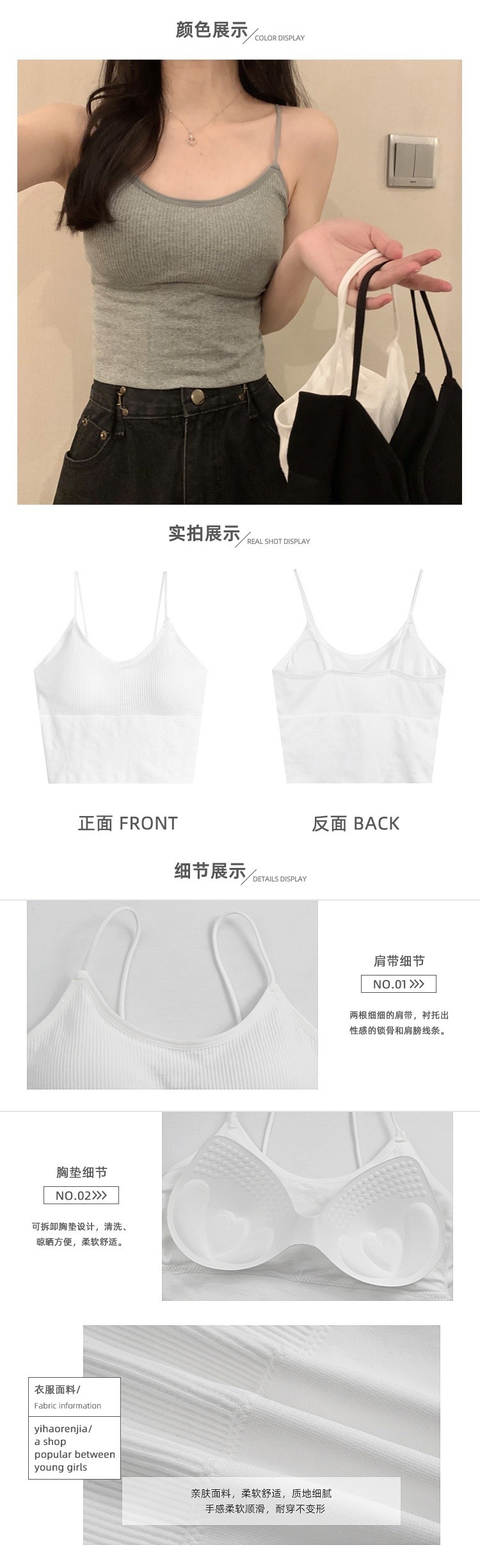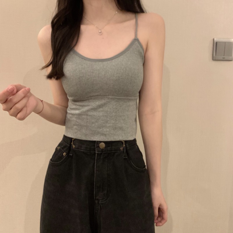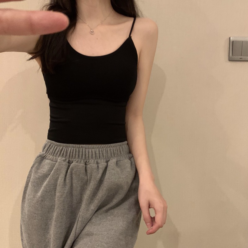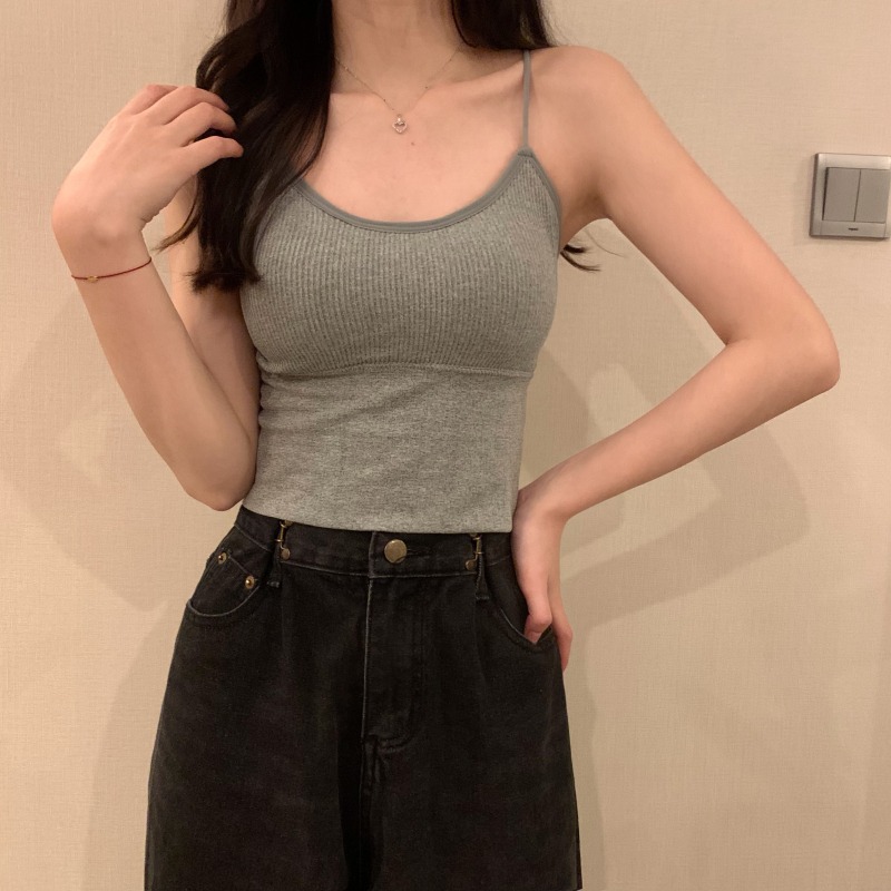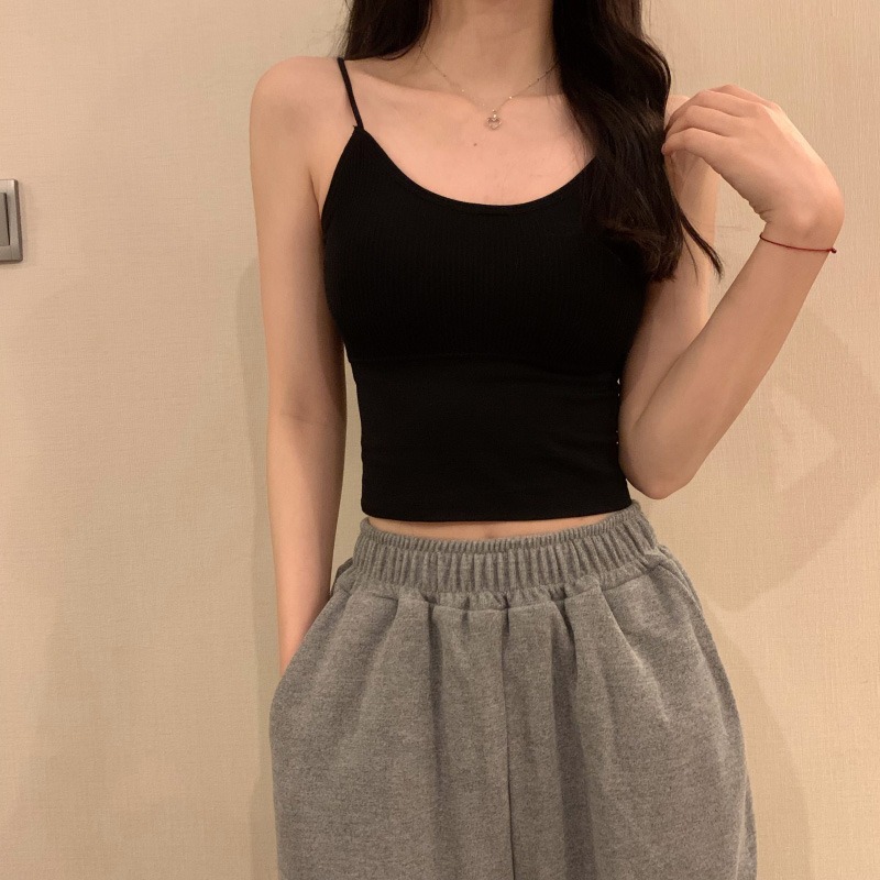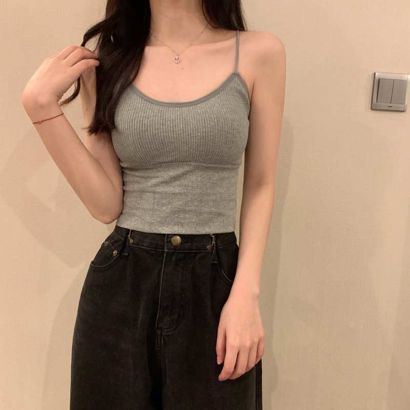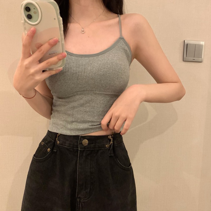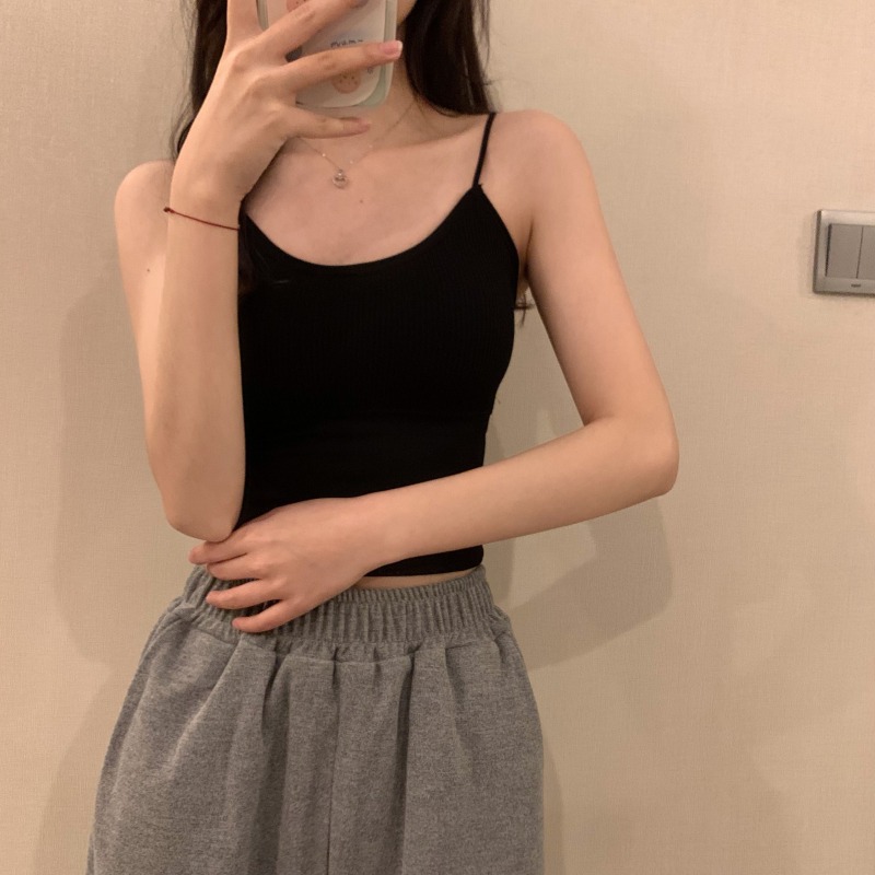 이른 봄을위한 가슴 패드가있는 여성용 작은 캐미솔 섹시한 뜨거운 소녀 민소매 흰색 탑스토어 가기